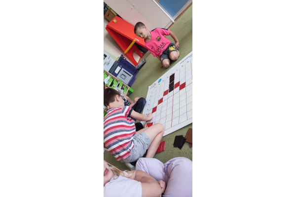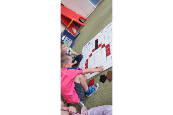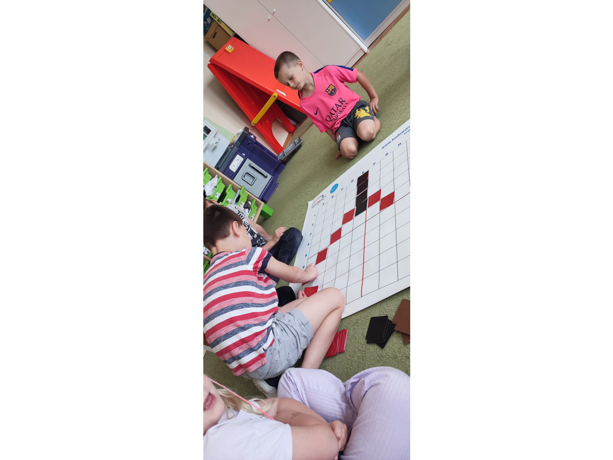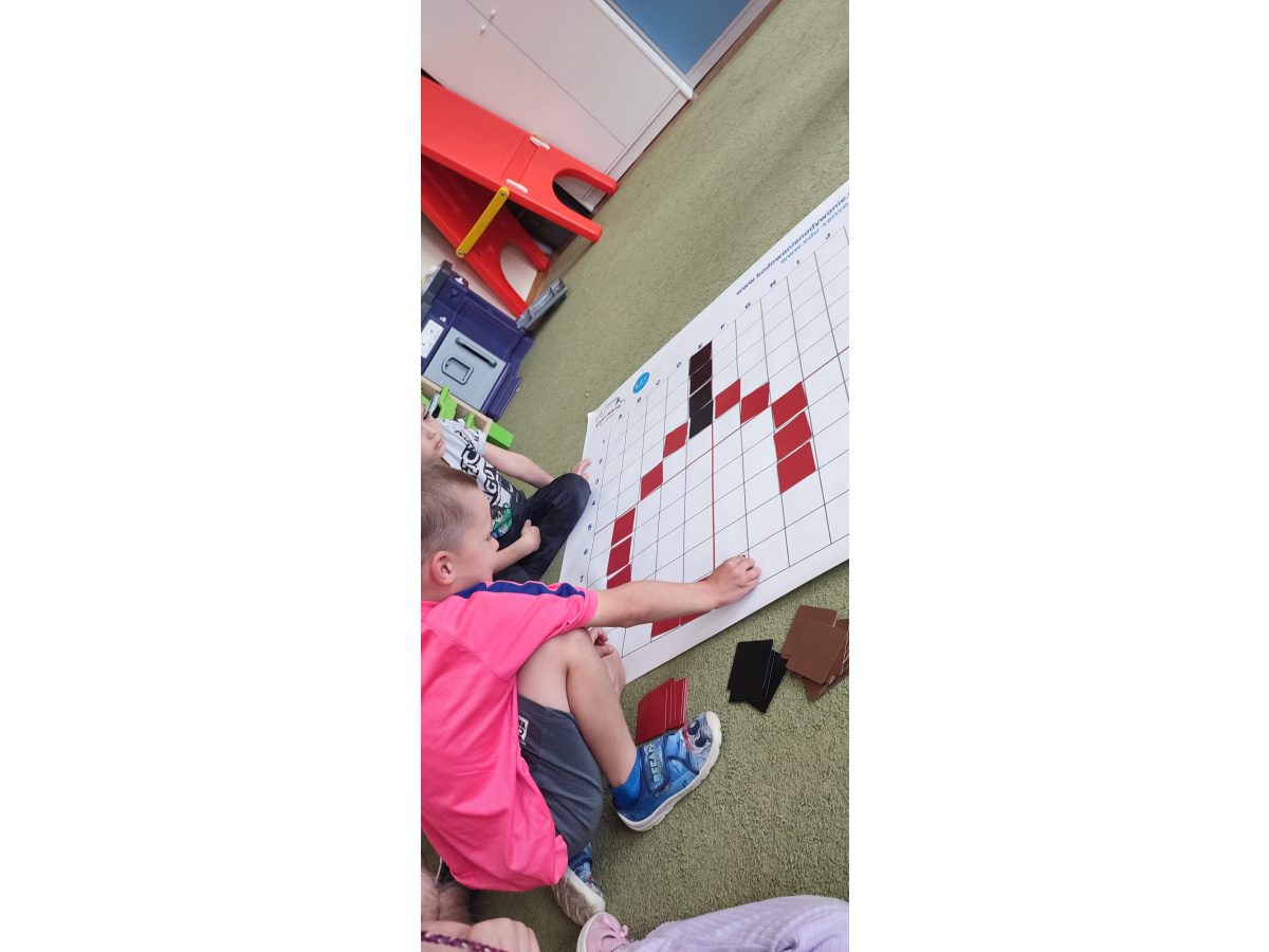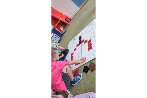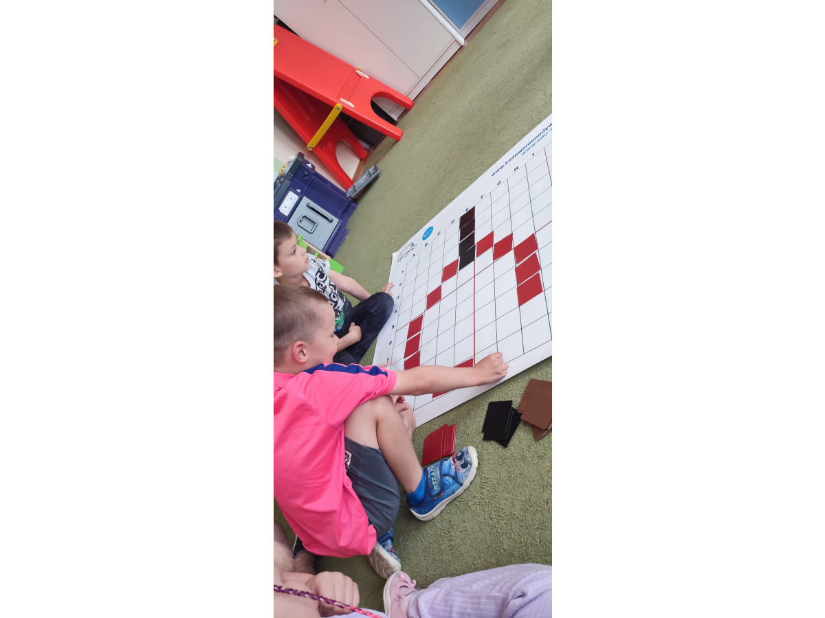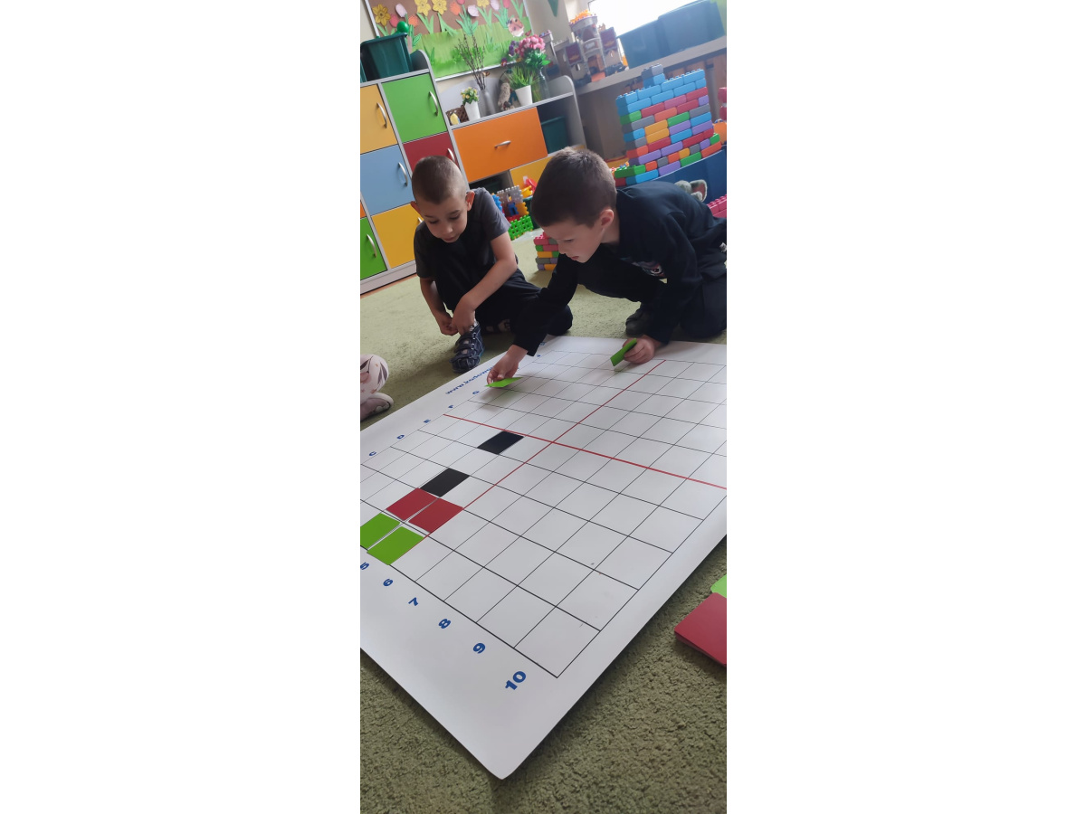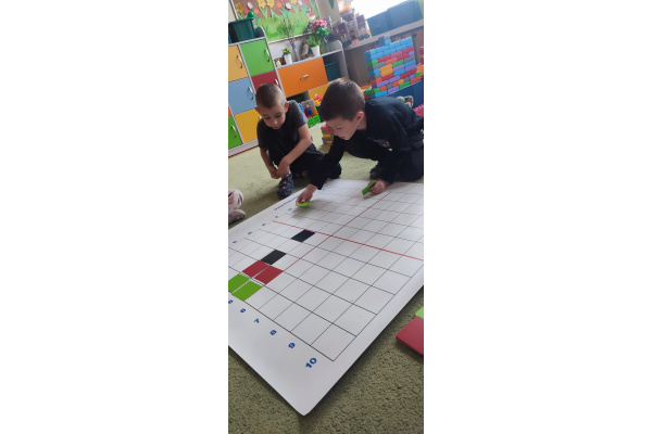 Kolorowe kropki po macie wędrowały, Posłuchaj uważnie i zaznacz, jak się przemieszczały.