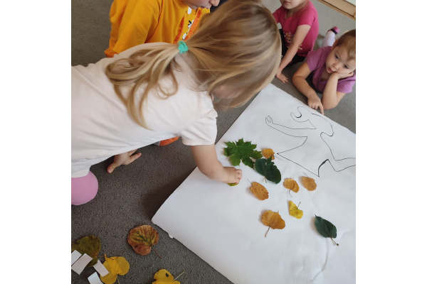 Dzieci z grupy Misie z radością powitały nową porę roku. Wspólnie wykonały „Panią Jesień” z naturalnych materiałów: kolorowych liści. Dzięki temu powstała piękna, kolorowa praca, która wprowadza wszystkich w jesienny nastrój.