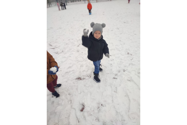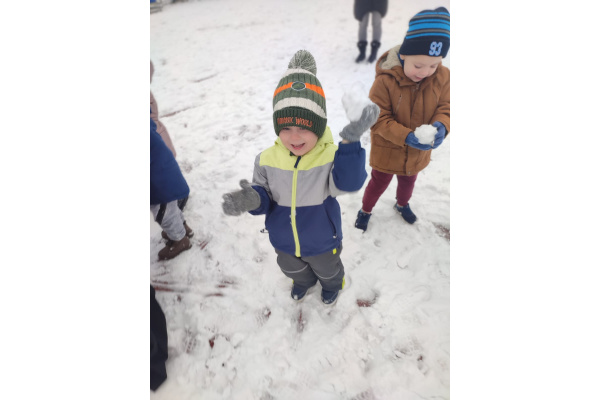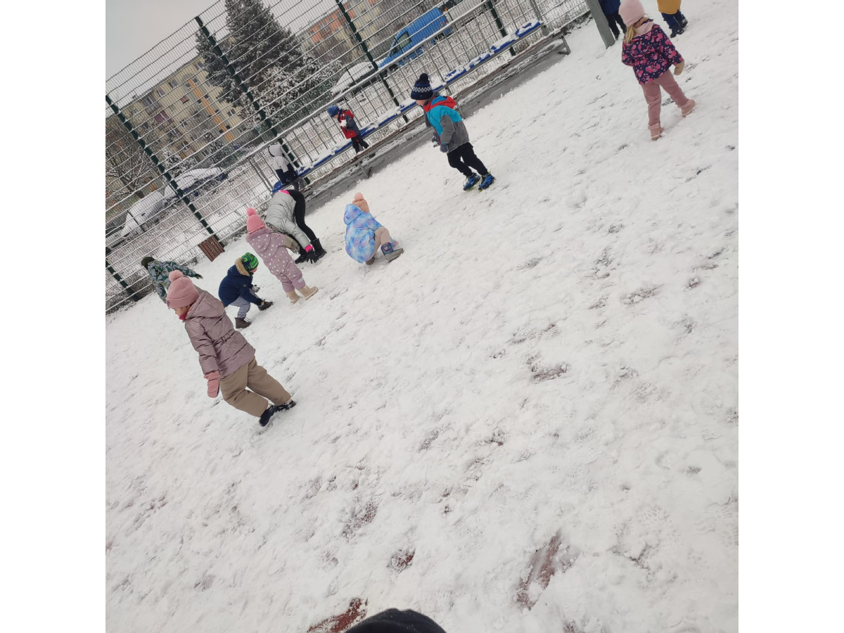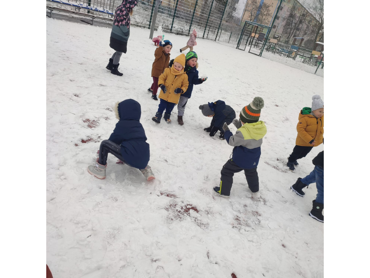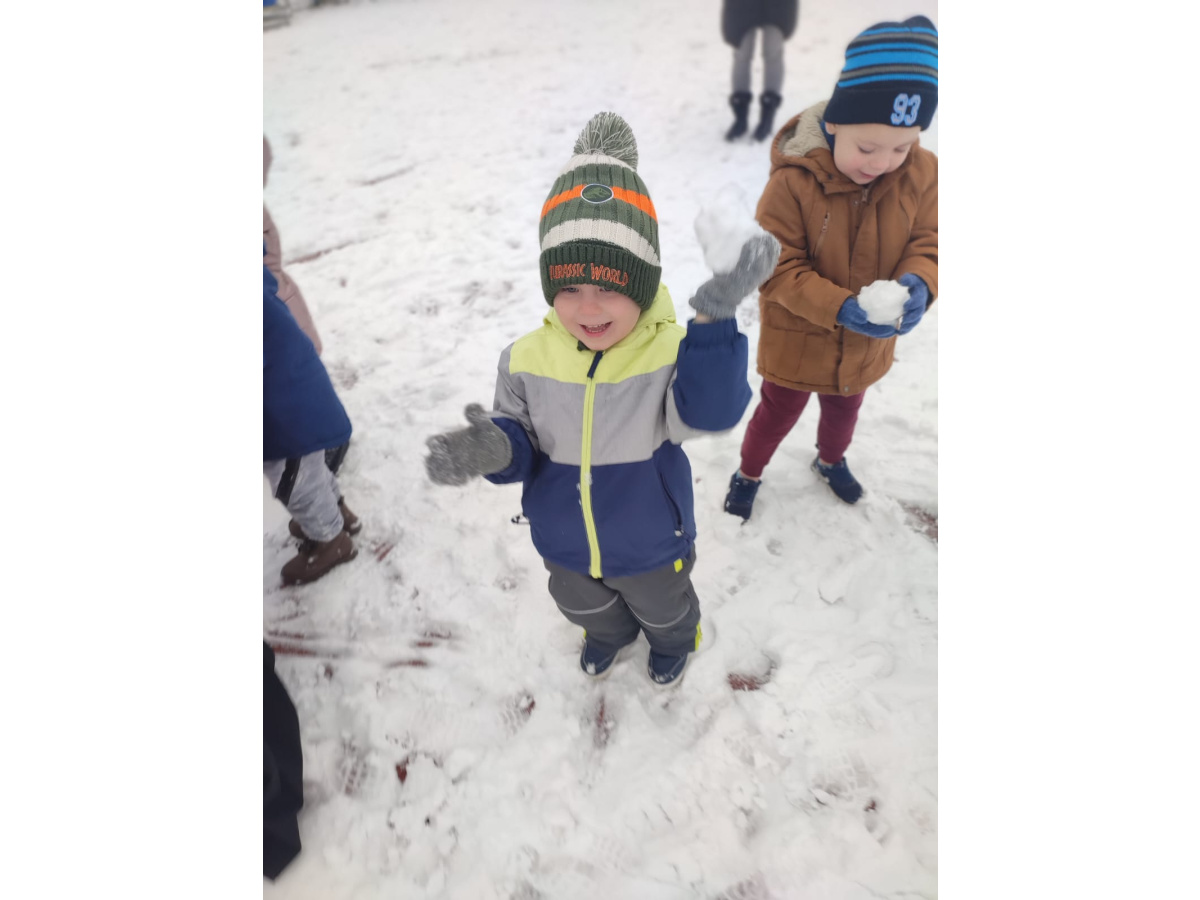 Pierwszy śnieg to dla przedszkolaków zawsze magiczny moment, pełen radości i zachwytu. Cieszymy się, że mogliśmy spędzić go razem w tak aktywny i twórczy sposób. Już czekamy na kolejne zimowe dni!