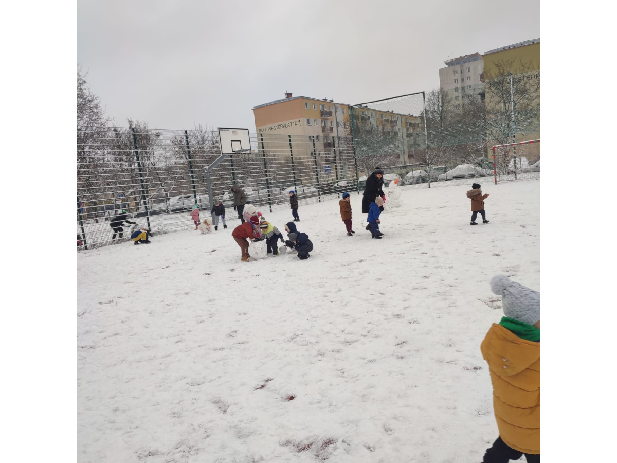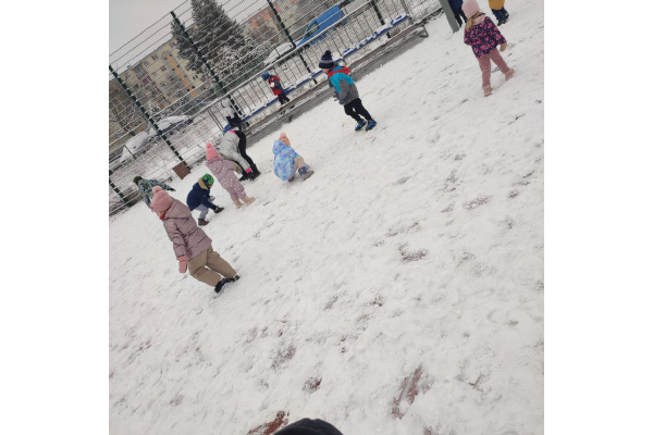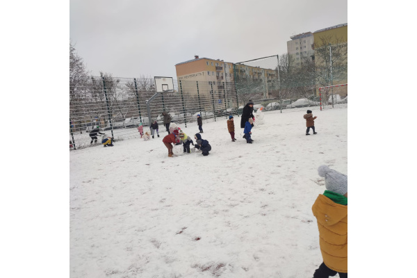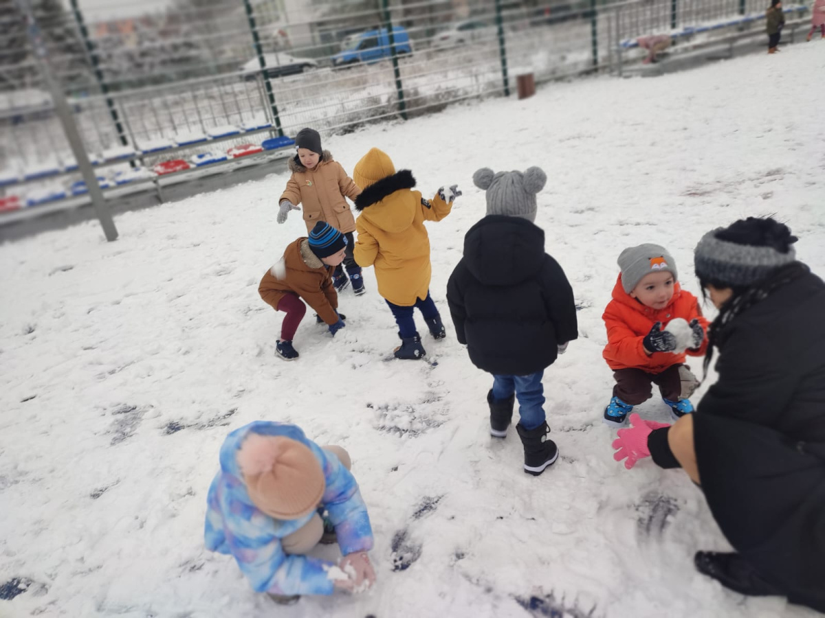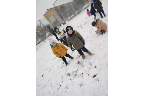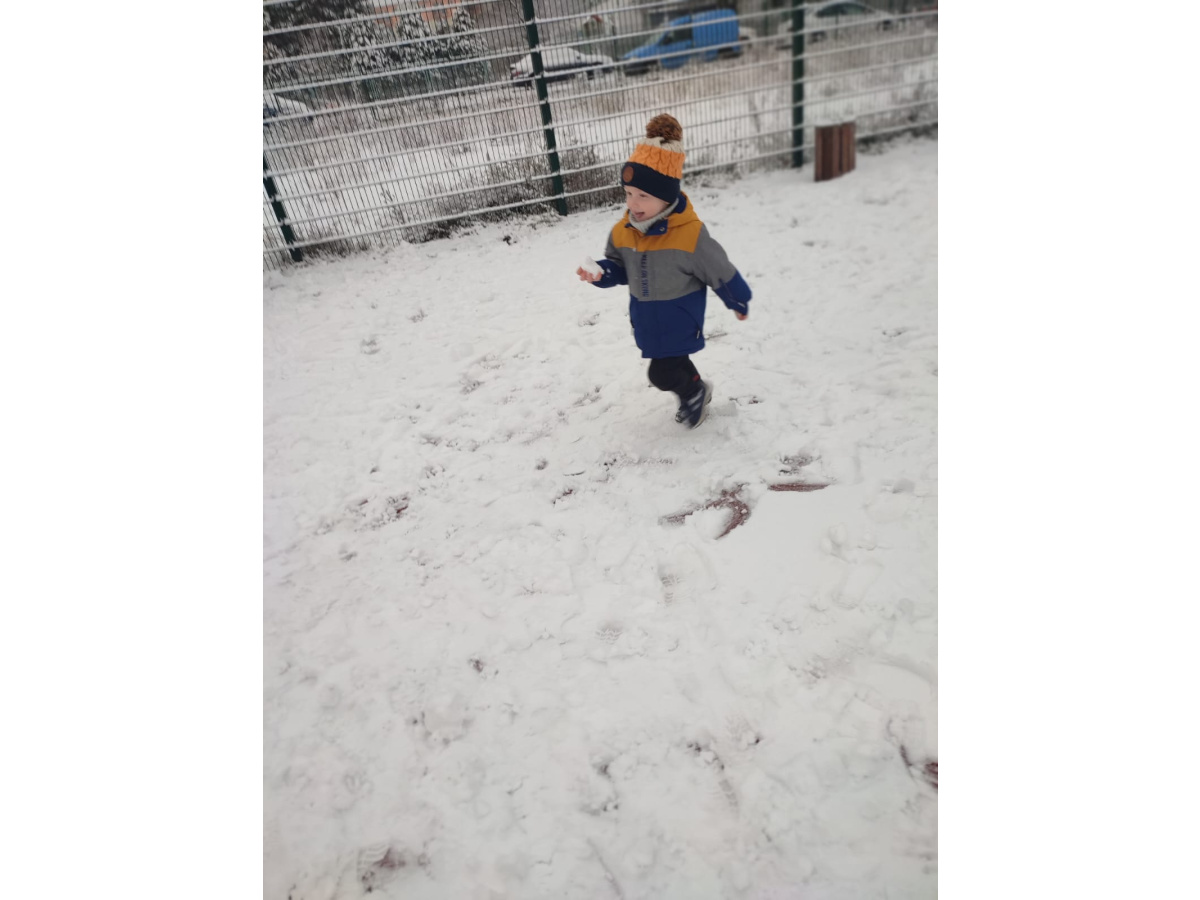 Pierwszy śnieg to dla przedszkolaków zawsze magiczny moment, pełen radości i zachwytu. Cieszymy się, że mogliśmy spędzić go razem w tak aktywny i twórczy sposób. Już czekamy na kolejne zimowe dni!