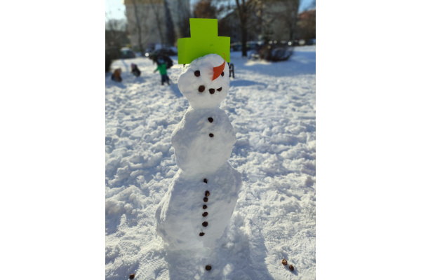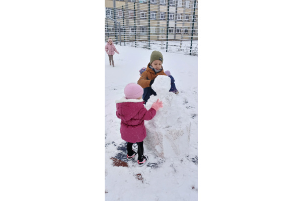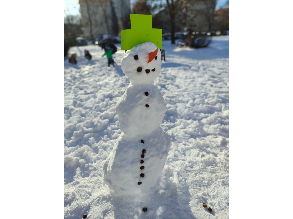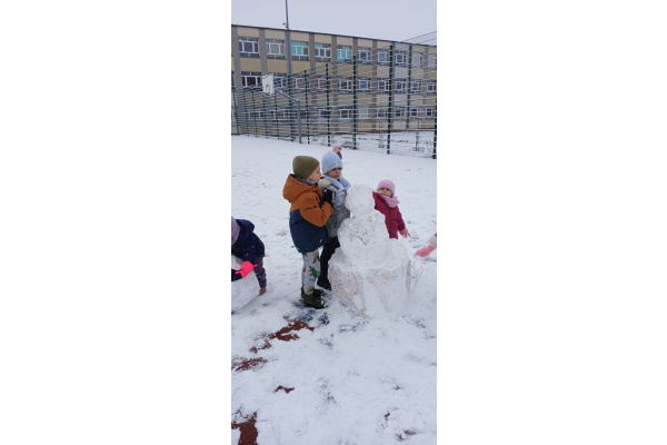 Bałwan rośnie w środku placu,