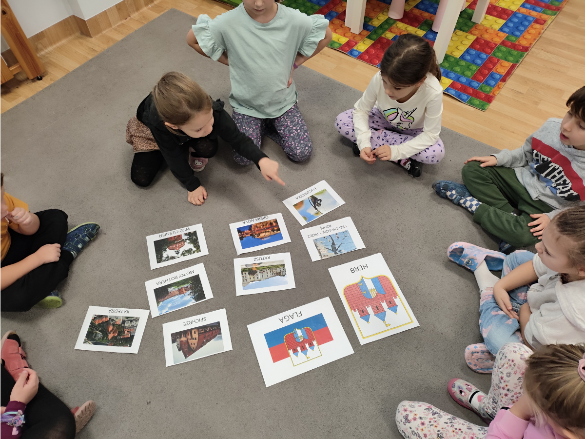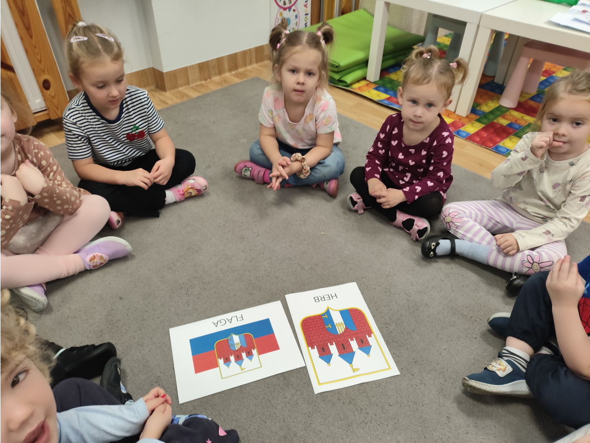 Dzieci dowiedziały się również, jak wygląda herb Bydgoszczy i co symbolizuje. Z zainteresowaniem przyglądały się także miejskiej fladze, poznając jej kolory i znaczenie. Zajęcia były pełne ciekawostek, zabaw edukacyjnych i wspólnego odkrywania lokalnej historii.