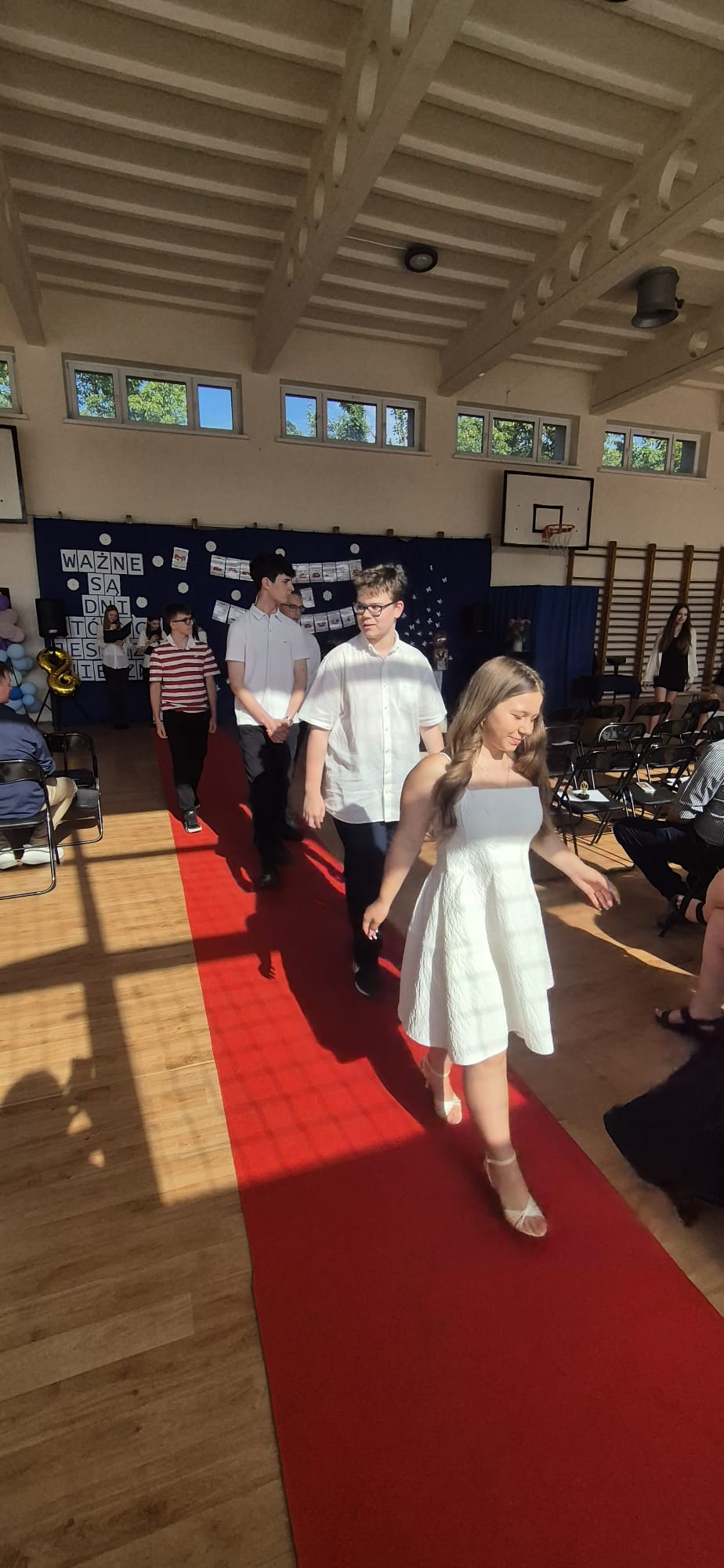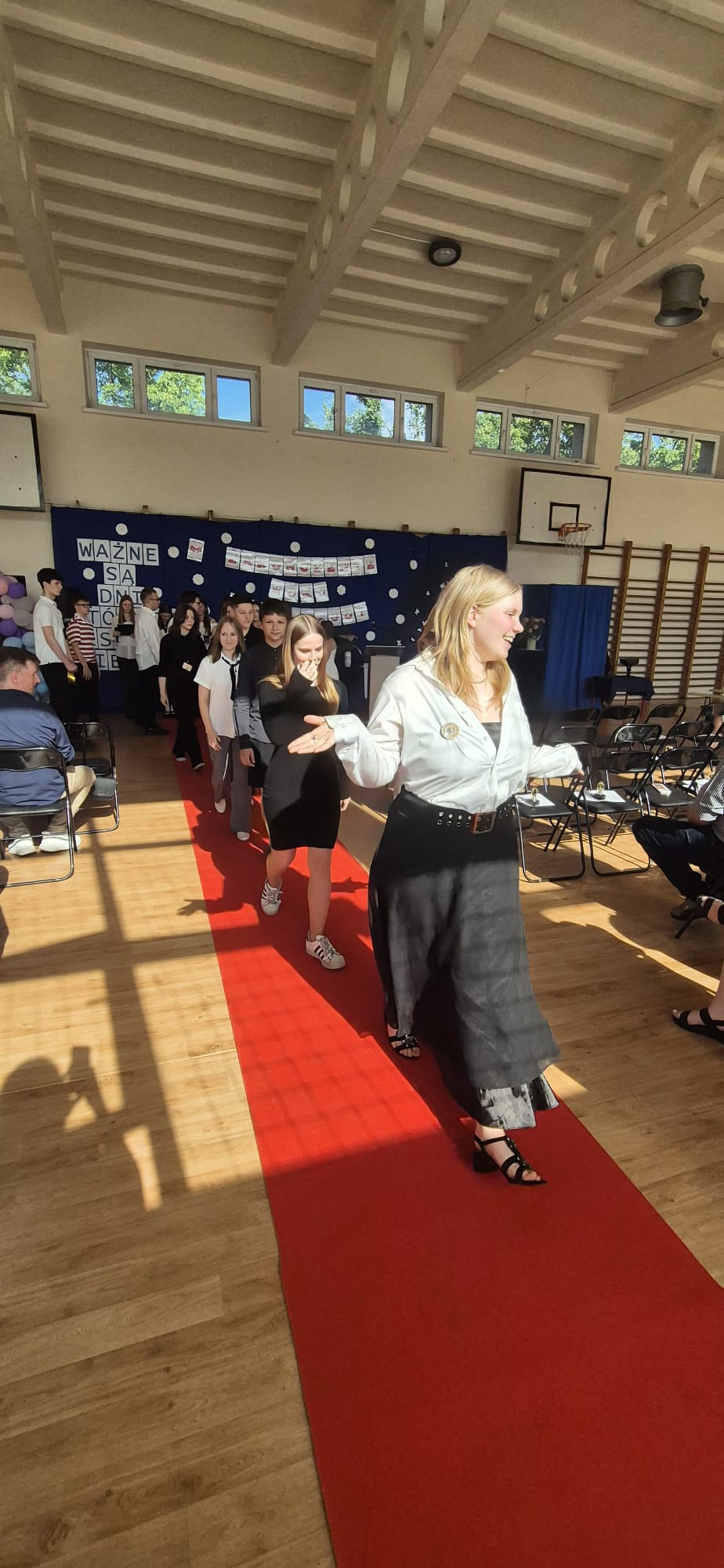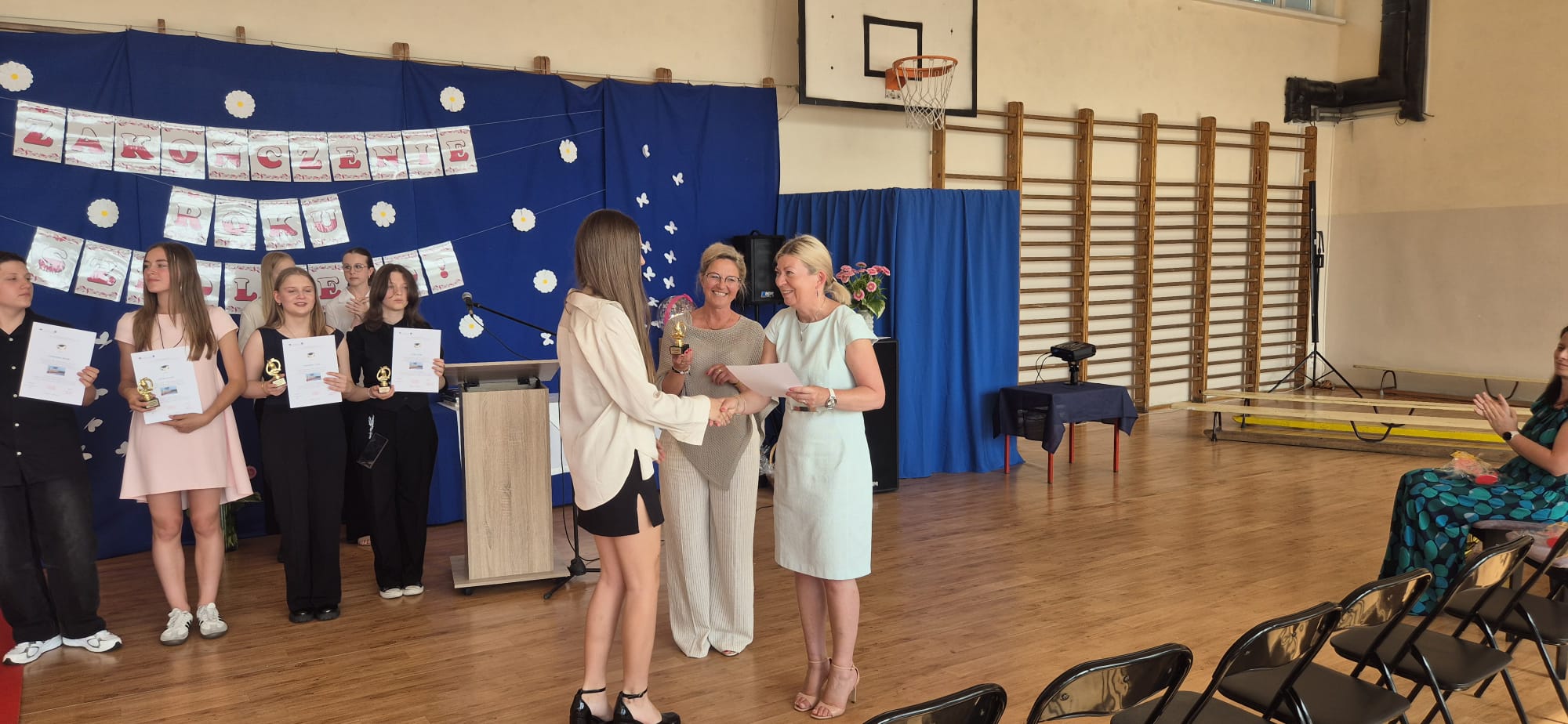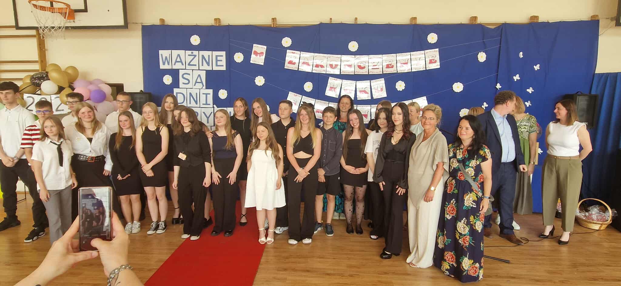 Uroczystość była także okazją do nagrodzenia uczniów, którzy zakończyli edukację z najwyższą średnią, osiągnęli sukcesy na płaszczyźnie edukacyjnej i sportowej oraz wyróżnili się w działaniach na rzecz szkoły i lokalnego środowiska. Podziękowania odebrali wspierający ich rodzice. Słowa wdzięczności kierowane były też dla nauczycieli i pracowników szkoły. Symbolicznym momentem było przekazanie przez ósmoklasistów ich młodszym kolegom sztandaru szkoły. W "Alei Gwiazd" żegnali najstarszych kolegów uczniowie z klasy 7b.