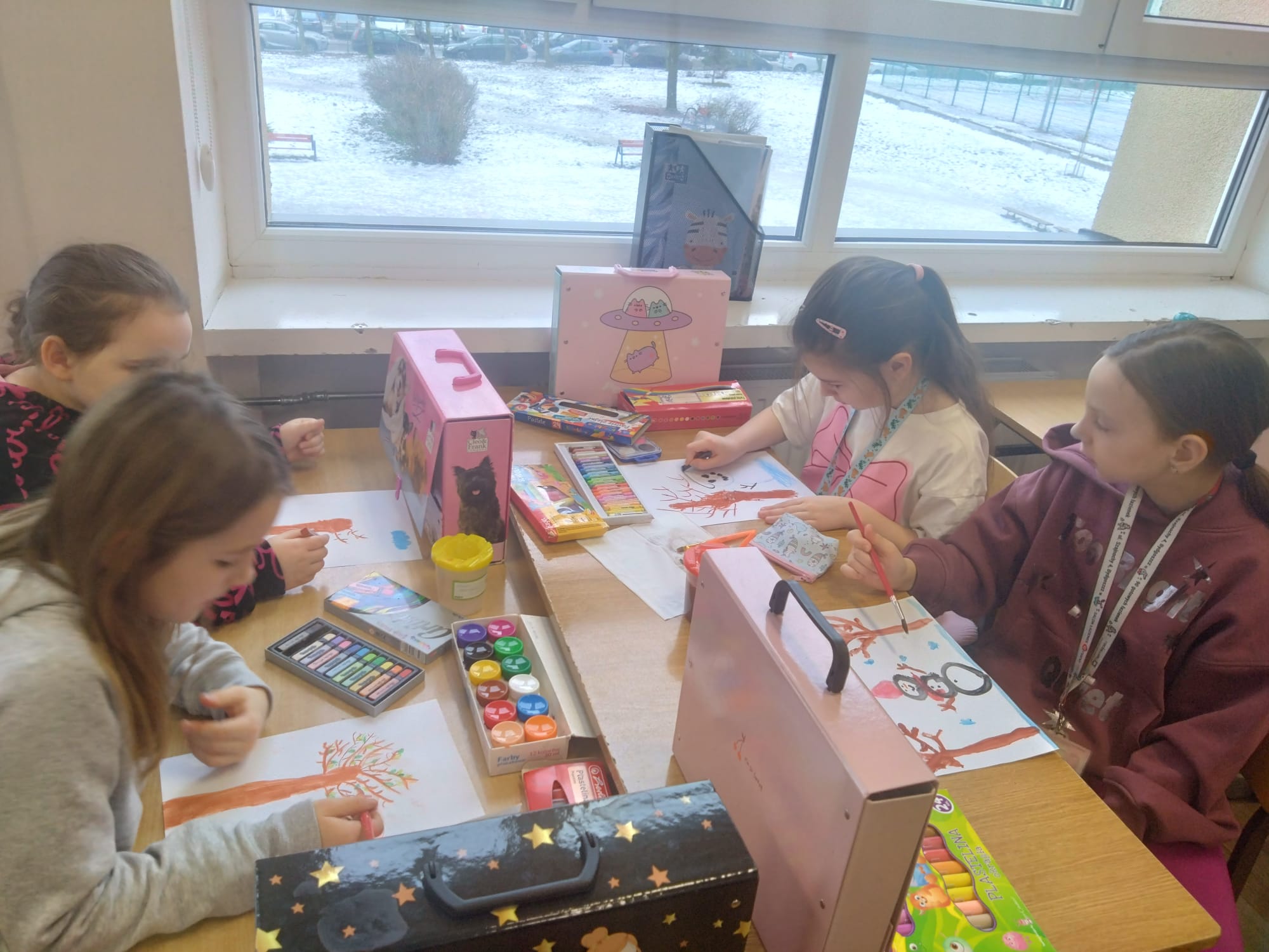 23 stycznia 2026r. klasa 2a zrealizowała drugie zadanie w ramach projektu „Rok Dziecięcej Kreatywności Interdyscyplinarne Warsztaty Terapeutyczne dla uczniów z SPE” autorstwa Anny Moździerz pod tytułem „Zimowe krajoobrazy”. Warsztaty pozwoliły dzieciom poznać piękno i mnogość zimowych barw towarzyszących nam zimą. Podczas wykonywania pracy plastycznej było dużo radości i emocji. Wykonanie pracy plastycznej ułatwiło nam zimowy klimat panujący na zewnątrz.