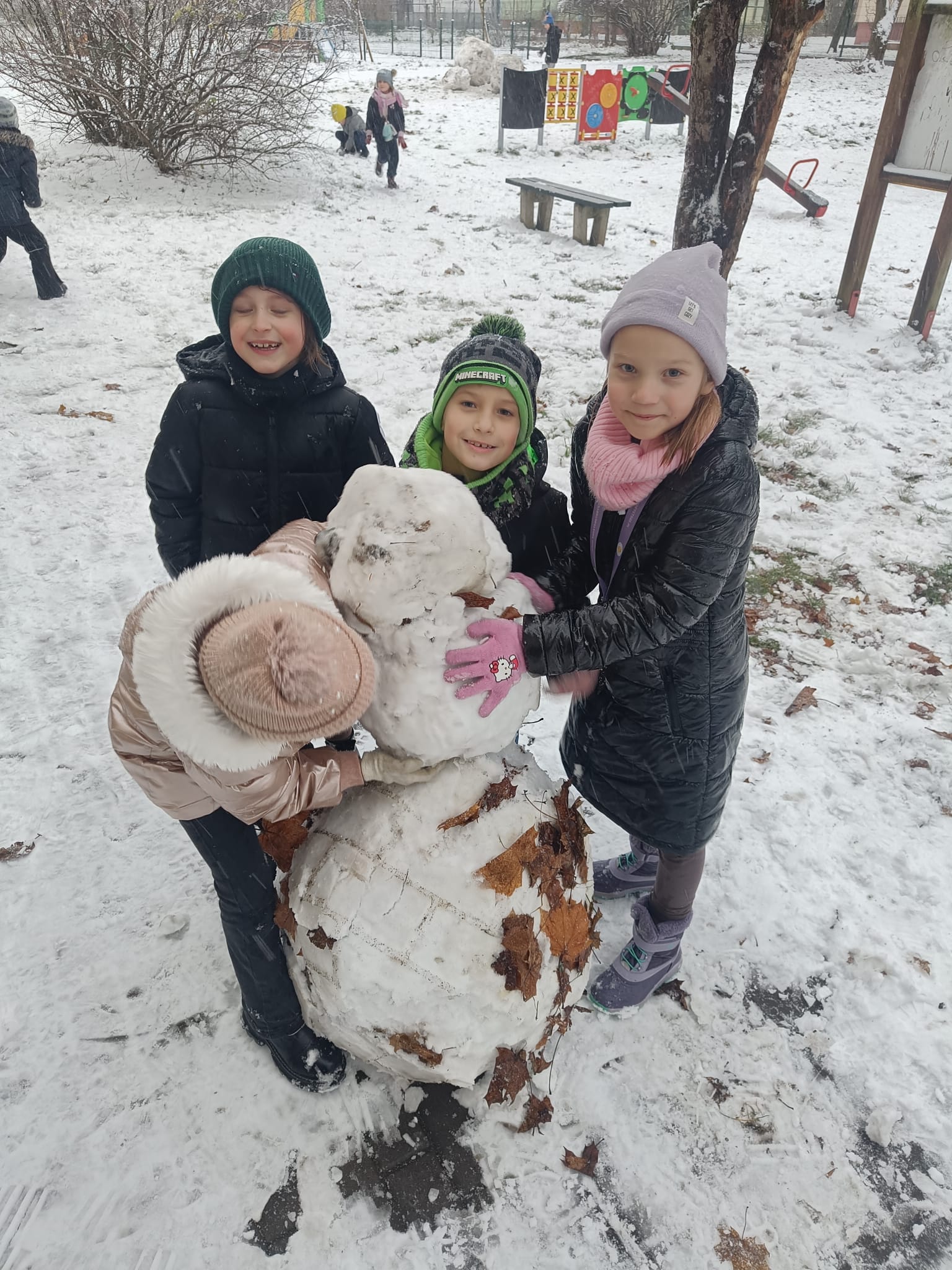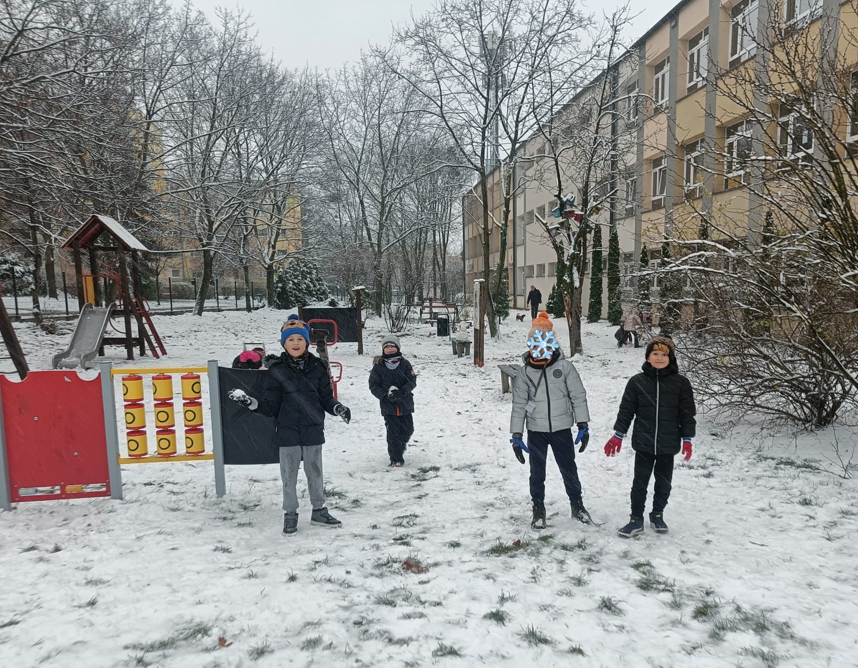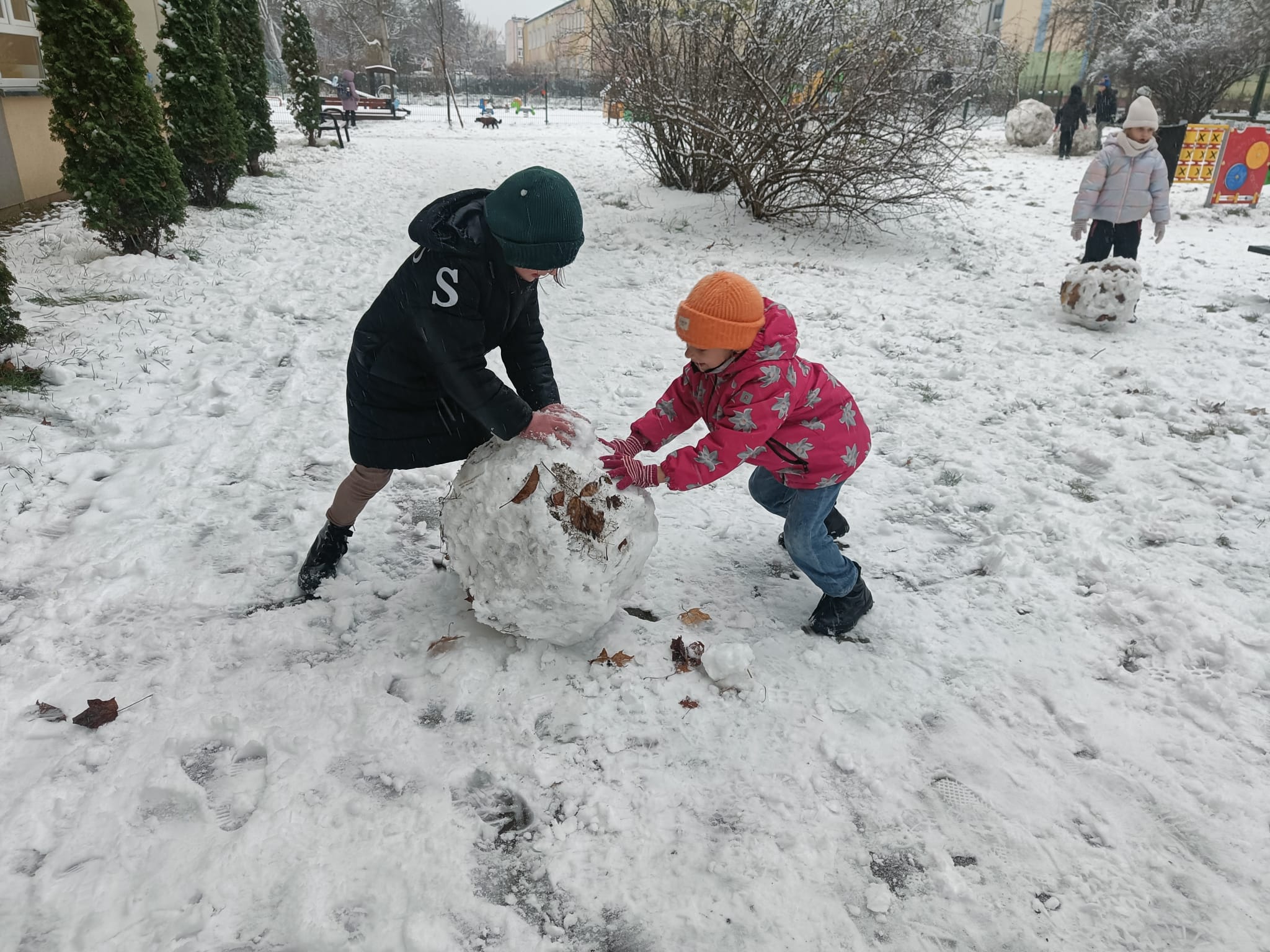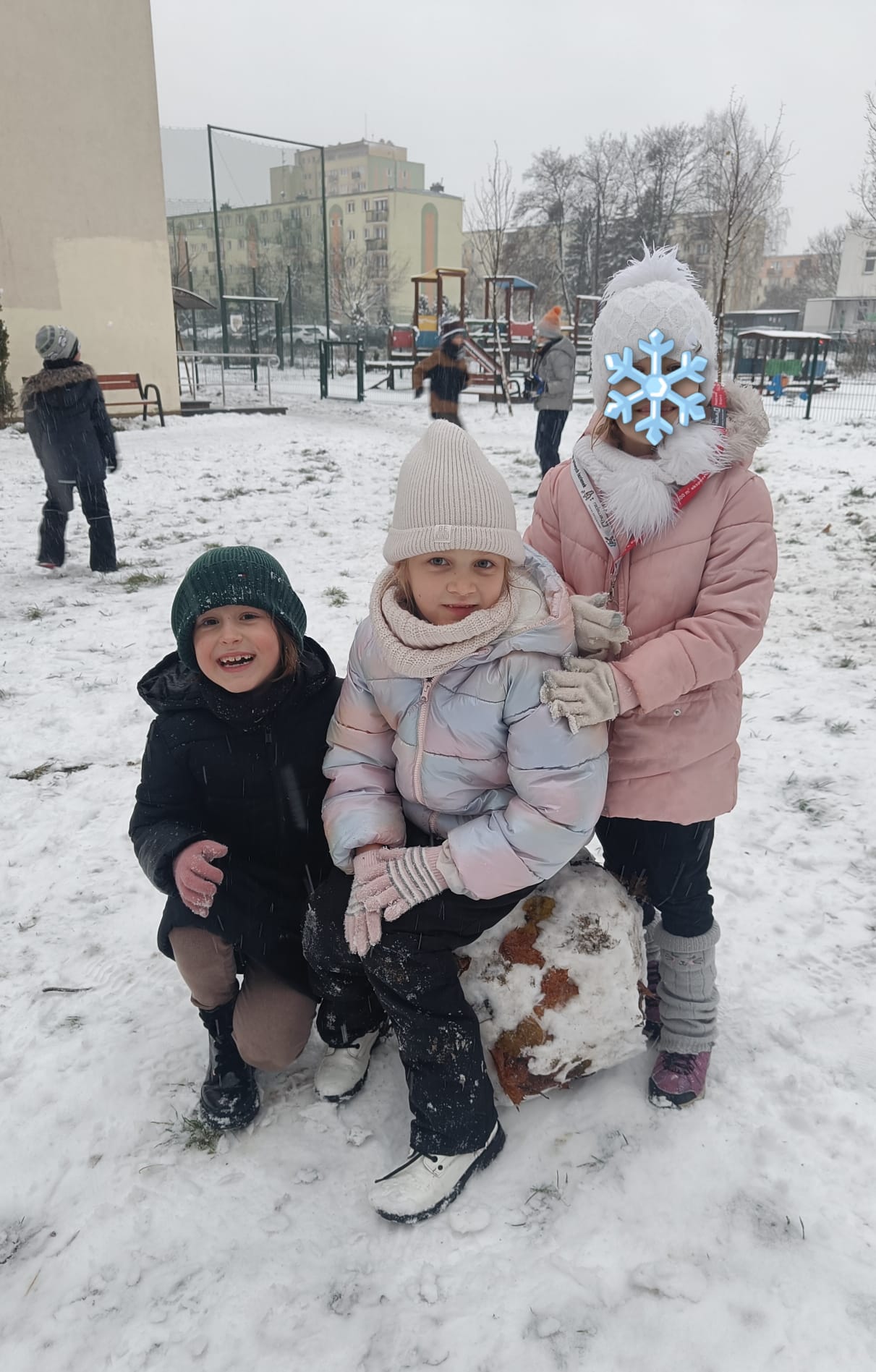 Dzieci doczekały się białego puchu więc udaliśmy się na biały plac zabaw, by wspólnie móc korzystać z tak cudownej pogody.