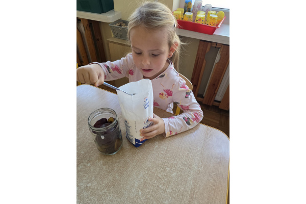 Dziś dzieci z naszego przedszkola z okazji Dnia Warzyw i Owoców przygotowywały pyszne owocowe smakołyki: sałatkę lub szaszłyki.