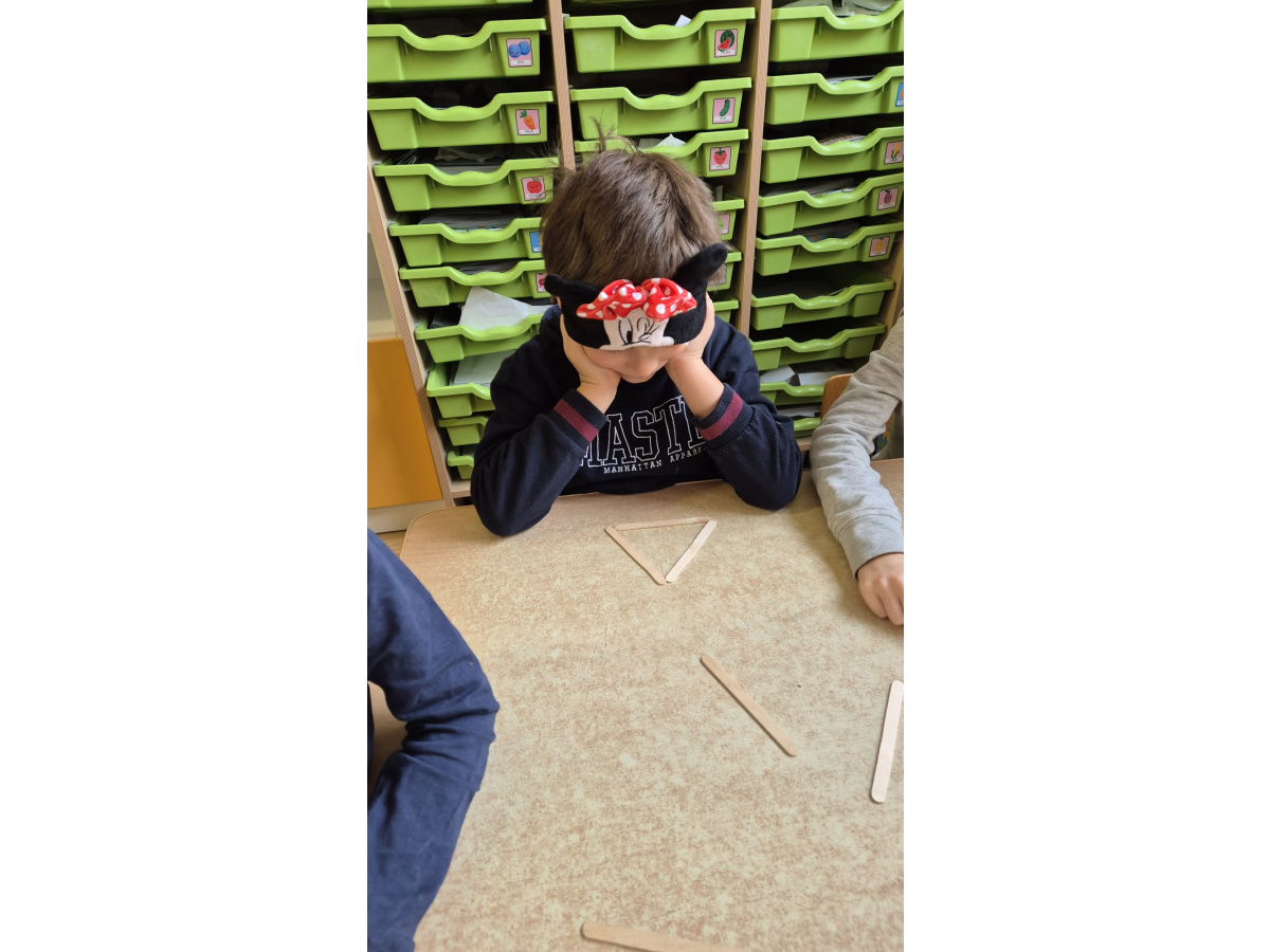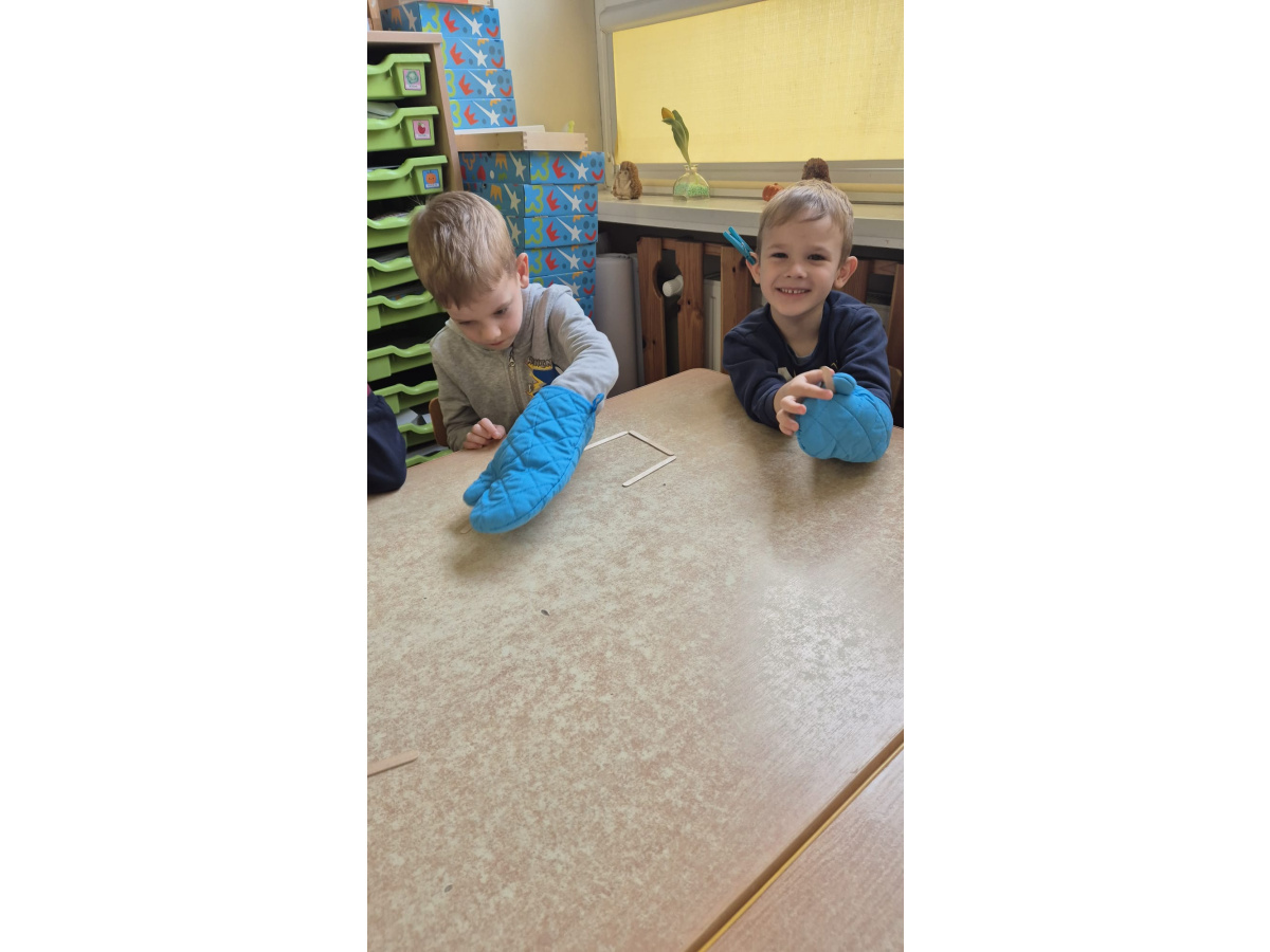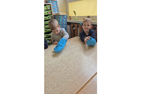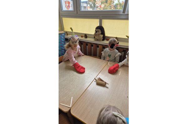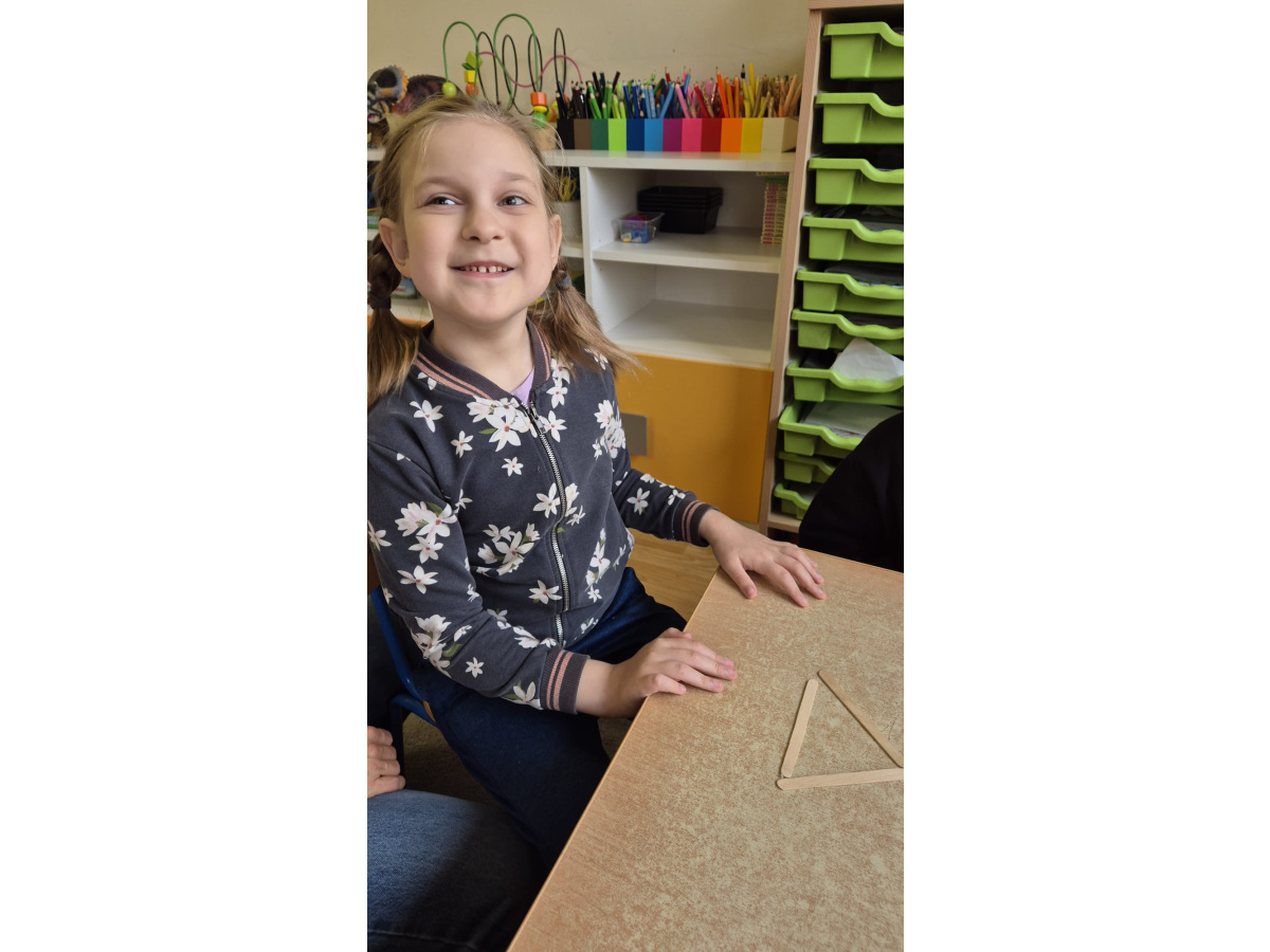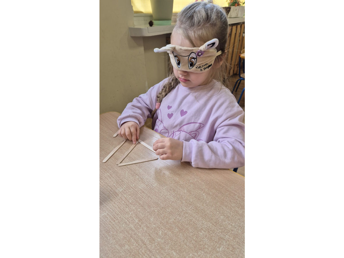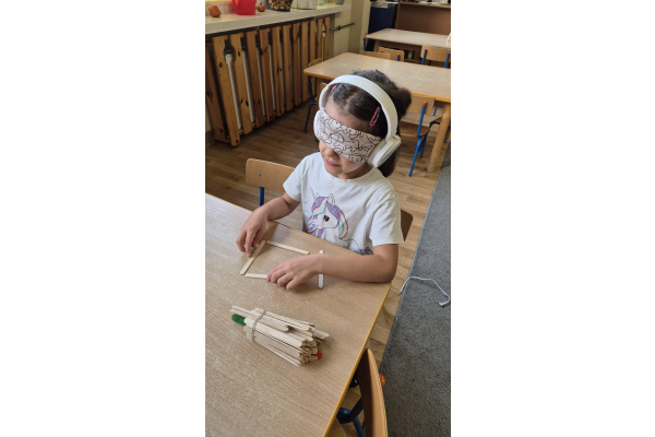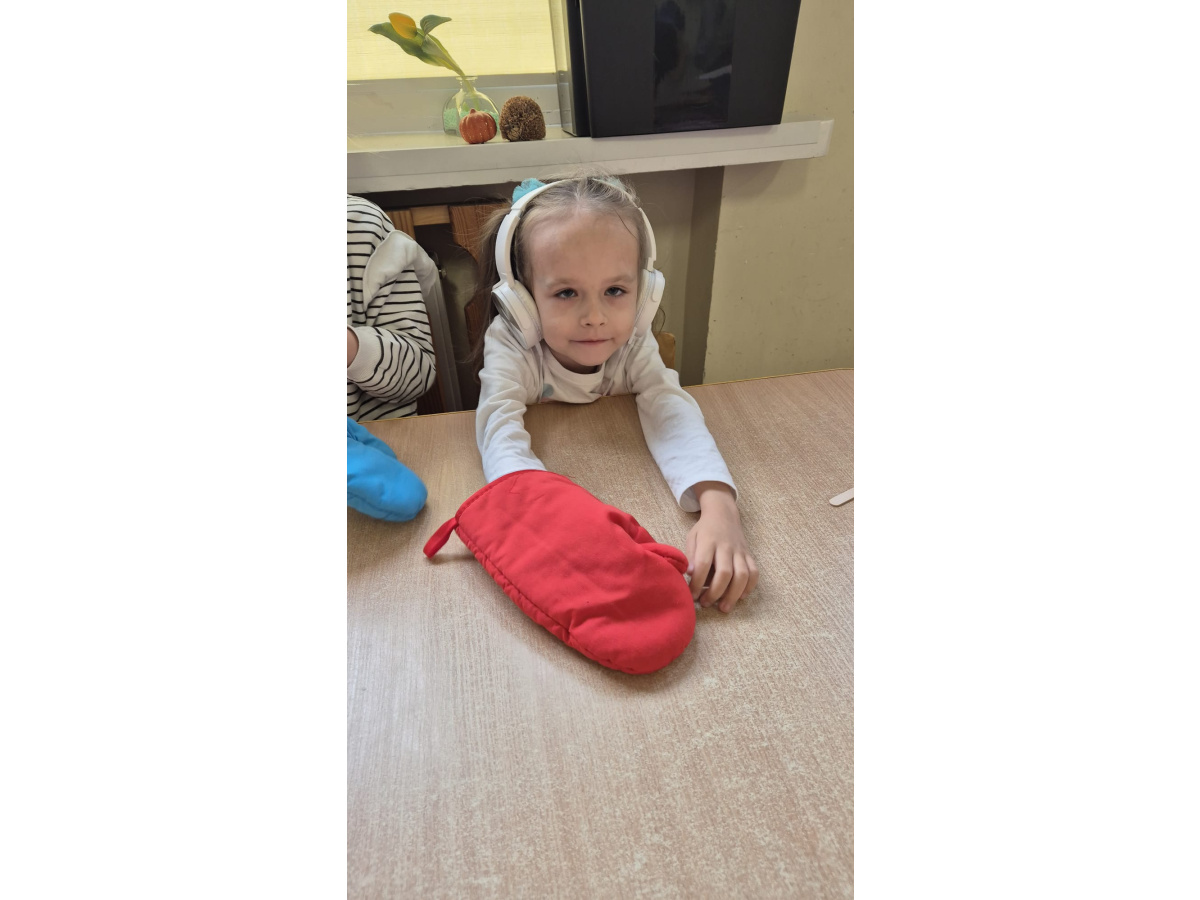 Warsztaty były pełne emocji i zabawy! Dzieci łapały patyczki w rękawicach kuchennych z zamkniętymi oczami, co pozwoliło im doświadczyć, jak trudne mogą być codzienne czynności dla osób z ograniczeniami. Układały też figury geometryczne z patyczków, rozwijając wyobraźnię i zdolności manualne. Na zakończenie — nie lada wyzwanie! Przedszkolaki chodziły w płetwach, ucząc się równowagi i współpracy.
