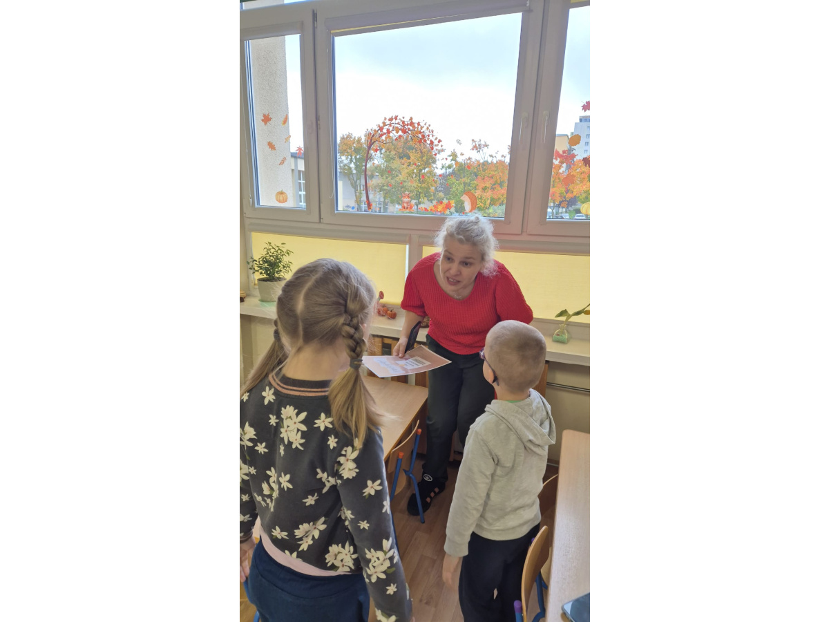 Na początku zajęć rozmawialiśmy o tym, że każdy z nas jest ważny i wartościowy — niezależnie od tego, jak się czuje, jak odbiera świat czy jak reaguje na różne sytuacje. Książka Pani Martyny porusza temat zaburzeń rozwojowych u dzieci, pokazując, że niektórzy potrzebują więcej wsparcia niż inni. To piękne przesłanie, że każdemu należy pomóc, bo każdy zasługuje na zrozumienie i życzliwość.