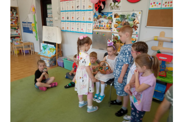 Marysia obchodziła swoje 6 urodziny. Było radośnie, kolorowo i smacznie. Wszyscy zaśpiewali Marysi 100 lat i wesoło bawiliśmy się przy piosence ,, Dziś urodzinowe spotkanie na polanie". Potem była krótka dyskoteka. Wszystkiego najlepszego dla Marysi.