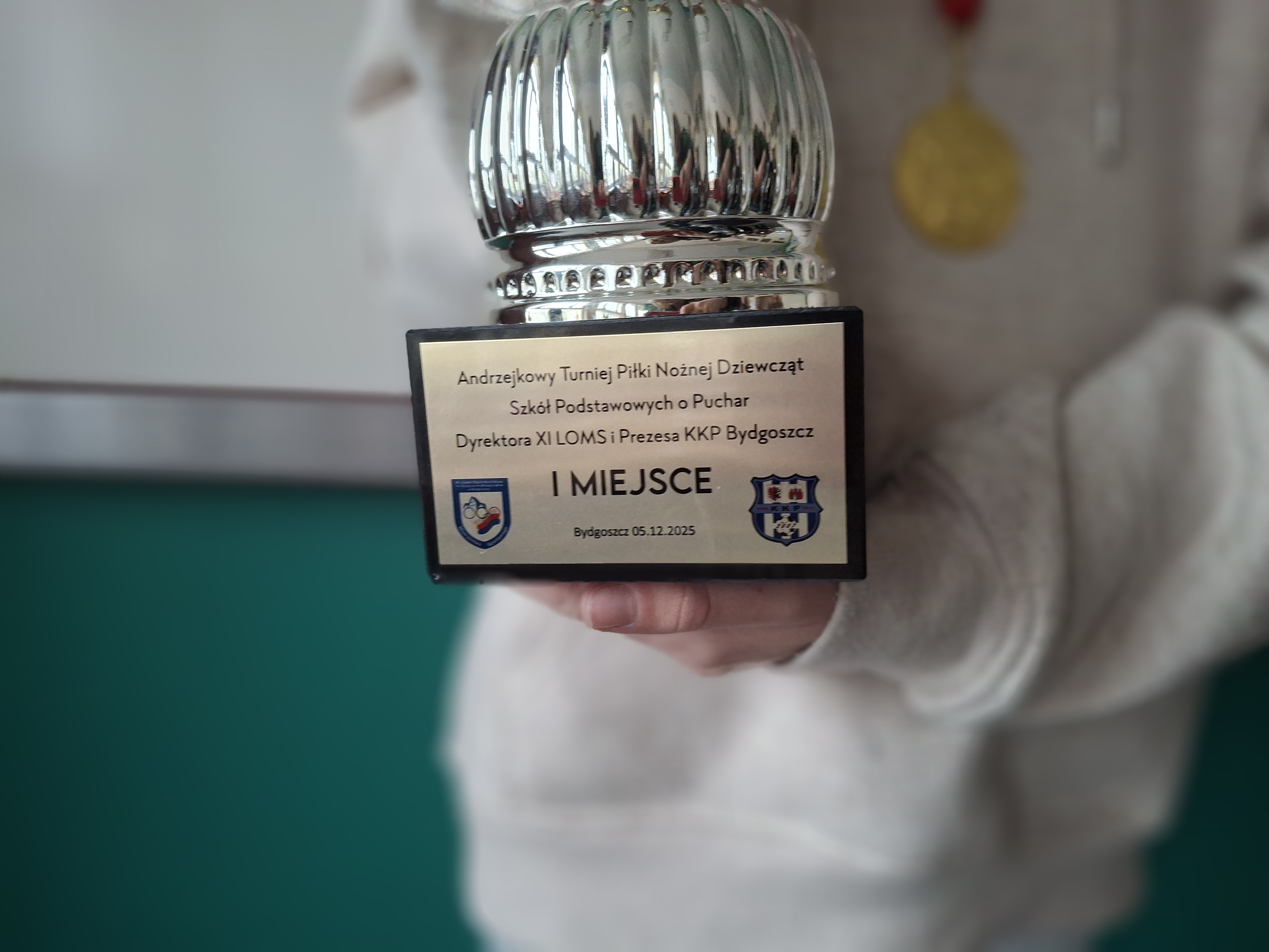 Kinga K. wzięła udział w Andrzejkowym Turnieju Piłki Nożnej Dziewcząt Szkół Podstawowych o Puchar Dyrektora XI LOMS i Prezesa KKP Bydgoszcz, który odbył się 5 grudnia 2025 r. w Bydgoszczy. Turniej zgromadził drużyny z wielu szkół i stał na wysokim poziomie sportowym. Zespół, w którym wystąpiła Kinga, wywalczył I miejsce, wykazując się doskonałą współpracą, zaangażowaniem oraz sportowym duchem walki.