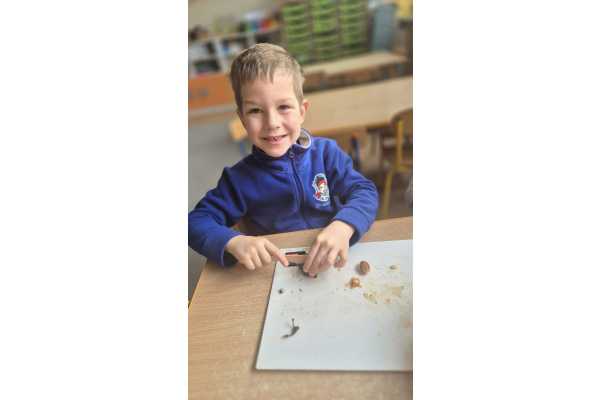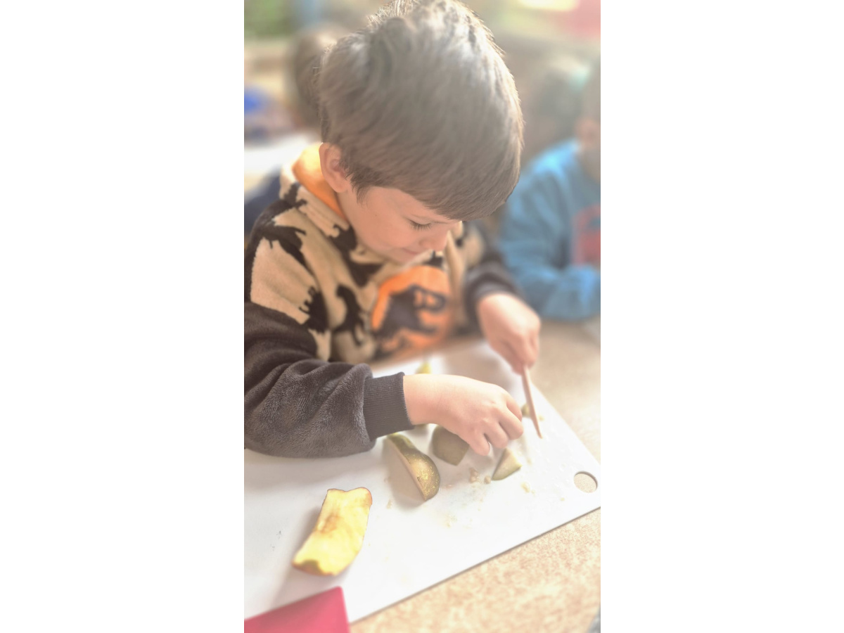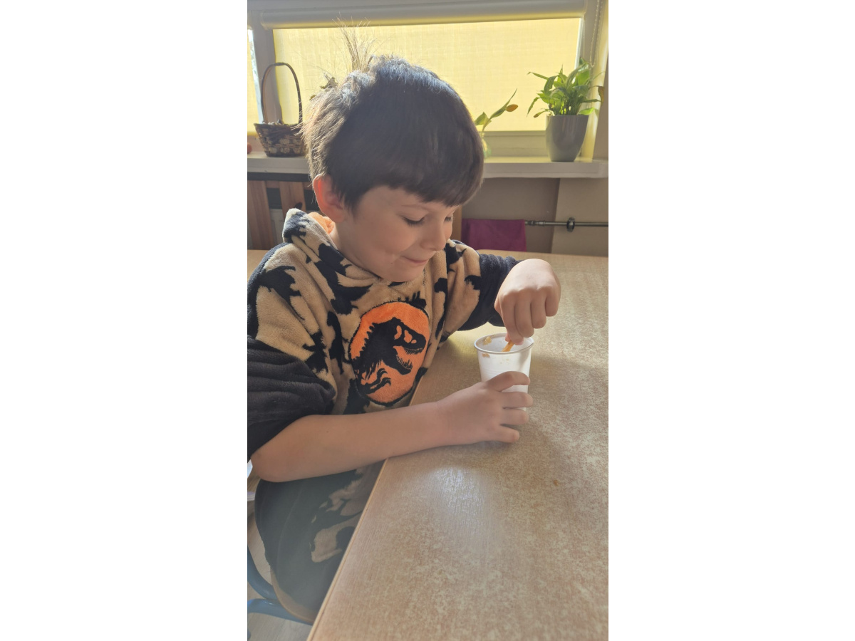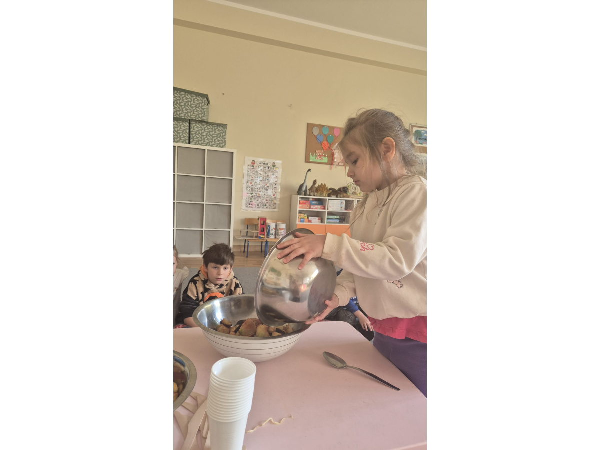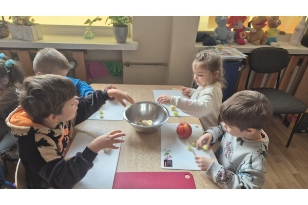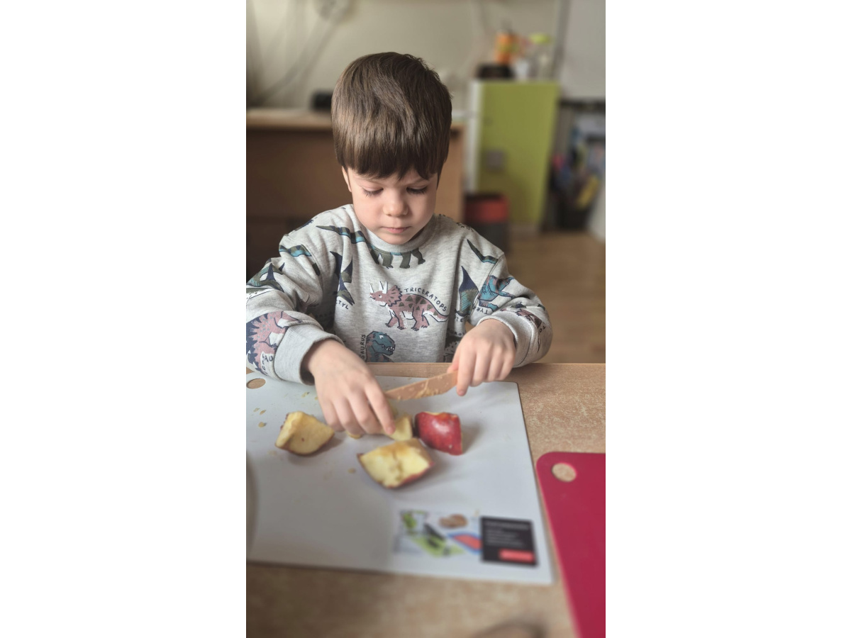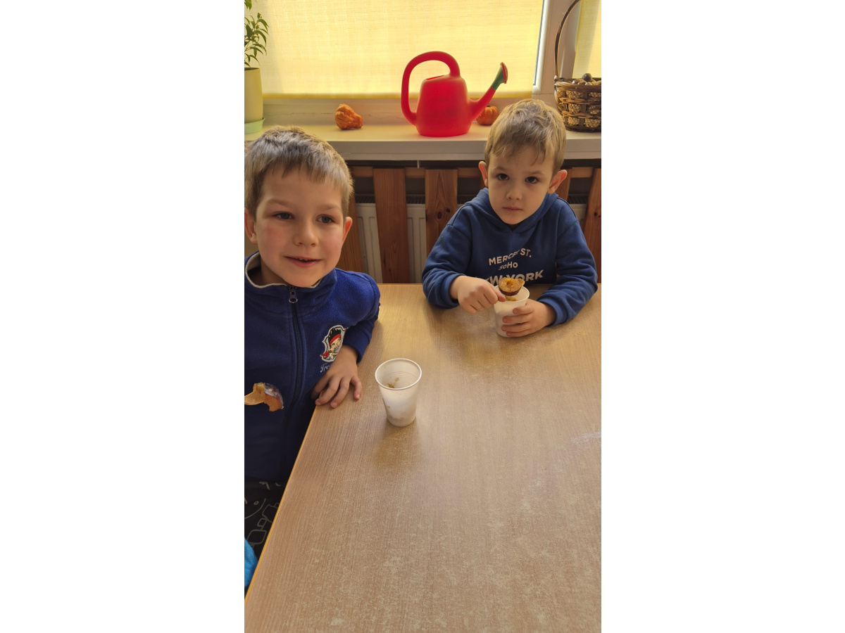 Dzieci z zaangażowaniem umyły a następnie pokroimy owoce. Podczas zajęć przedszkolaki uczyły się rozpoznawać owoce, rozwijały umiejętności współpracy i samodzielności. Na koniec wszyscy z apetytem zajadali przygotowane pyszności. Było kolorowo, zdrowo i bardzo smacznie!