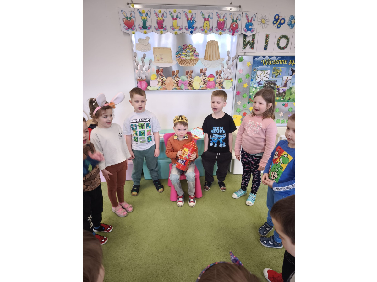 W piękny wiosenny dzień Manuel obchodził swoje piąte urodziny w gronie kolegów i koleżanek z przedszkola. Było radośnie, kolorowo i wesoło. Wszyscy zaśpiewali Manuelowi STO LAT i wesoło bawili się przy piosence „Urodzinowe spotkanie na polanie”.