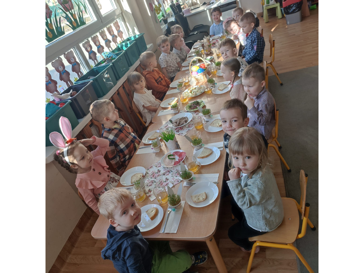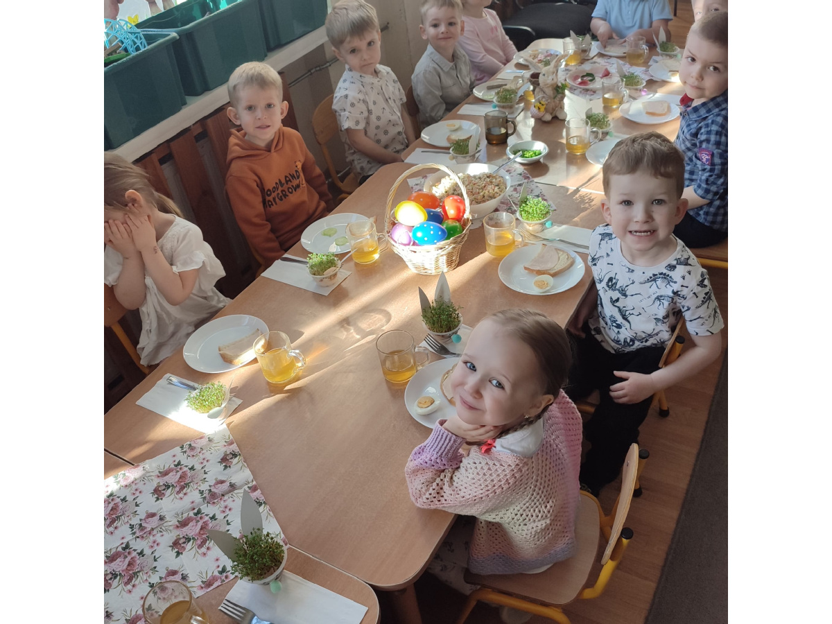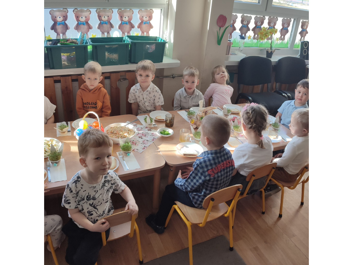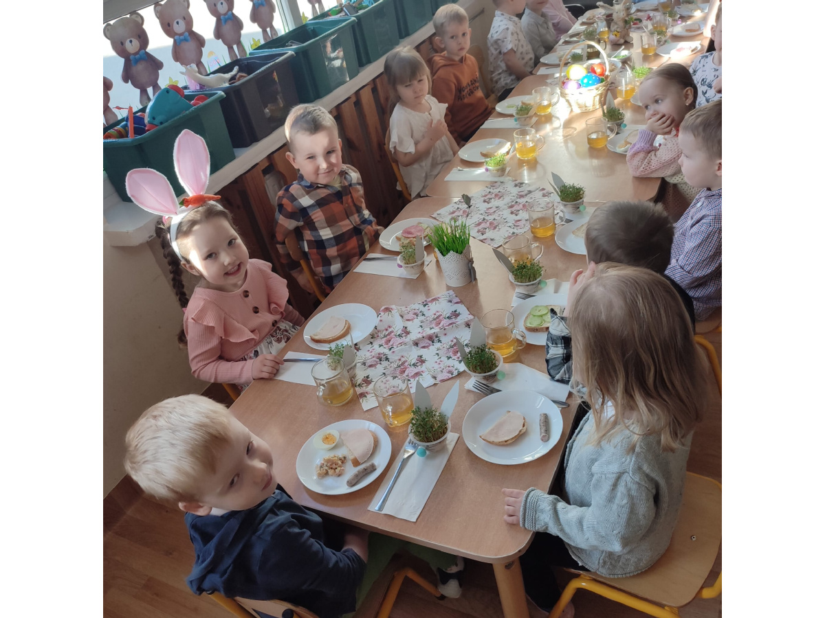 Przedszkolaki wzięły udział w uroczystym wielkanocnym śniadaniu, które było nie tylko okazją do wspólnego posiłku, ale także do poznania polskich zwyczajów.