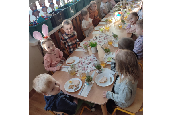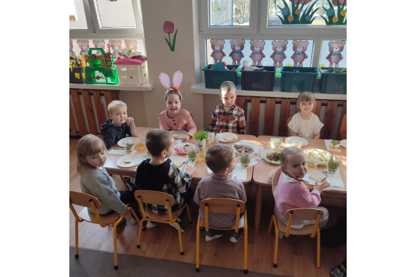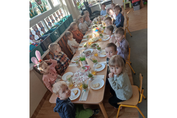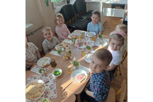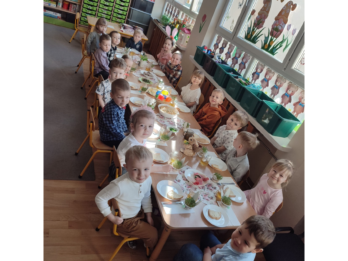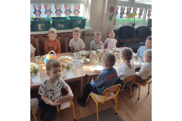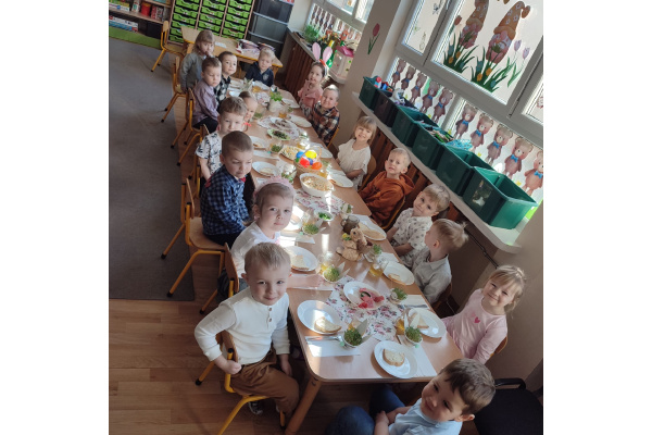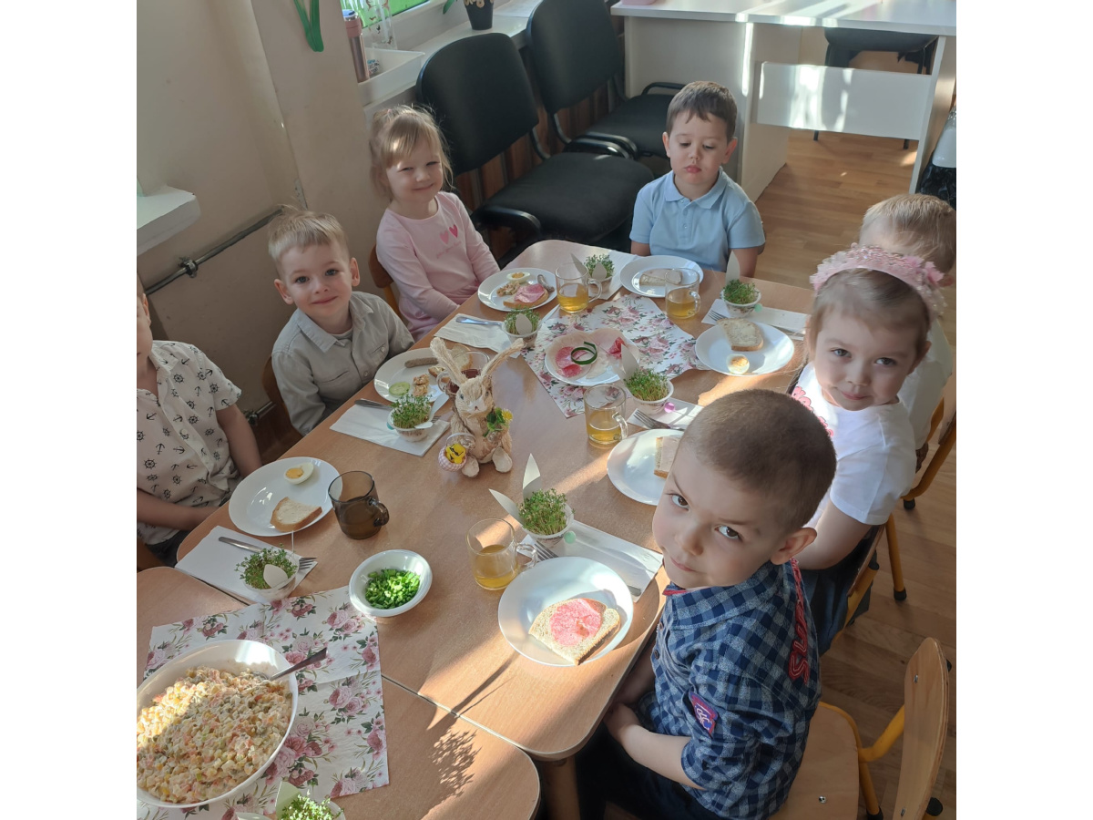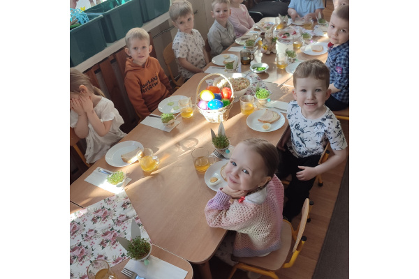 Przedszkolaki wzięły udział w uroczystym wielkanocnym śniadaniu, które było nie tylko okazją do wspólnego posiłku, ale także do poznania polskich zwyczajów.