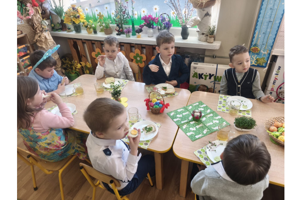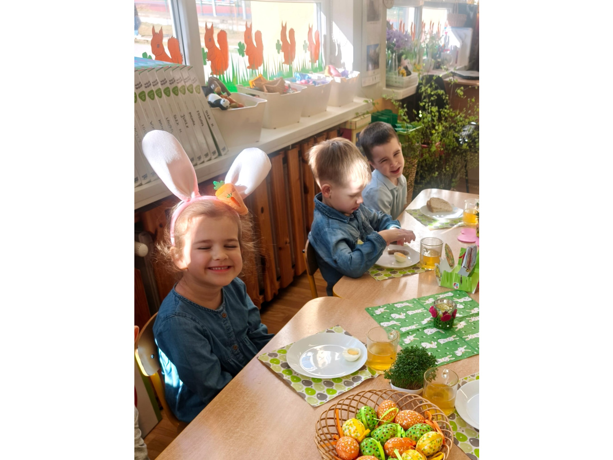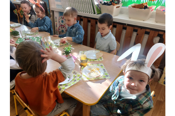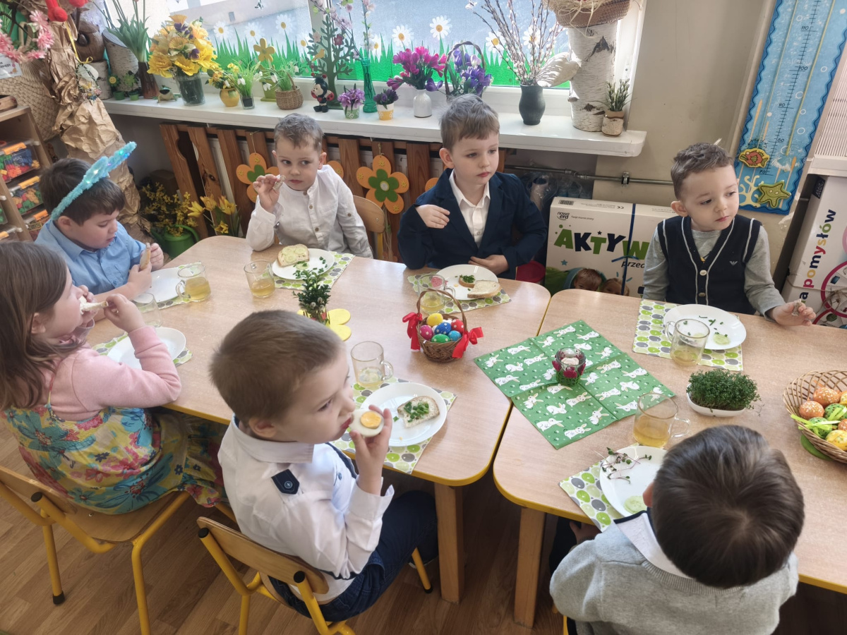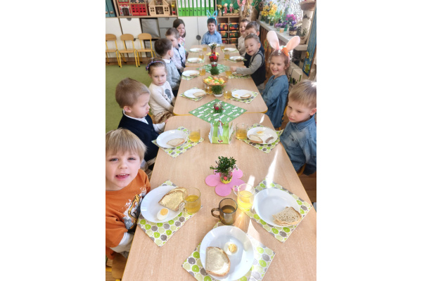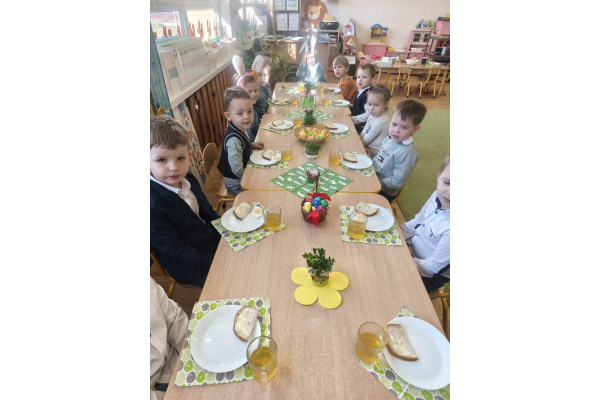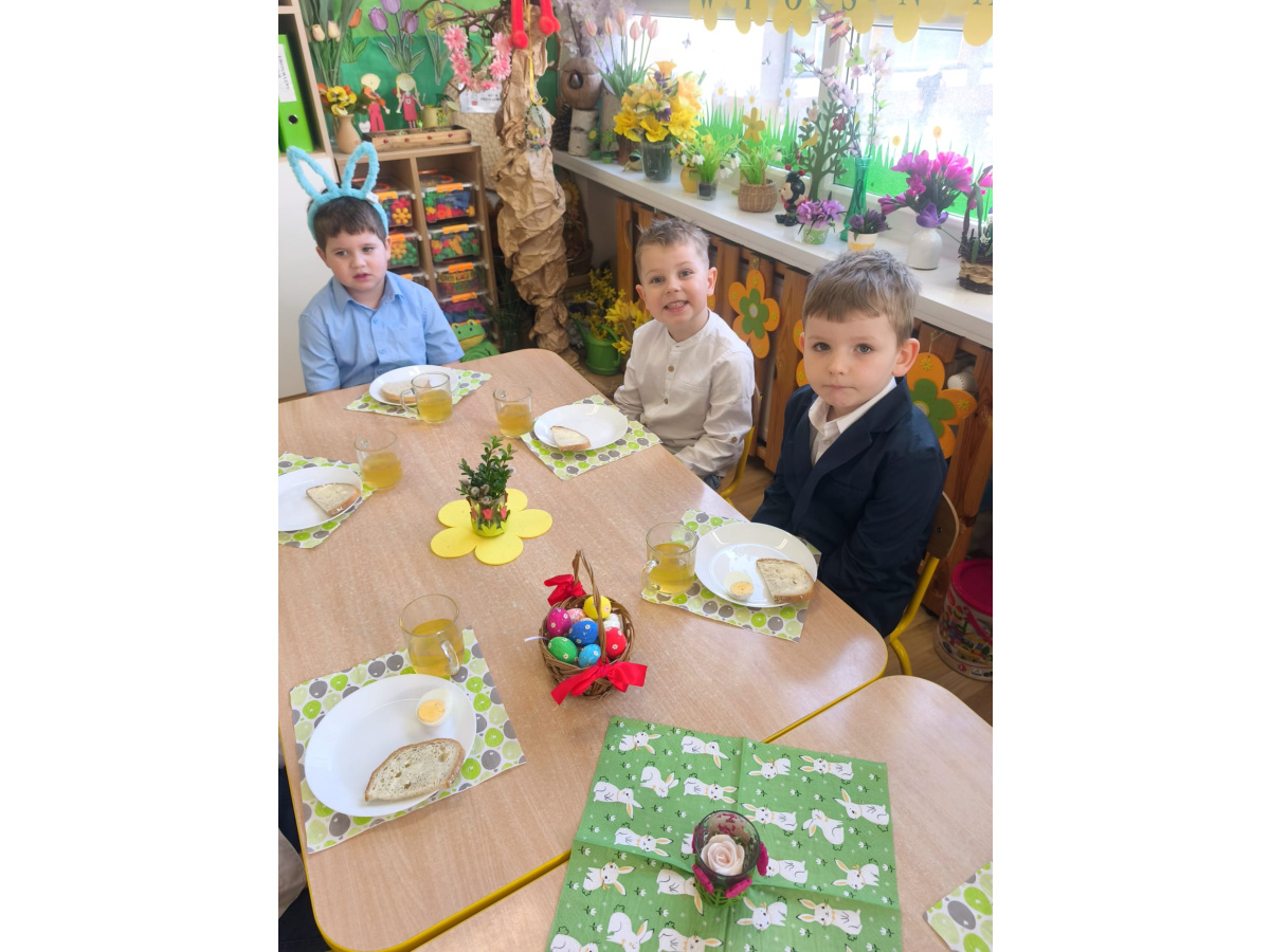 Przedszkolaki wzięły udział w uroczystym wielkanocnym śniadaniu, które było nie tylko okazją do wspólnego posiłku, ale także do poznania polskich zwyczajów.