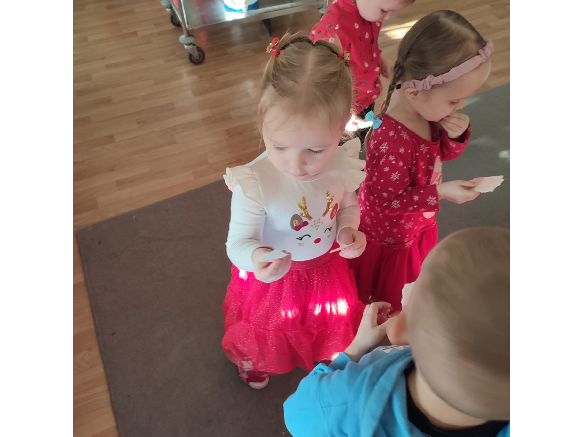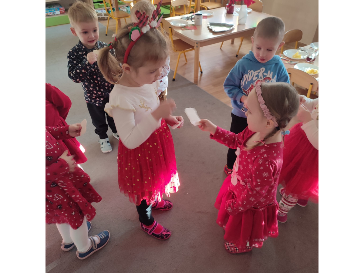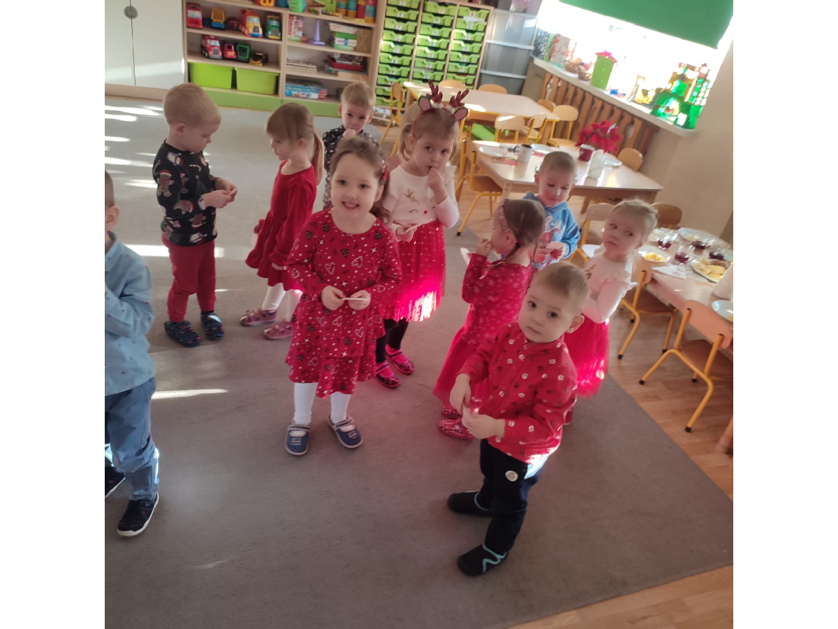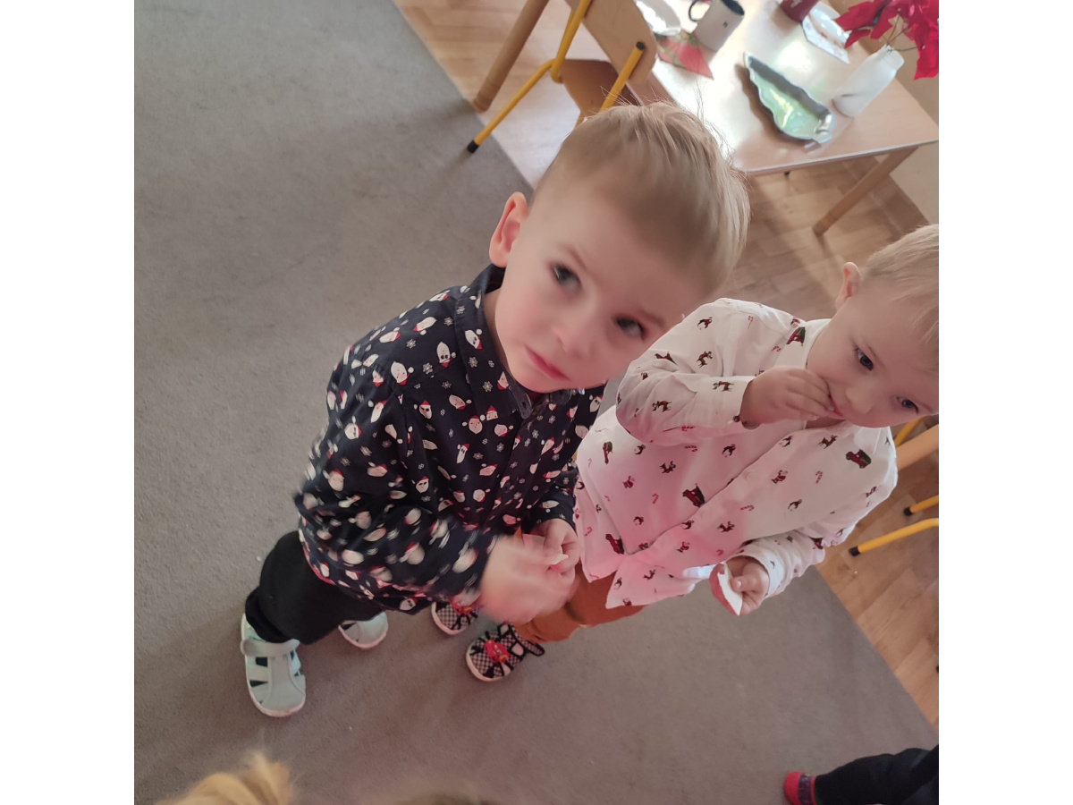 Po wizycie Gwiazdora odbyła się uroczysta Wigilia. Dzieci wspólnie zasiadły do świątecznego stołu, składały sobie życzenia i dzieliły się opłatkiem. Był to czas pełen ciepła i radości, który na długo pozostanie w naszej pamięci.