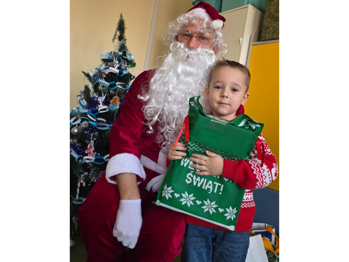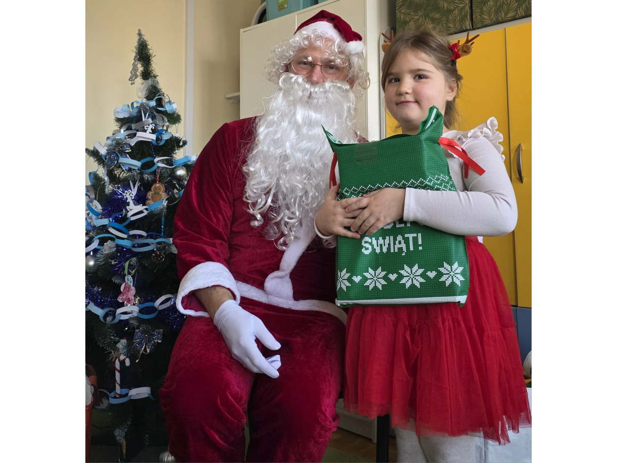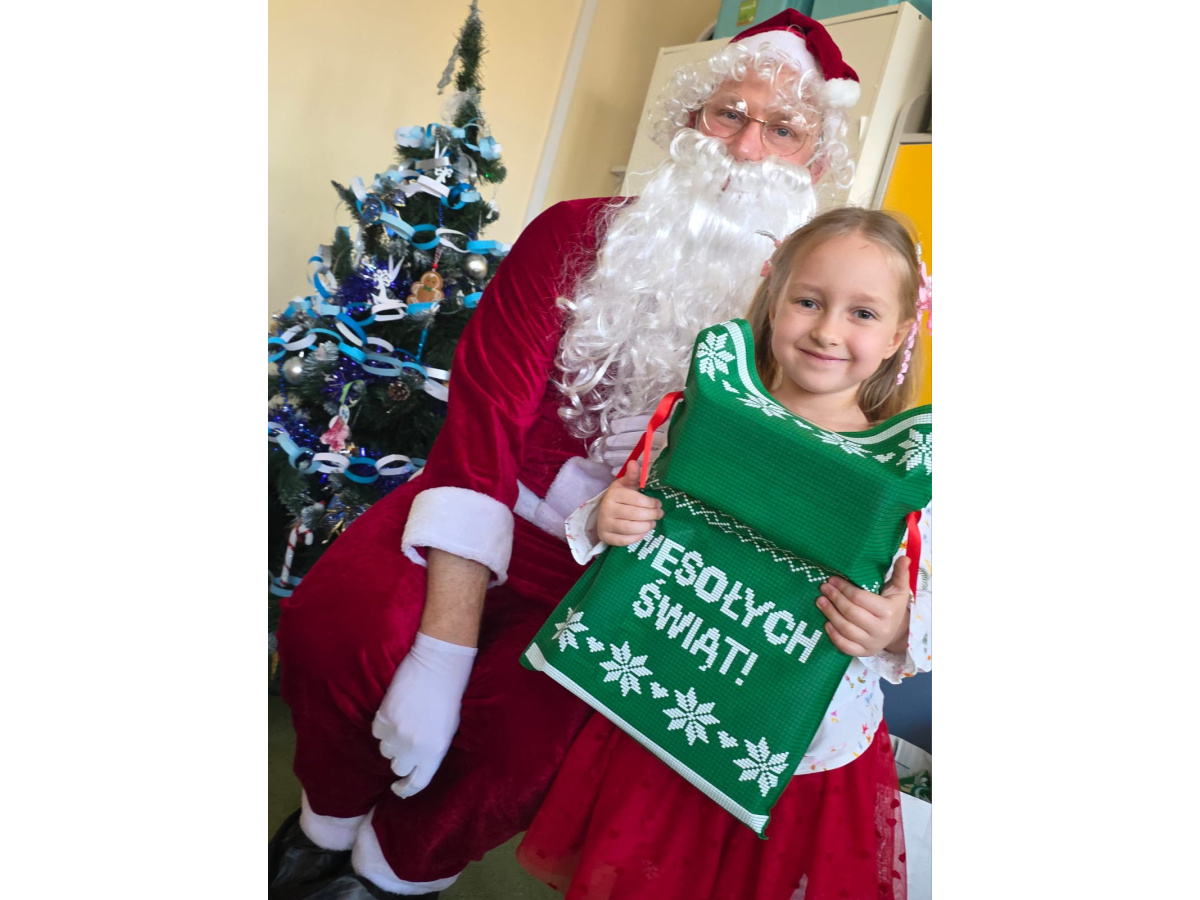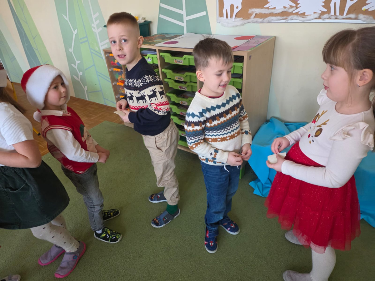 Po wizycie Gwiazdora odbyła się uroczysta Wigilia. Dzieci wspólnie zasiadły do świątecznego stołu, składały sobie życzenia i dzieliły się opłatkiem. Był to czas pełen ciepła i radości, który na długo pozostanie w naszej pamięci.