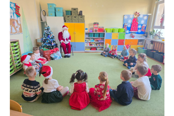 W piątek w naszym przedszkolu panowała radosna i świąteczna atmosfera. Odwiedził nas długo wyczekiwany Gwiazdor, który sprawił dzieciom ogromną niespodziankę. Przedszkolaki powitały go radosnymi piosenkami, a następnie otrzymały prezenty, które wywołały wiele uśmiechów i radości.