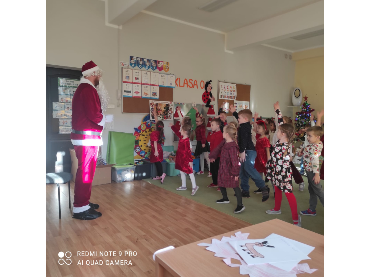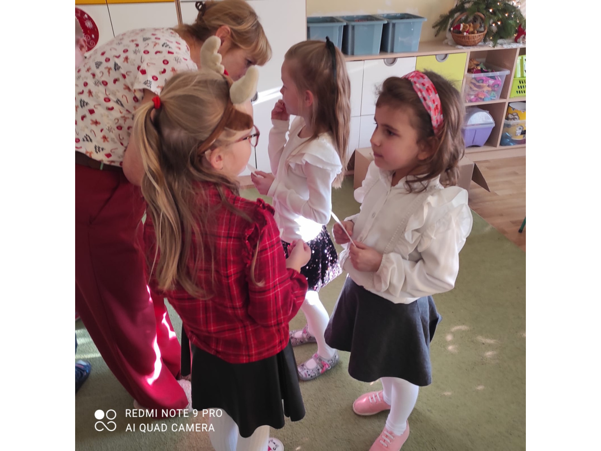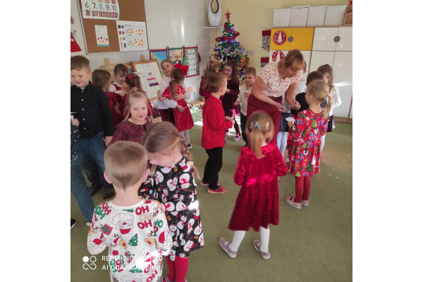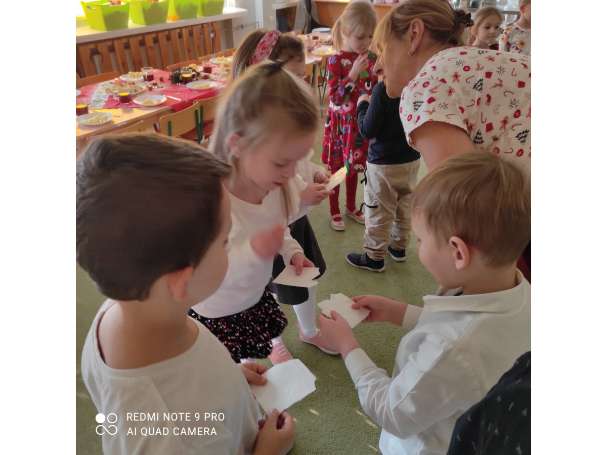 Po wizycie Gwiazdora odbyła się uroczysta Wigilia. Dzieci wspólnie zasiadły do świątecznego stołu, składały sobie życzenia i dzieliły się opłatkiem. Był to czas pełen ciepła i radości, który na długo pozostanie w naszej pamięci.