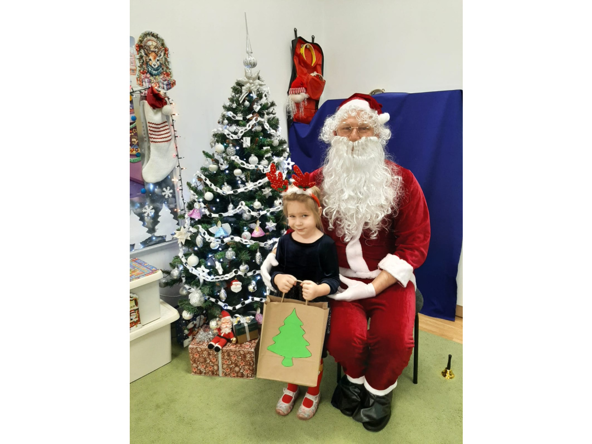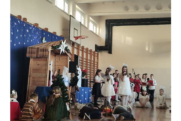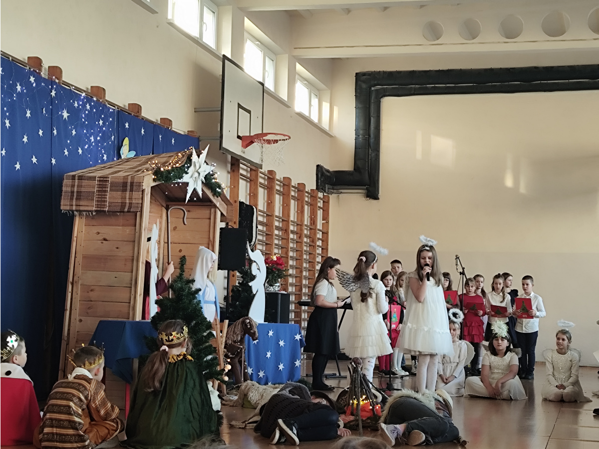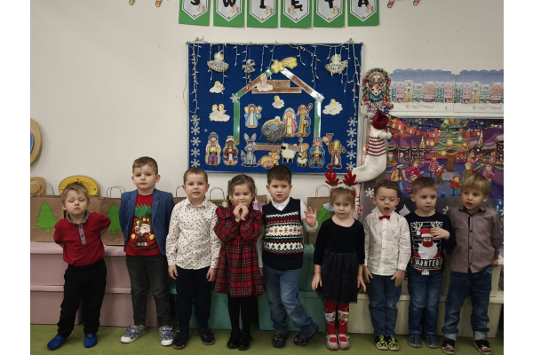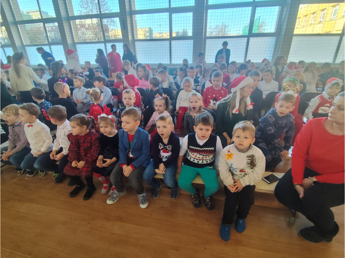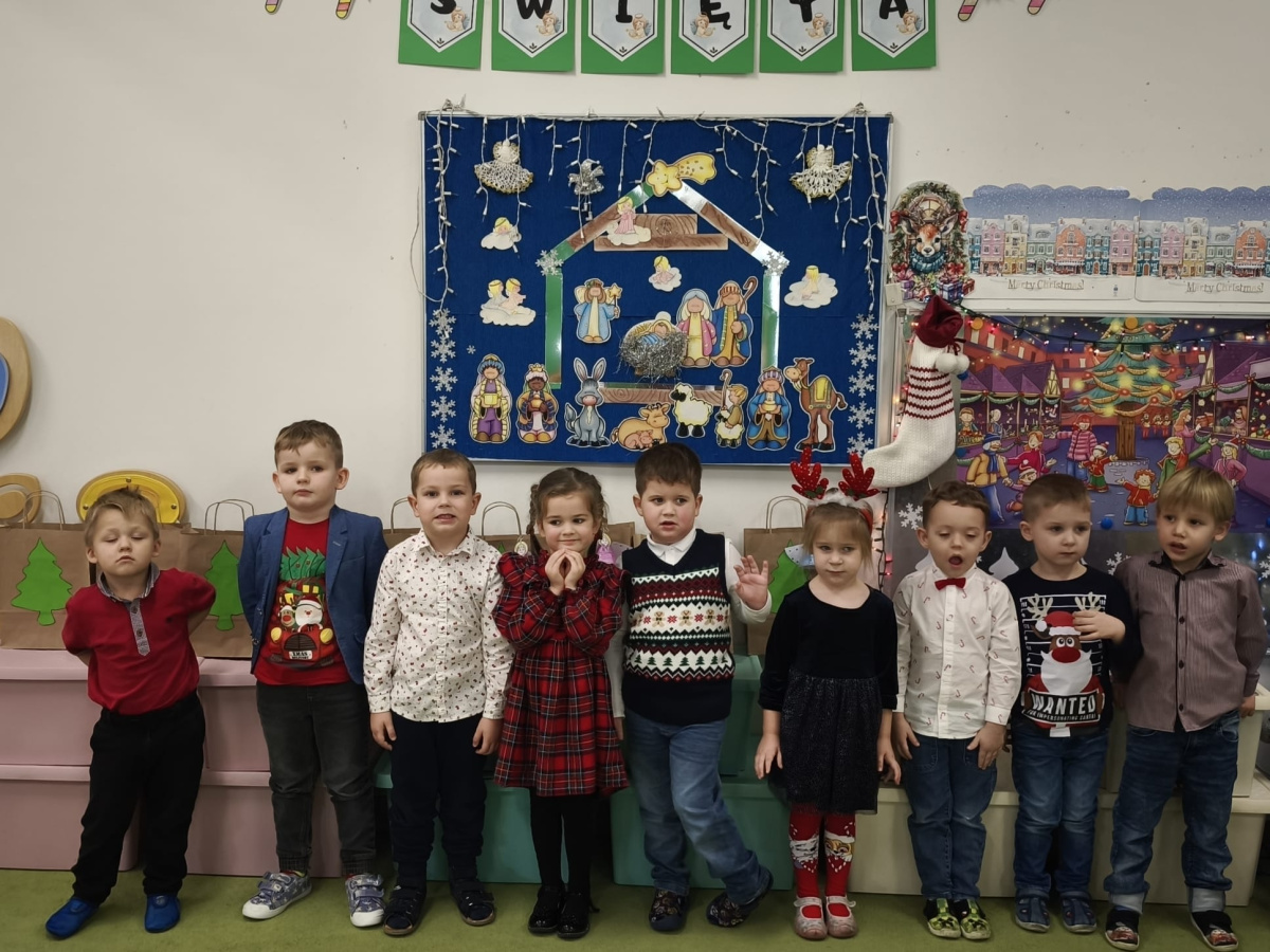 Po wizycie Gwiazdora odbyła się uroczysta Wigilia. Dzieci wspólnie zasiadły do świątecznego stołu, składały sobie życzenia i dzieliły się opłatkiem. Był to czas pełen ciepła i radości, który na długo pozostanie w naszej pamięci.
