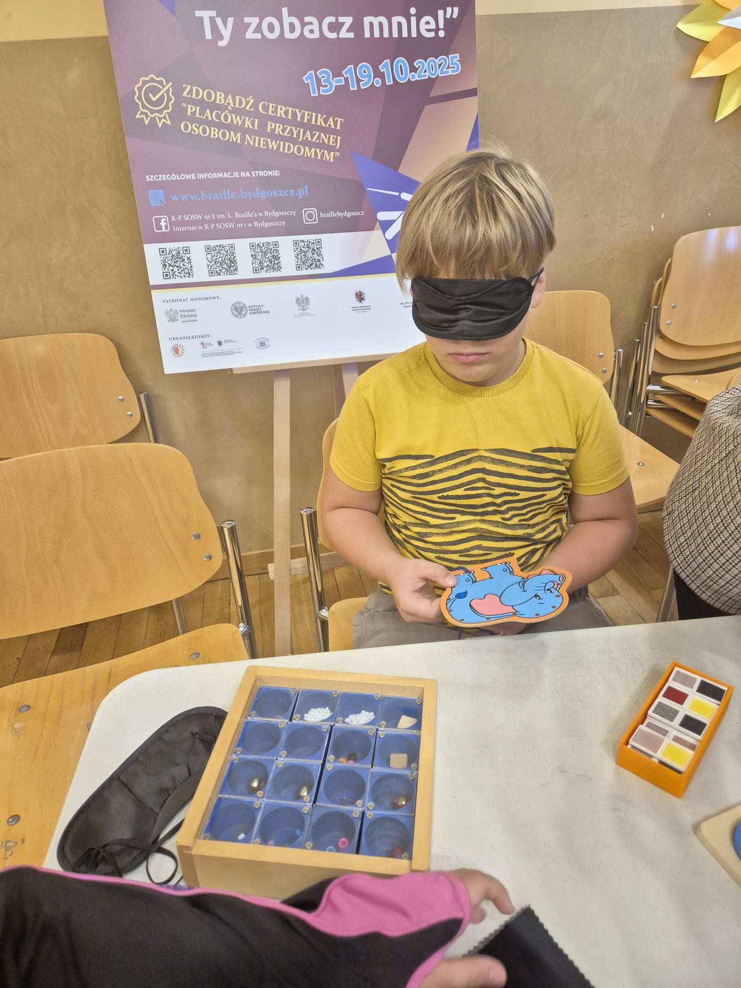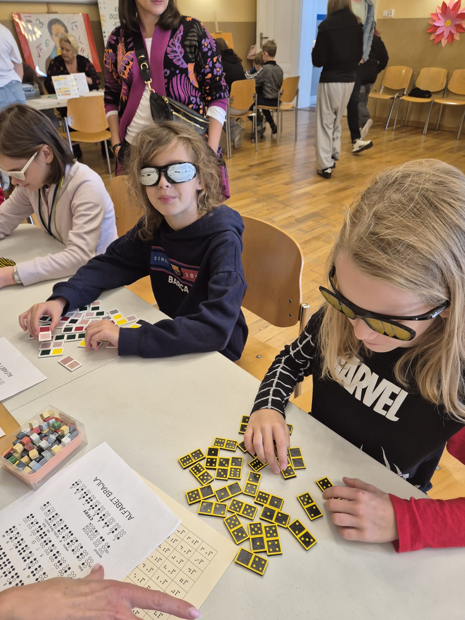 15 października 2025 roku uczniowie klasy 2a mieli niezwykłą okazję odwiedzić szkołę dla dzieci niewidomych i niedowidzących. Było to wyjątkowe doświadczenie, które pozwoliło dzieciom nie tylko poznać codzienne wyzwania osób z dysfunkcją wzroku, ale także nauczyć się empatii, współpracy i zrozumienia dla innych. Zajęcia pełne wyzwań i nauki. Podczas wizyty uczniowie uczestniczyli w specjalnie przygotowanych zajęciach, które miały na celu przybliżenie im świata osób niewidomych. Dzieci wykonywały różnorodne zadania, m.in. poruszały się z zasłoniętymi oczami, wykonywały również różne ciekawe ćwiczenia oraz uczyły się pisać na maszynie, ucząc się polegać na innych zmysłach i wsparciu kolegów. Miały także okazję poznać podstawowe zasady poruszania się z białą laską oraz ćwiczyć orientację w przestrzeni.