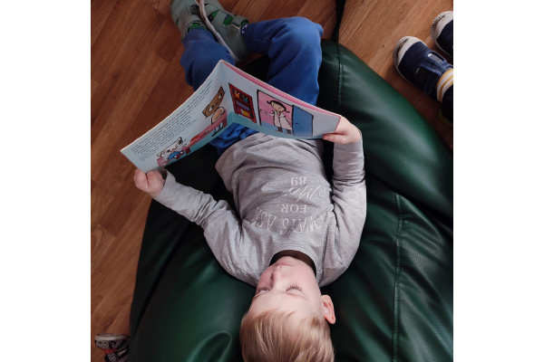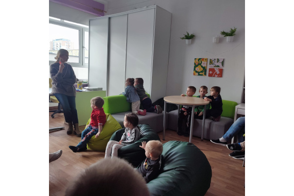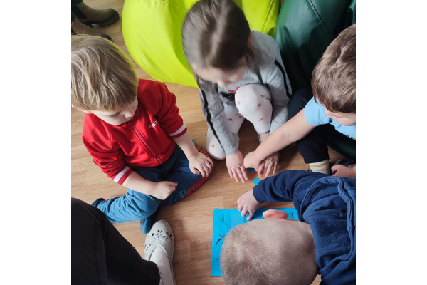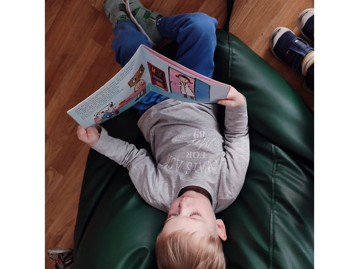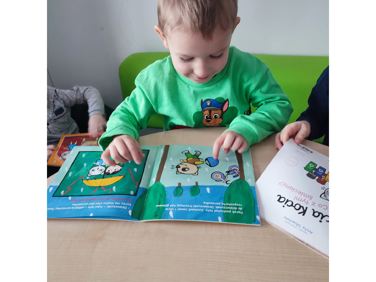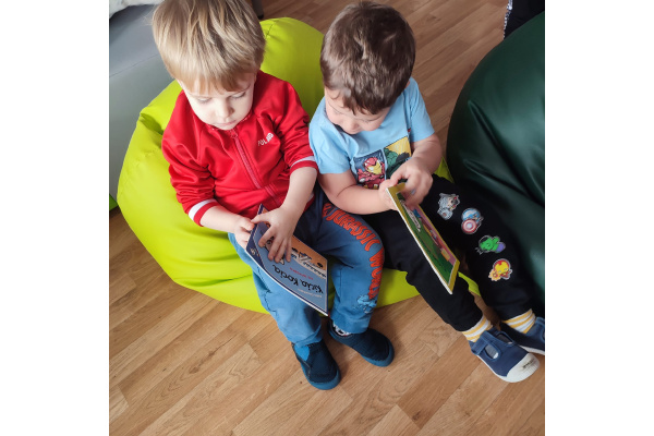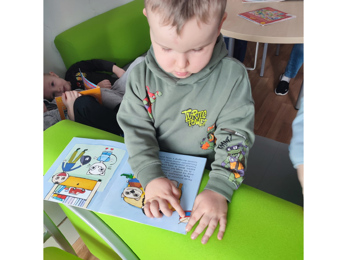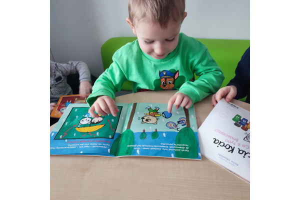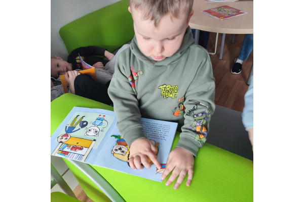 Przedszkolaki z zainteresowaniem oglądały książki, rozpoznawały kolory oraz nazywały różne kształty ukryte na ilustracjach.Dzieci przekonały się, że czytanie może być wspaniałą zabawą.