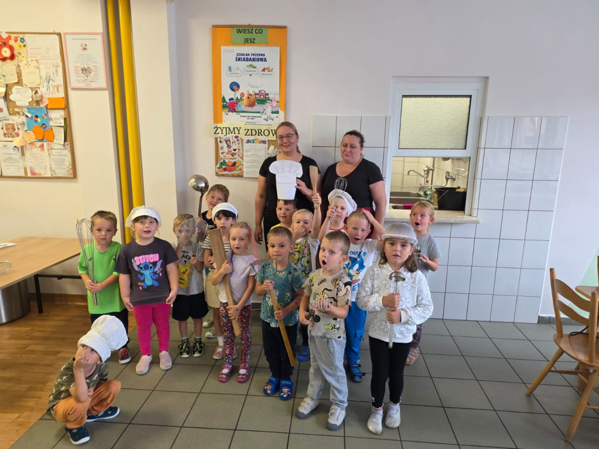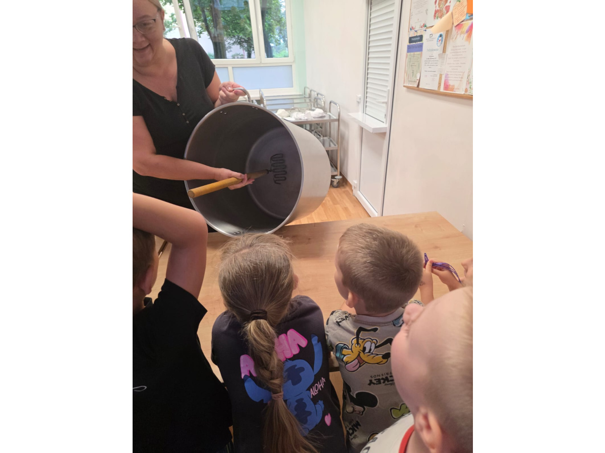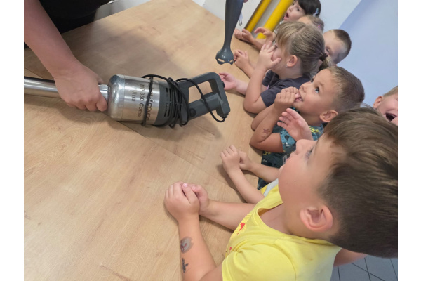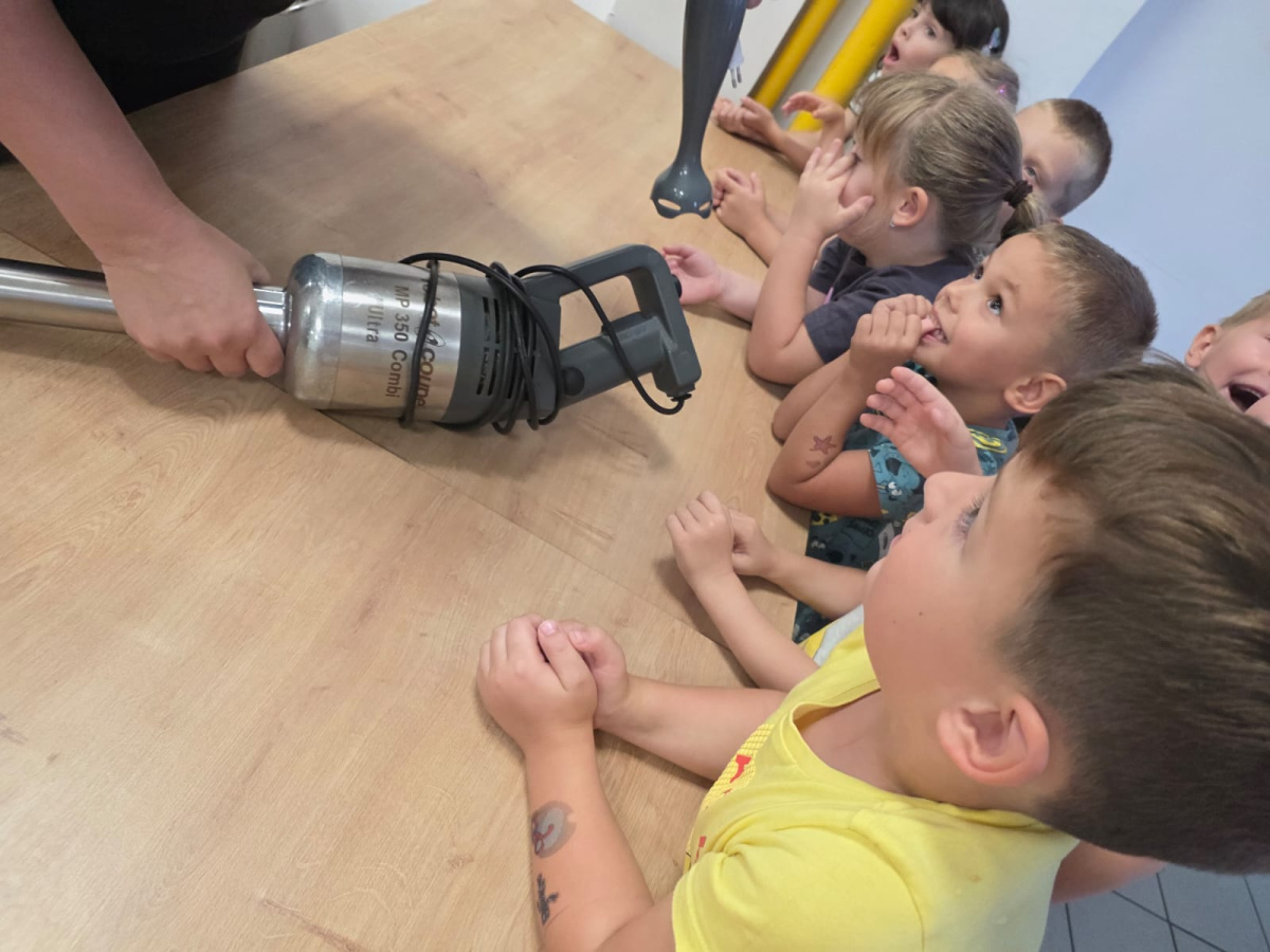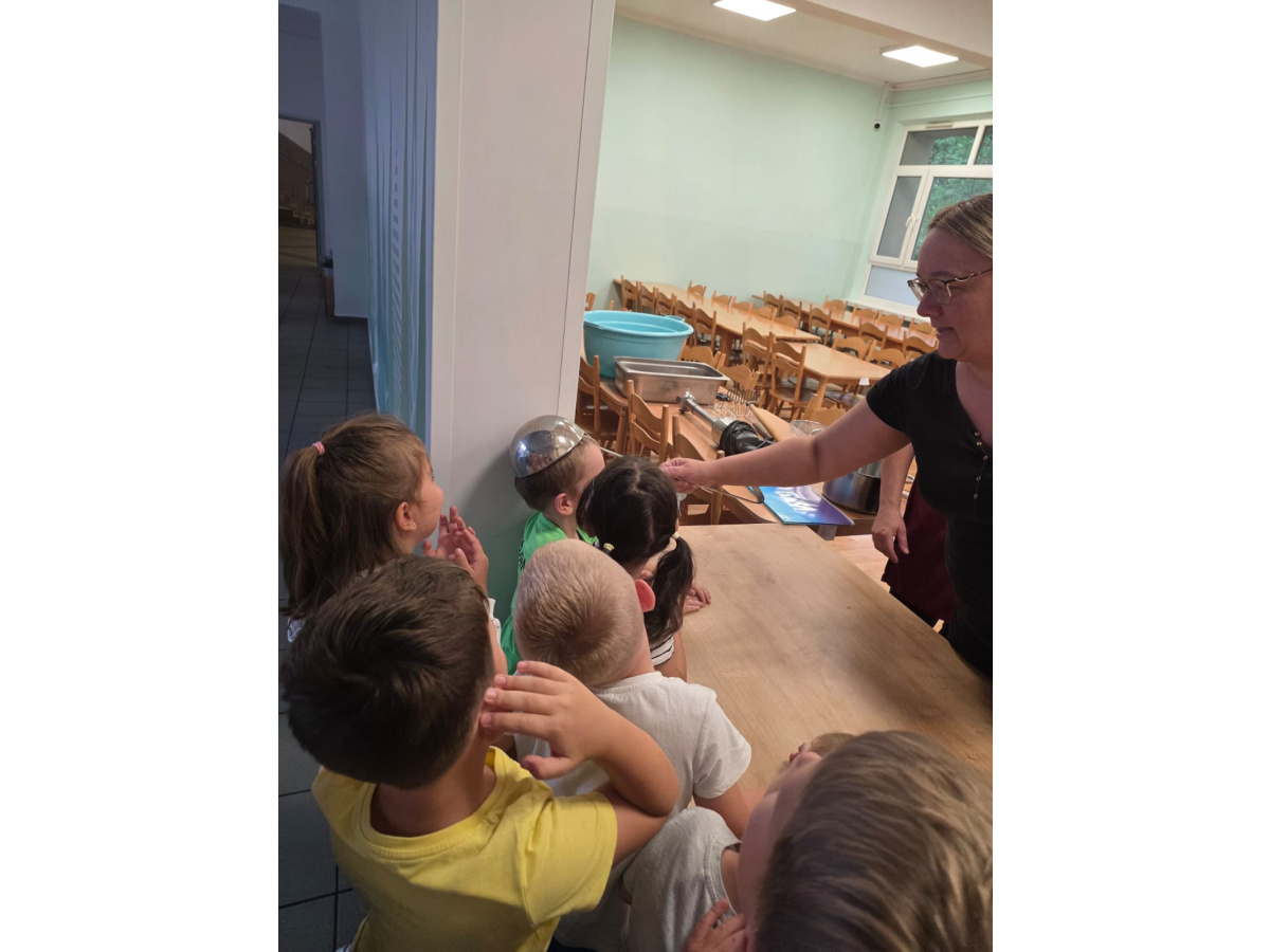 Szefowe kuchni zdradziły nam tajemne sekrety pracy w kuchni i pokazały sprzęty które możemy znaleźć w domu ale w wersji max. Dzieci z zafascynowaniem słuchały Pań Kucharek i z ciekawością zadawały pytania. Dziękujemy za dzisiejszą wizytę.