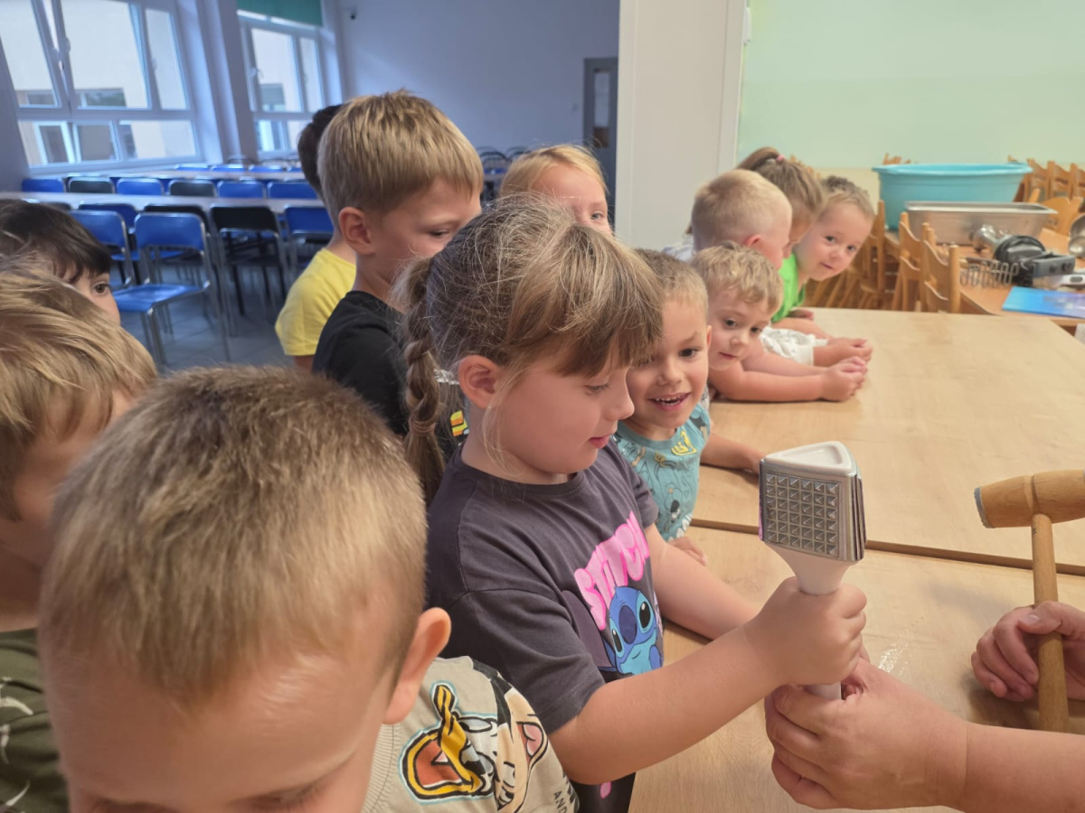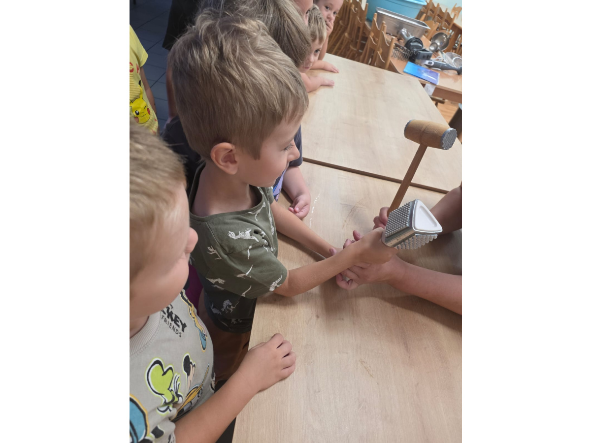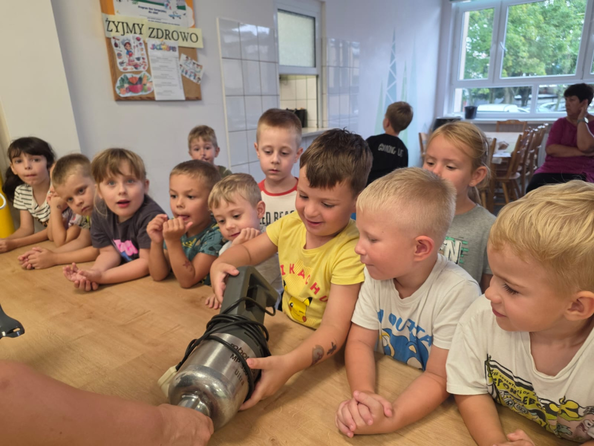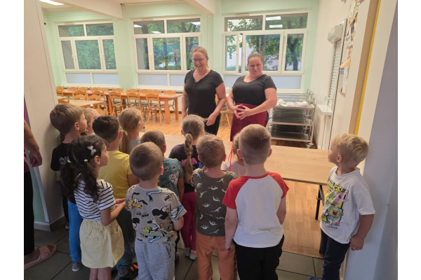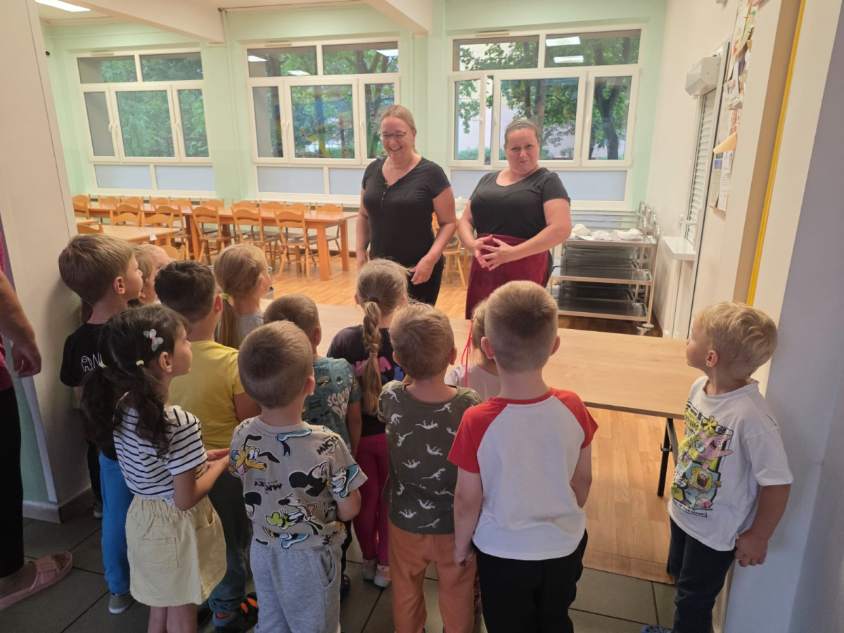 Szefowe kuchni zdradziły nam tajemne sekrety pracy w kuchni i pokazały sprzęty które możemy znaleźć w domu ale w wersji max. Dzieci z zafascynowaniem słuchały Pań Kucharek i z ciekawością zadawały pytania. Dziękujemy za dzisiejszą wizytę.