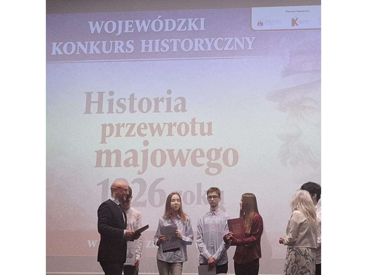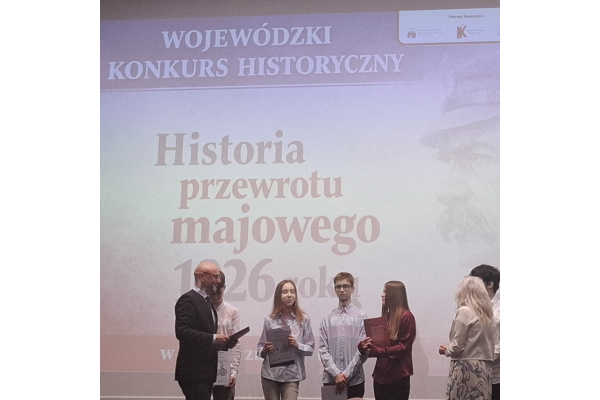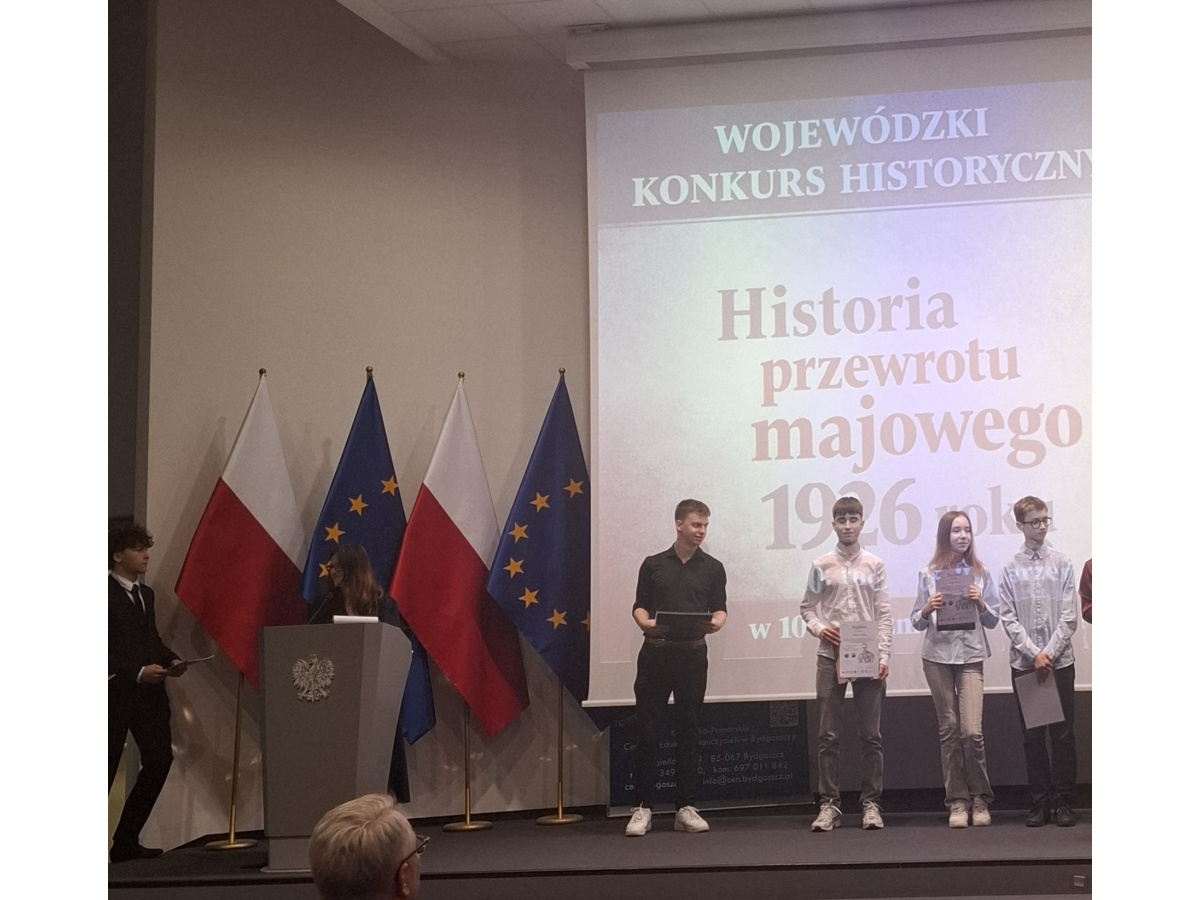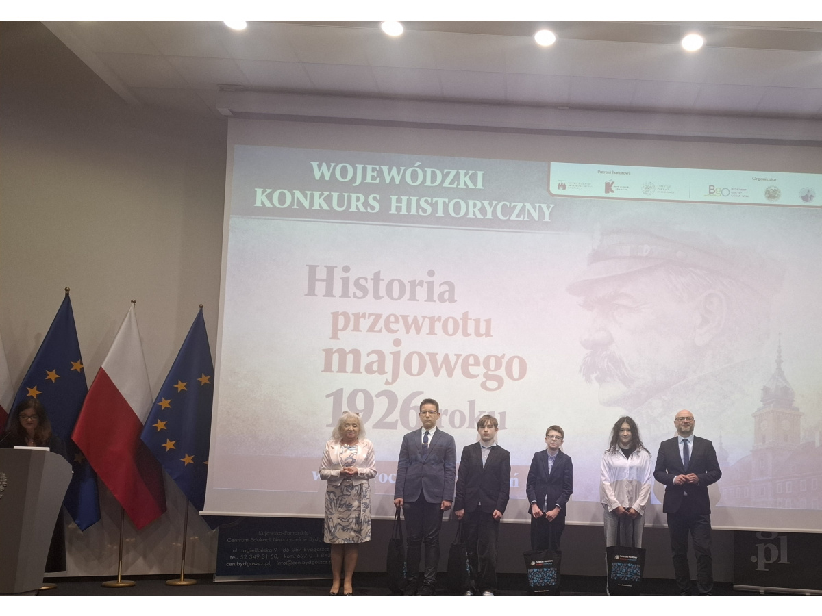 16 kwietnia 2026 roku w Urzędzie Wojewódzkim w Bydgoszczy odbyła się Gala wręczenia nagród laureatom, finalistom i uczestnikom Wojewódzkiego Konkursu Historycznego dla szkół podstawowych i ponadpodstawowych p.t: "Historia przewrotu majowego 1926 roku w 100. rocznicę wydarzeń”. Rzeczywistość Polaków, Bydgoszczan i mieszkańców naszego regionu w obliczu lat 30. dwudziestego stulecia".