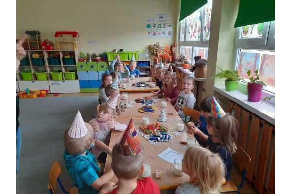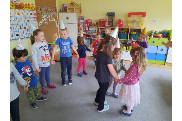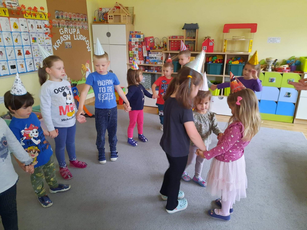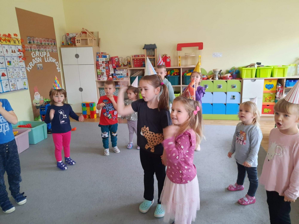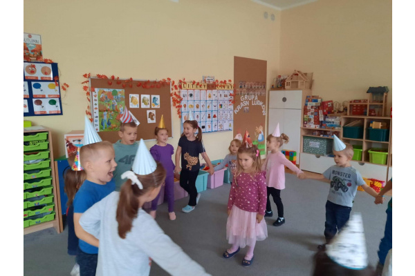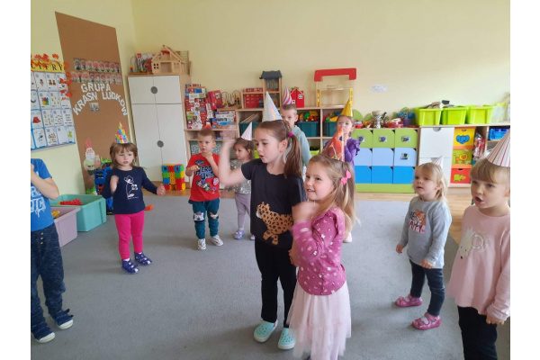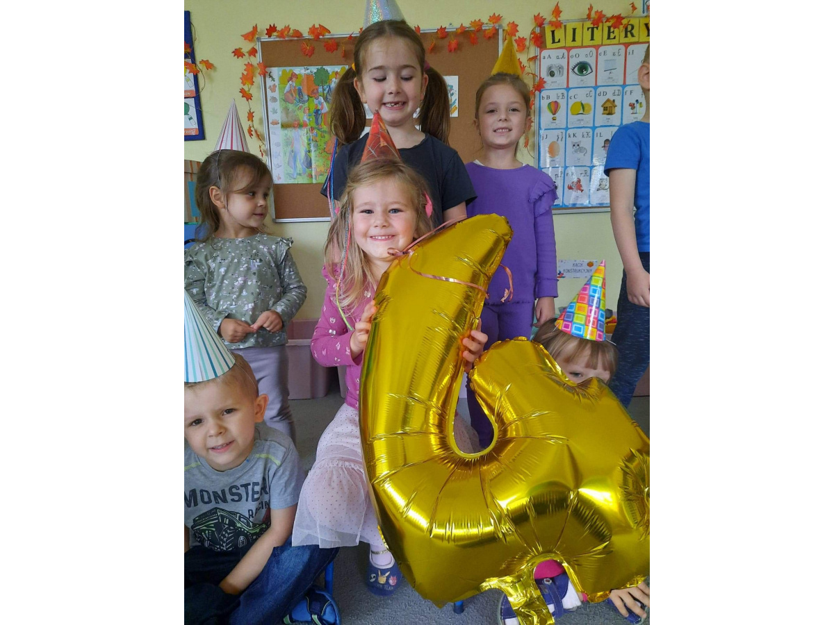 Dziś wraz z kolegami i koleżankami z przedszkola swoje 4 urodziny obchodziła POLA z grupy „Krasnoludki”. Wspólnie zaśpiewaliśmy Poli „Sto lat”, "Dziś sppotkanie na polanie" oraz "Happy birthday" i złożyliśmy życzenia. Był poczęstunek i tańce. A Poli życzymy wszystkiego co najwspanialsze, najpiękniejsze i najlepsze !