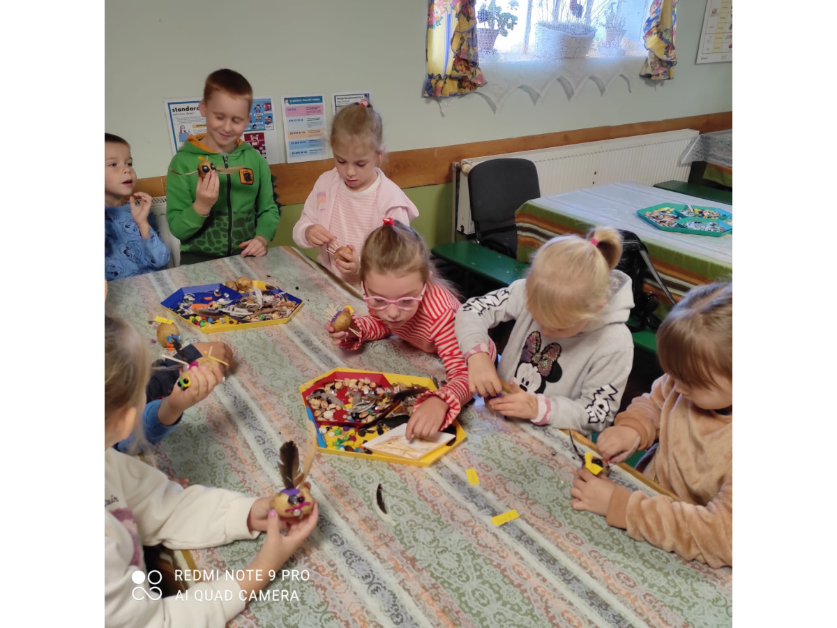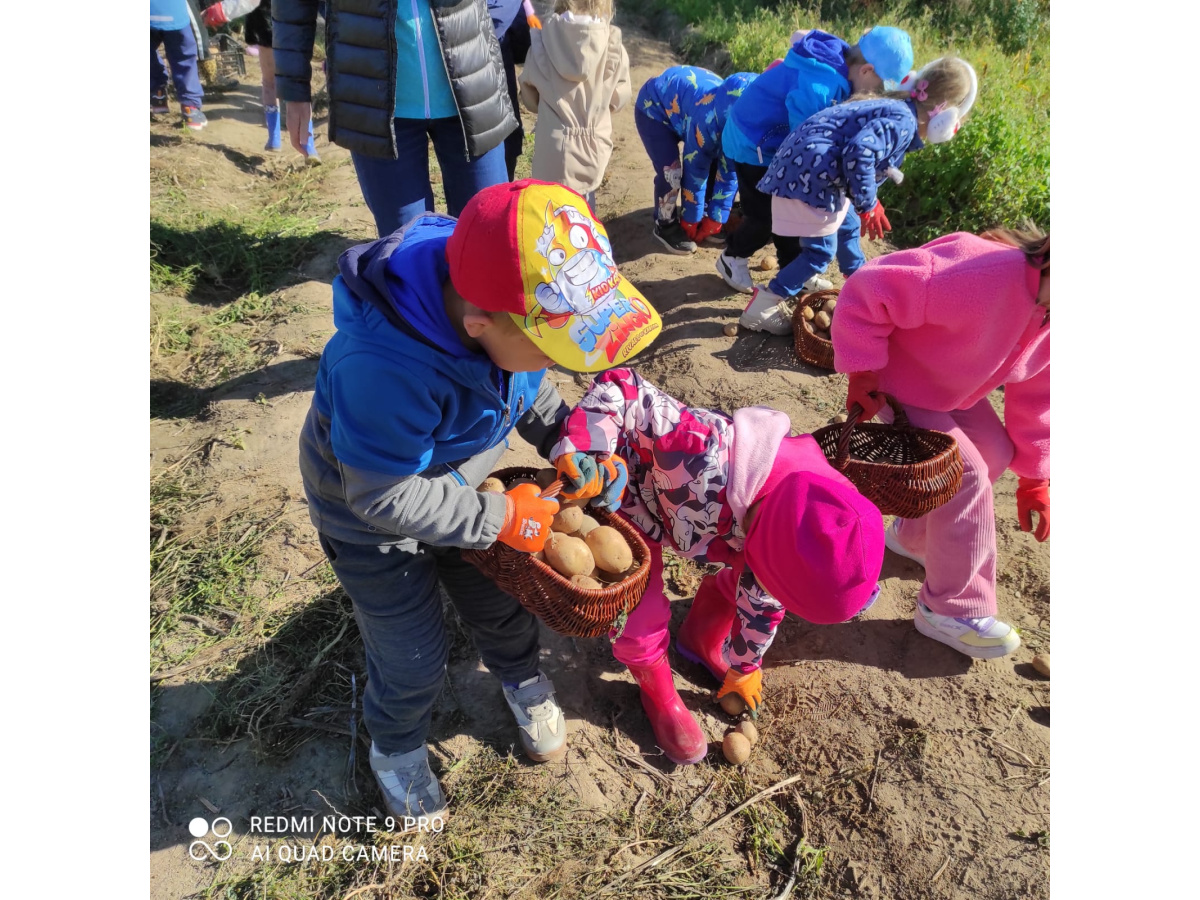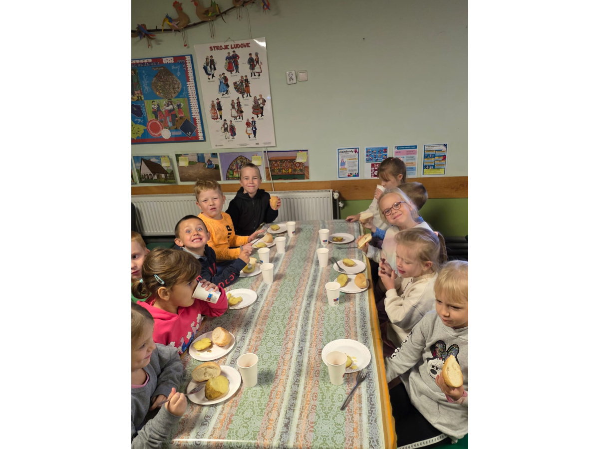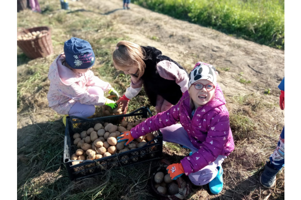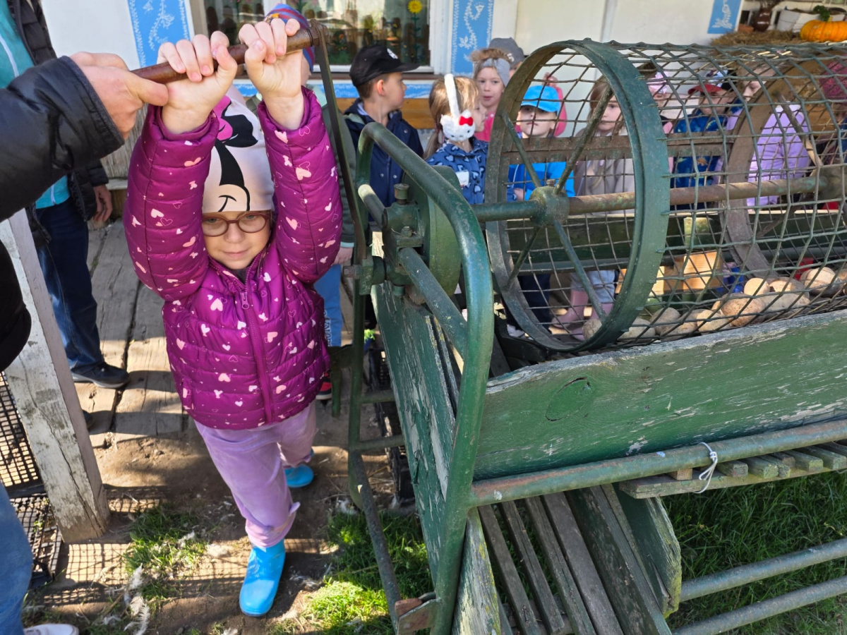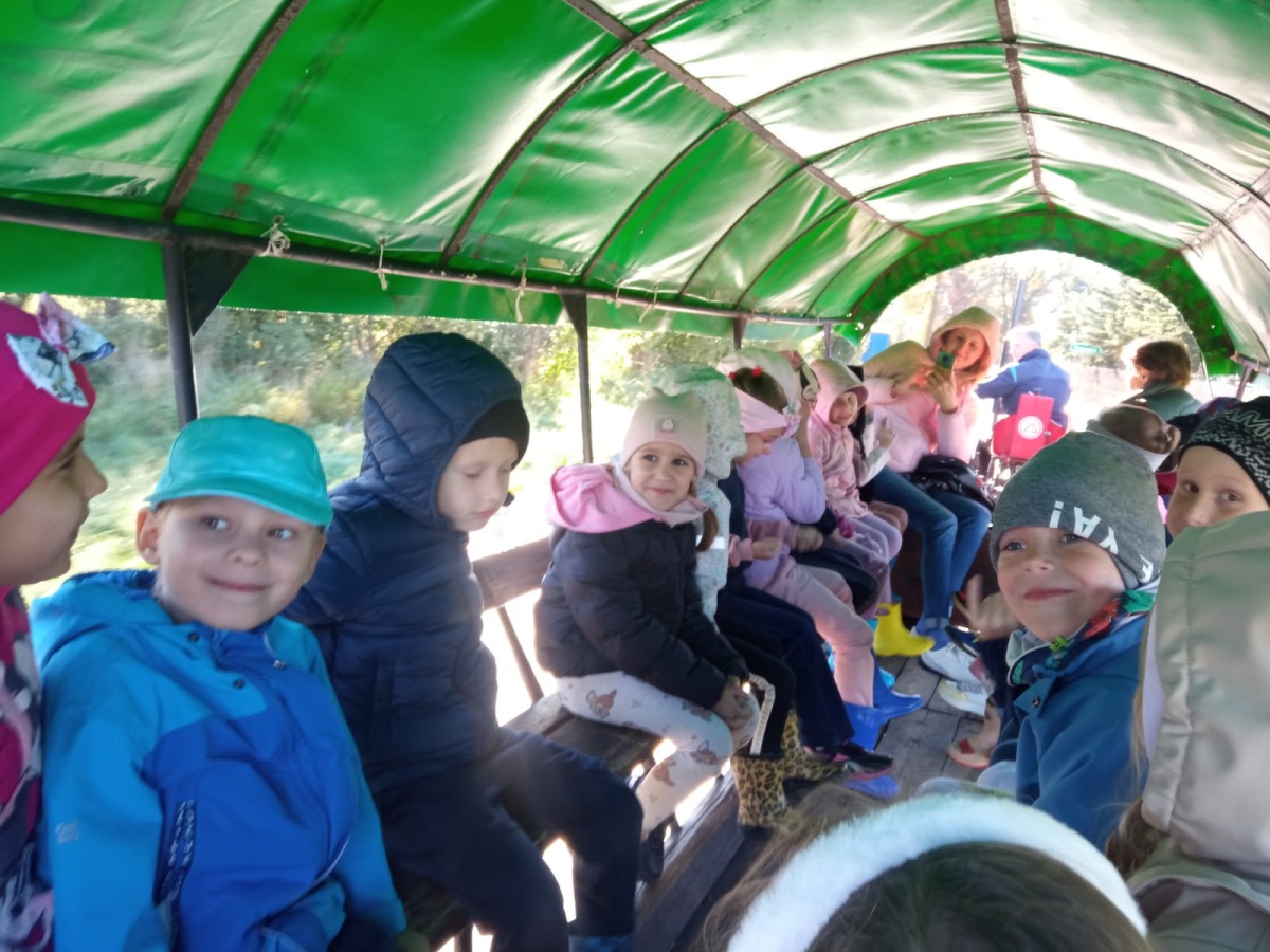 Na sam początek dnia wyruszyliśmy wozem po polach, podziwialiśmy otoczenie i klucze żurawi. Następnie rozgrzaliśmy sie przy pysznej malinowej herbatce,tworząc ziemniaczane cudaki-każdy z nas wykazał się kreatywnością. Próbowaliśmy tez smacznych ,polskich ziemniaków z pieca. Zwiedziliśmy wystawę starych przedmiotów, nakarmiliśmy głodne zwierzątka- to zadanie sprawiło nam dużo frajdy. Pobawiliśmy sie na ogromnym placu, a na koniec udaliśmy się na wykopki. To było zadanie stworzone dla wszystkich dzieci, nikt tak szybko jak Sówki i Biedronki nie potrafi zbierać na polu ziemniaków. Zmęczeni i zadowoleni wróciliśmy do przedszkola na pyszny obiadek.