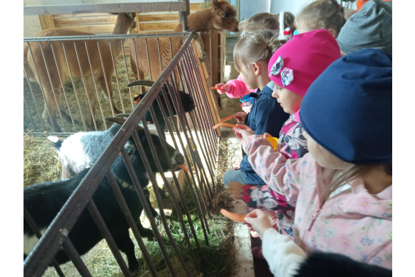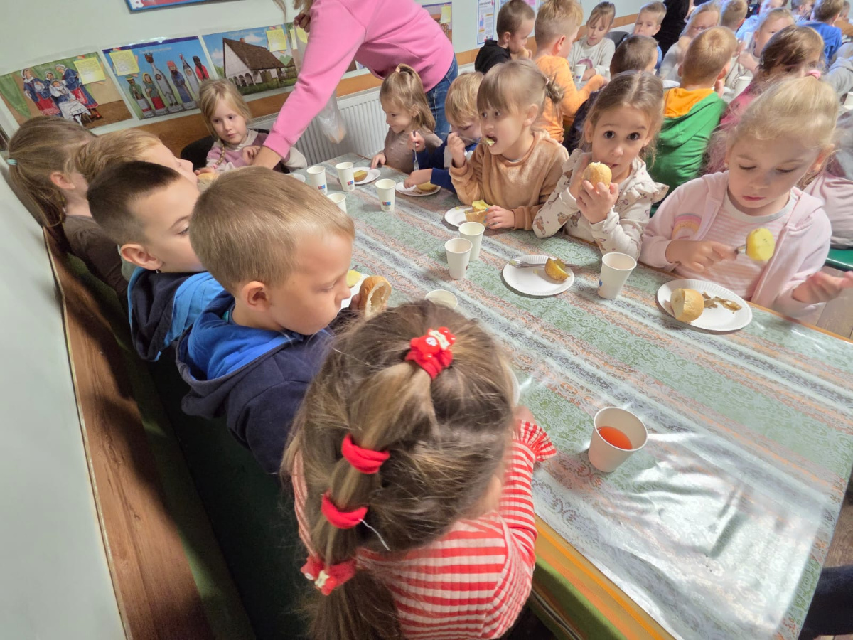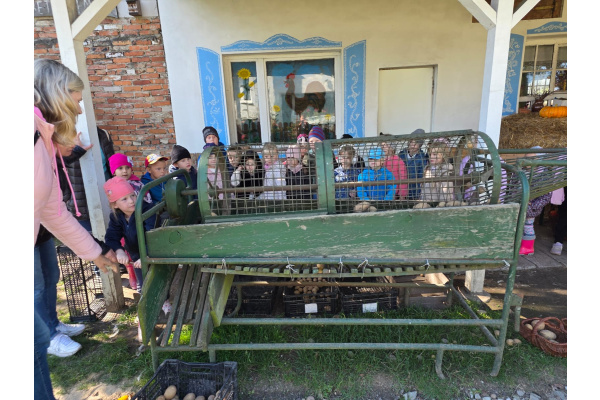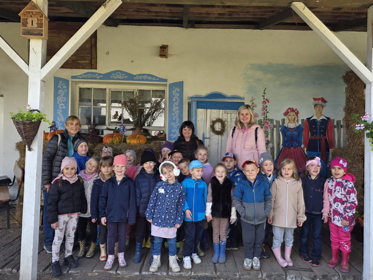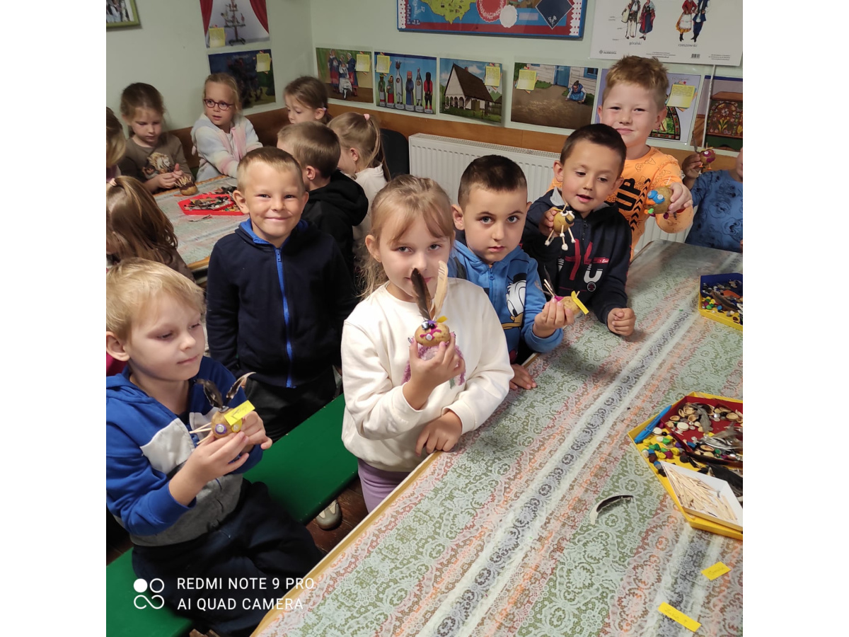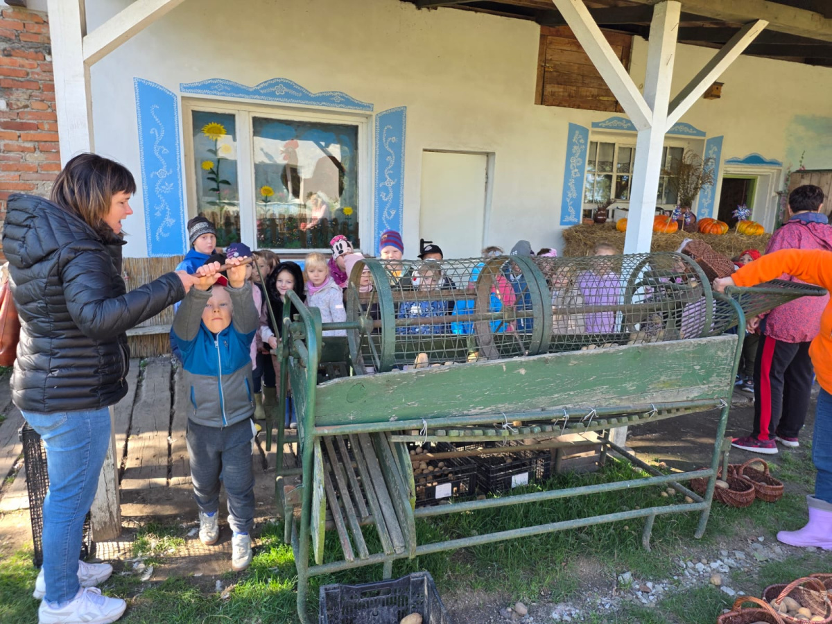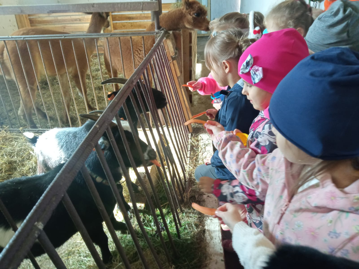 Na sam początek dnia wyruszyliśmy wozem po polach, podziwialiśmy otoczenie i klucze żurawi. Następnie rozgrzaliśmy sie przy pysznej malinowej herbatce,tworząc ziemniaczane cudaki-każdy z nas wykazał się kreatywnością. Próbowaliśmy tez smacznych ,polskich ziemniaków z pieca. Zwiedziliśmy wystawę starych przedmiotów, nakarmiliśmy głodne zwierzątka- to zadanie sprawiło nam dużo frajdy. Pobawiliśmy sie na ogromnym placu, a na koniec udaliśmy się na wykopki. To było zadanie stworzone dla wszystkich dzieci, nikt tak szybko jak Sówki i Biedronki nie potrafi zbierać na polu ziemniaków. Zmęczeni i zadowoleni wróciliśmy do przedszkola na pyszny obiadek.