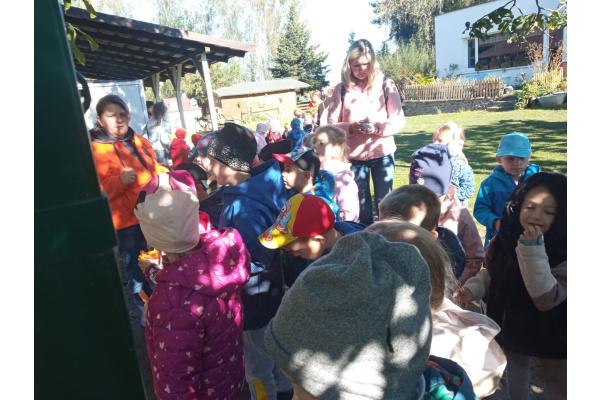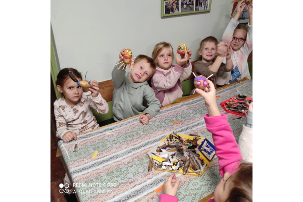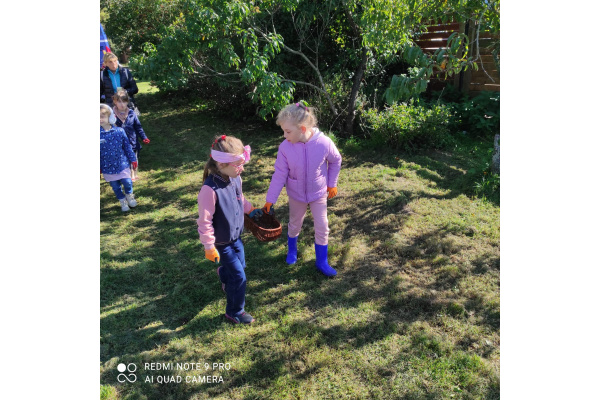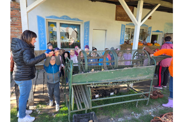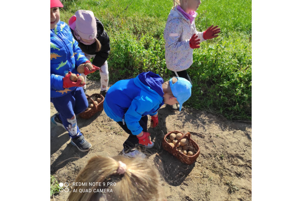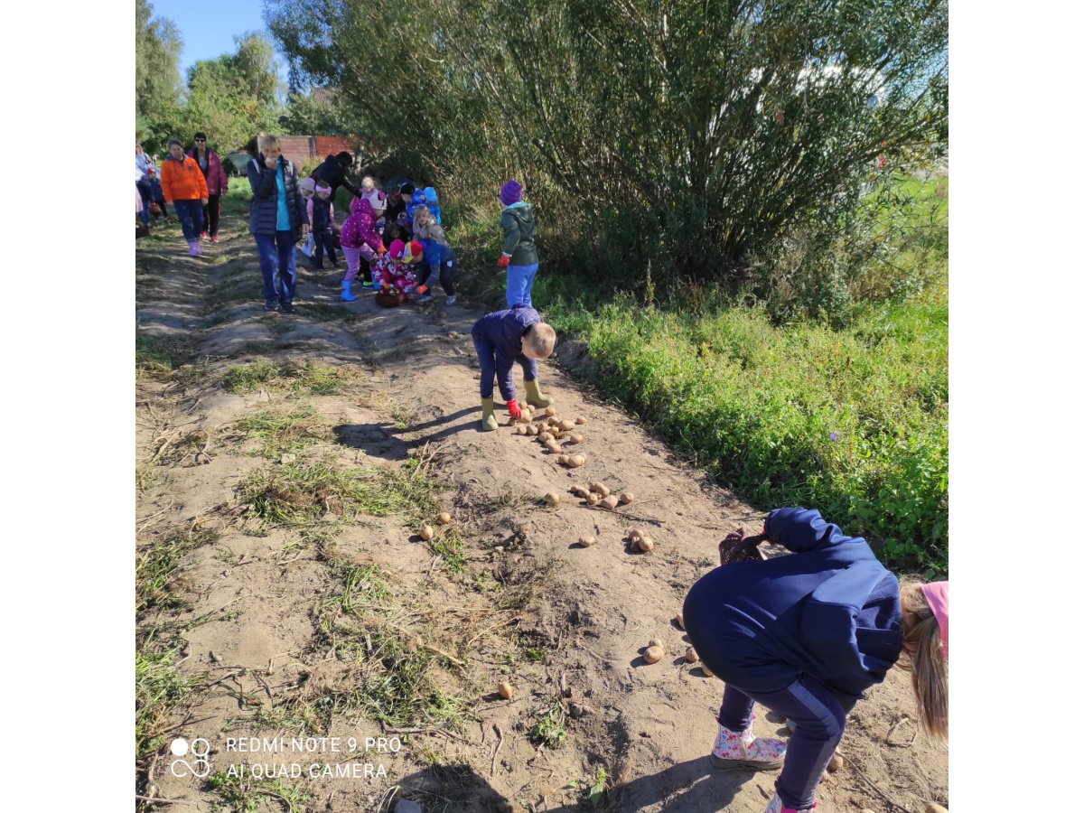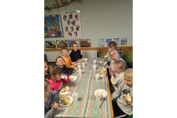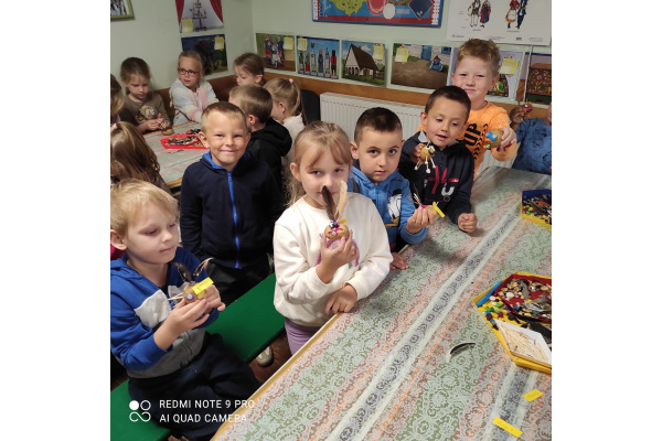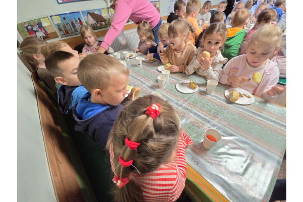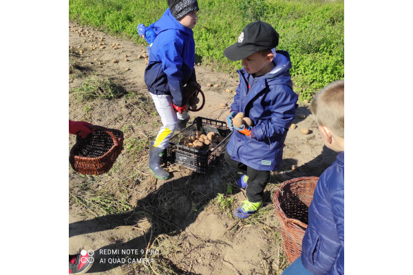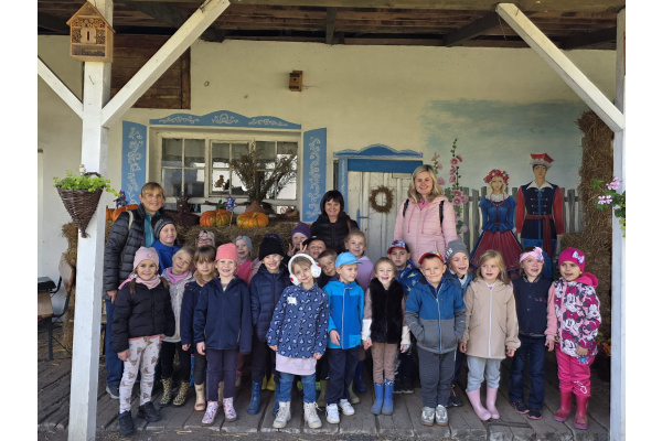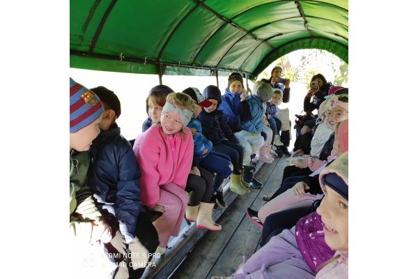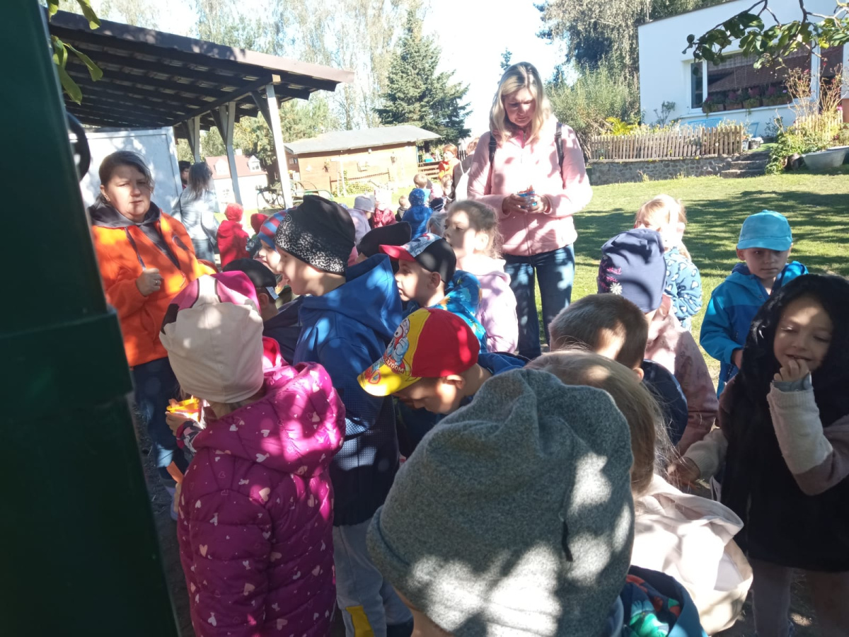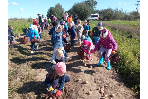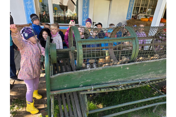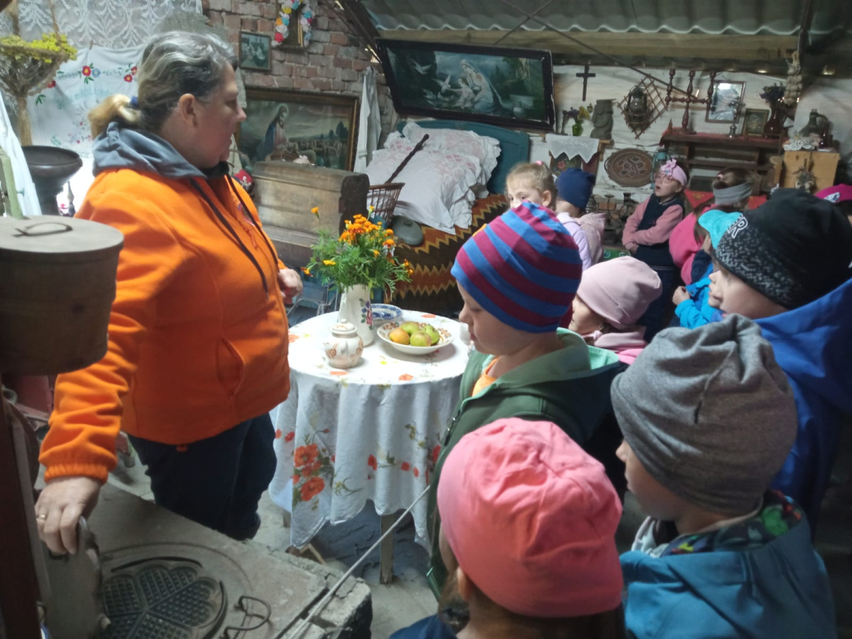 Na sam początek dnia wyruszyliśmy wozem po polach, podziwialiśmy otoczenie i klucze żurawi. Następnie rozgrzaliśmy sie przy pysznej malinowej herbatce,tworząc ziemniaczane cudaki-każdy z nas wykazał się kreatywnością. Próbowaliśmy tez smacznych ,polskich ziemniaków z pieca. Zwiedziliśmy wystawę starych przedmiotów, nakarmiliśmy głodne zwierzątka- to zadanie sprawiło nam dużo frajdy. Pobawiliśmy sie na ogromnym placu, a na koniec udaliśmy się na wykopki. To było zadanie stworzone dla wszystkich dzieci, nikt tak szybko jak Sówki i Biedronki nie potrafi zbierać na polu ziemniaków. Zmęczeni i zadowoleni wróciliśmy do przedszkola na pyszny obiadek.