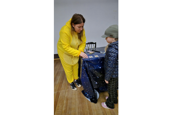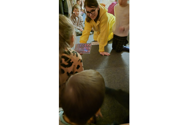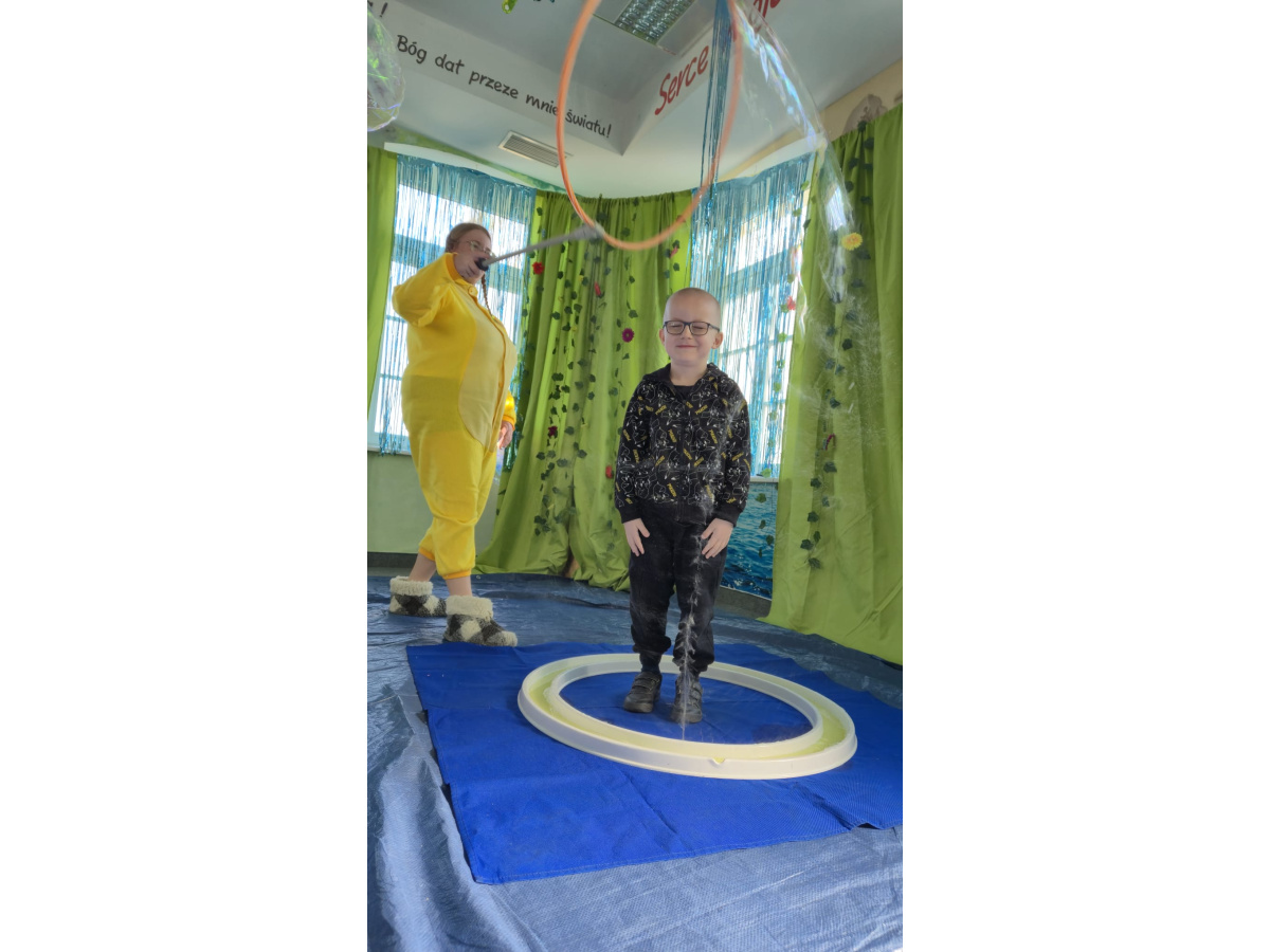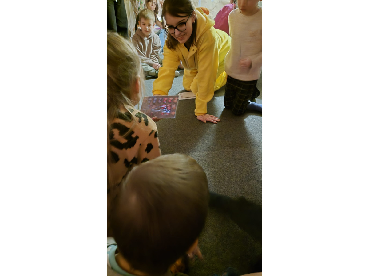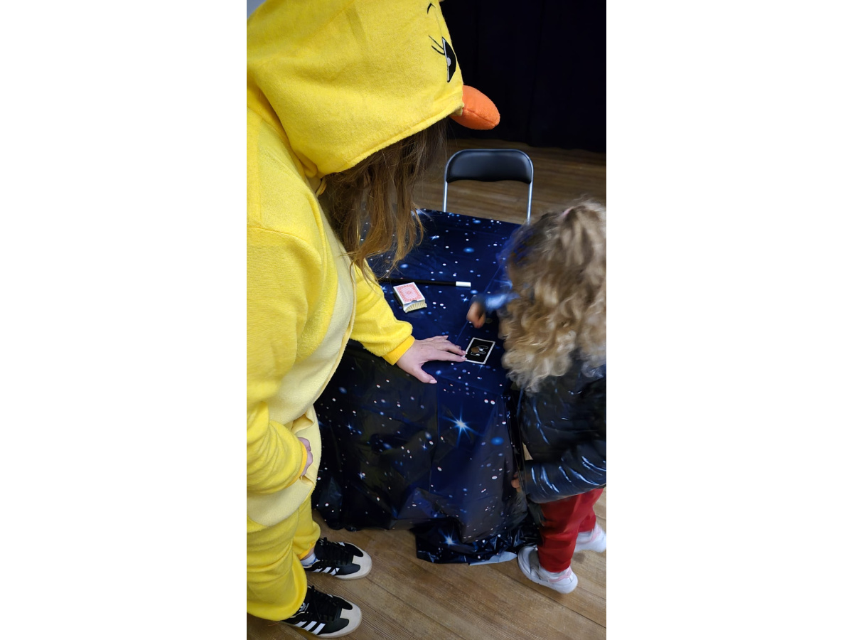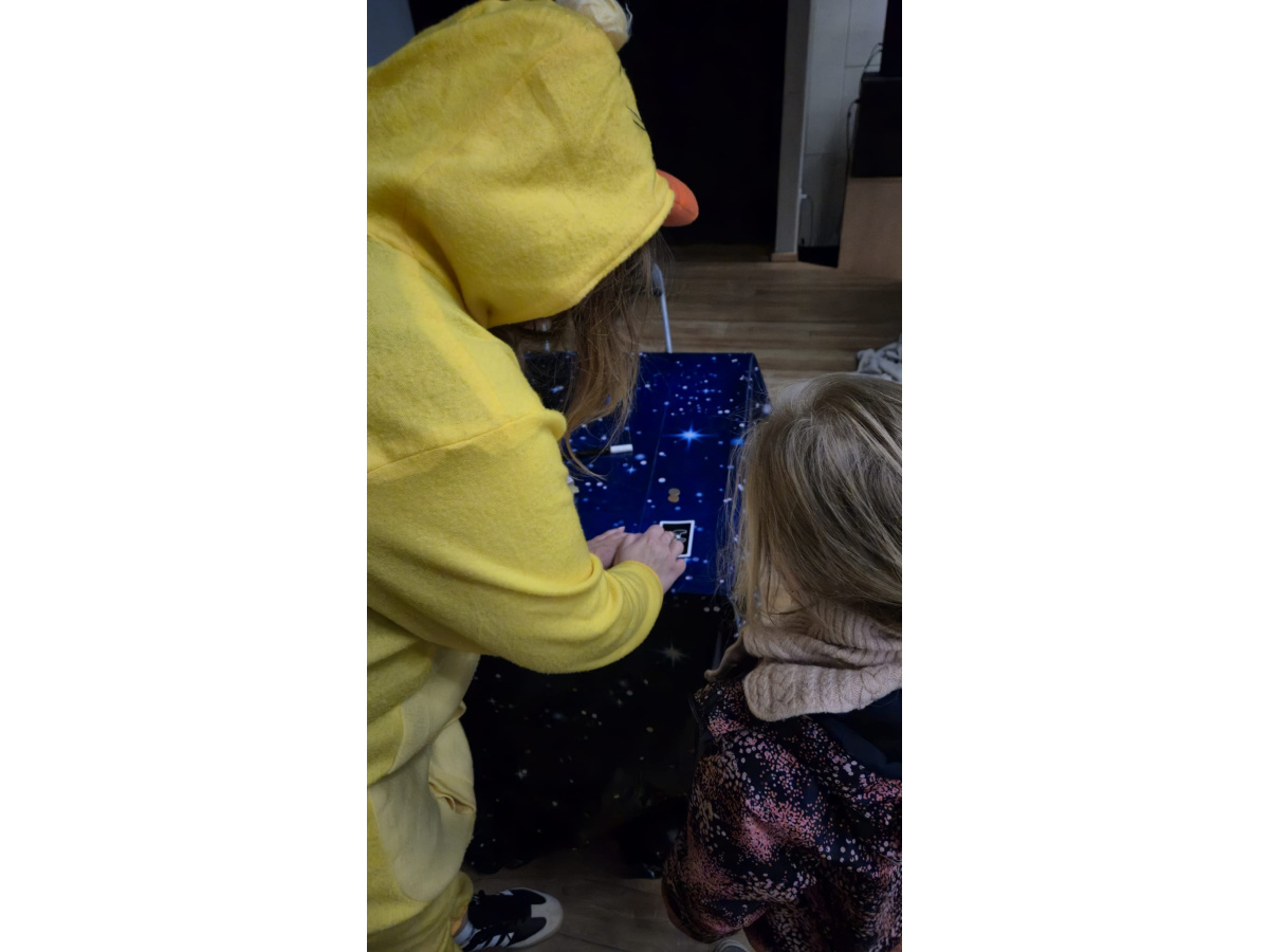 Podczas kolejnego punktu wycieczki odbyły się nietypowe, pełne humoru warsztaty pt. „Kurczak iluzjonista”. Dzieci z zainteresowaniem obserwowały zabawne sztuczki i z zaciekawieniem zgadywały, jak to wszystko działa. Była to świetna okazja do śmiechu i wspólnego przeżywania magicznych chwil.