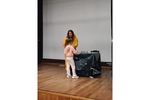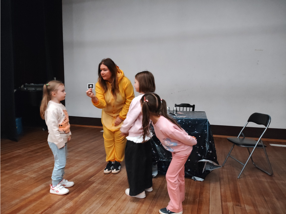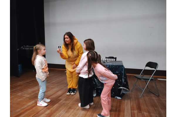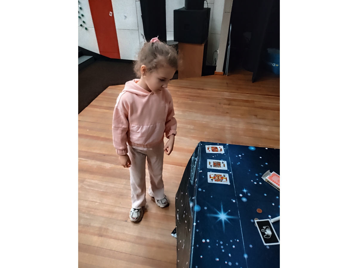 Podczas kolejnego punktu wycieczki odbyły się nietypowe, pełne humoru warsztaty pt. „Kurczak iluzjonista”. Dzieci z zainteresowaniem obserwowały zabawne sztuczki i z zaciekawieniem zgadywały, jak to wszystko działa. Była to świetna okazja do śmiechu i wspólnego przeżywania magicznych chwil.