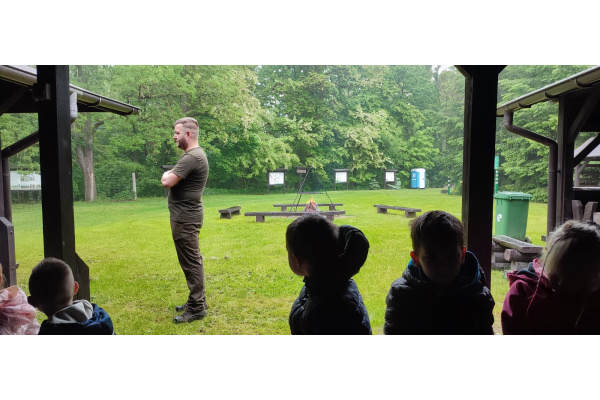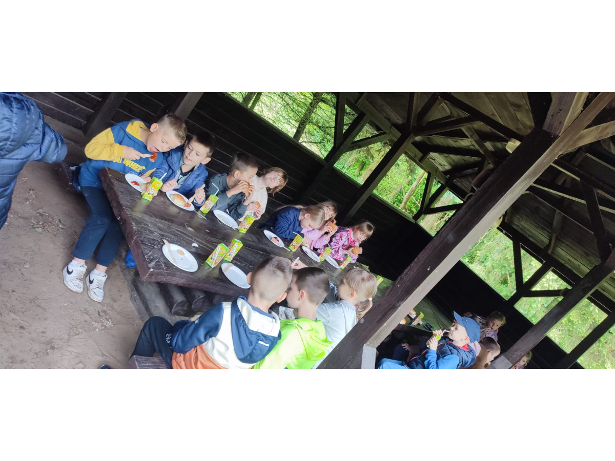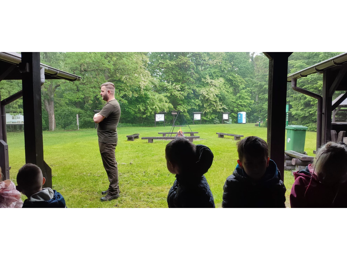 Czekał tam na nas Pan Leśniczy, który odpowiedział o swojej pracy, wspólnie przypomnieliśmy sobie w jaki sposób należy zachowywać się w lesie oraz w jaki sposób można chronić środowisko. Następnie czekała na nas wielka atrakcja! Pan leśniczy zabrał nas do przyjaznego dzika o imieniu Lena, każdy z zaciekawieniem obserwował to zwierzę, które pierwszy raz zobaczyliśmy z tak niewielkiej odległości. Na zakończenie zjedliśmy pyszną kiełbaskę z ogniska. Bardzo dziękujemy Nadleśnictwu Kruszyn za możliwość uczestniczenia w tak ciekawym spotkaniu!