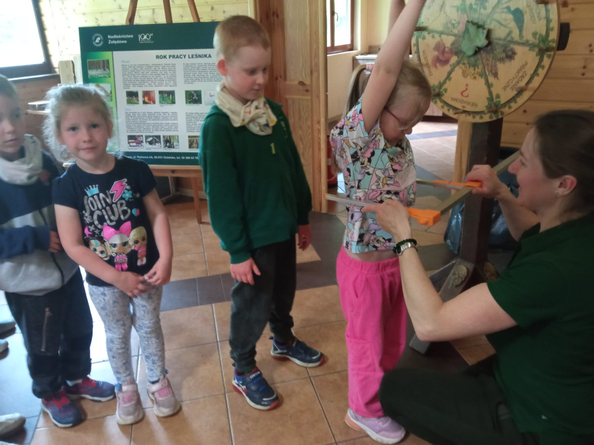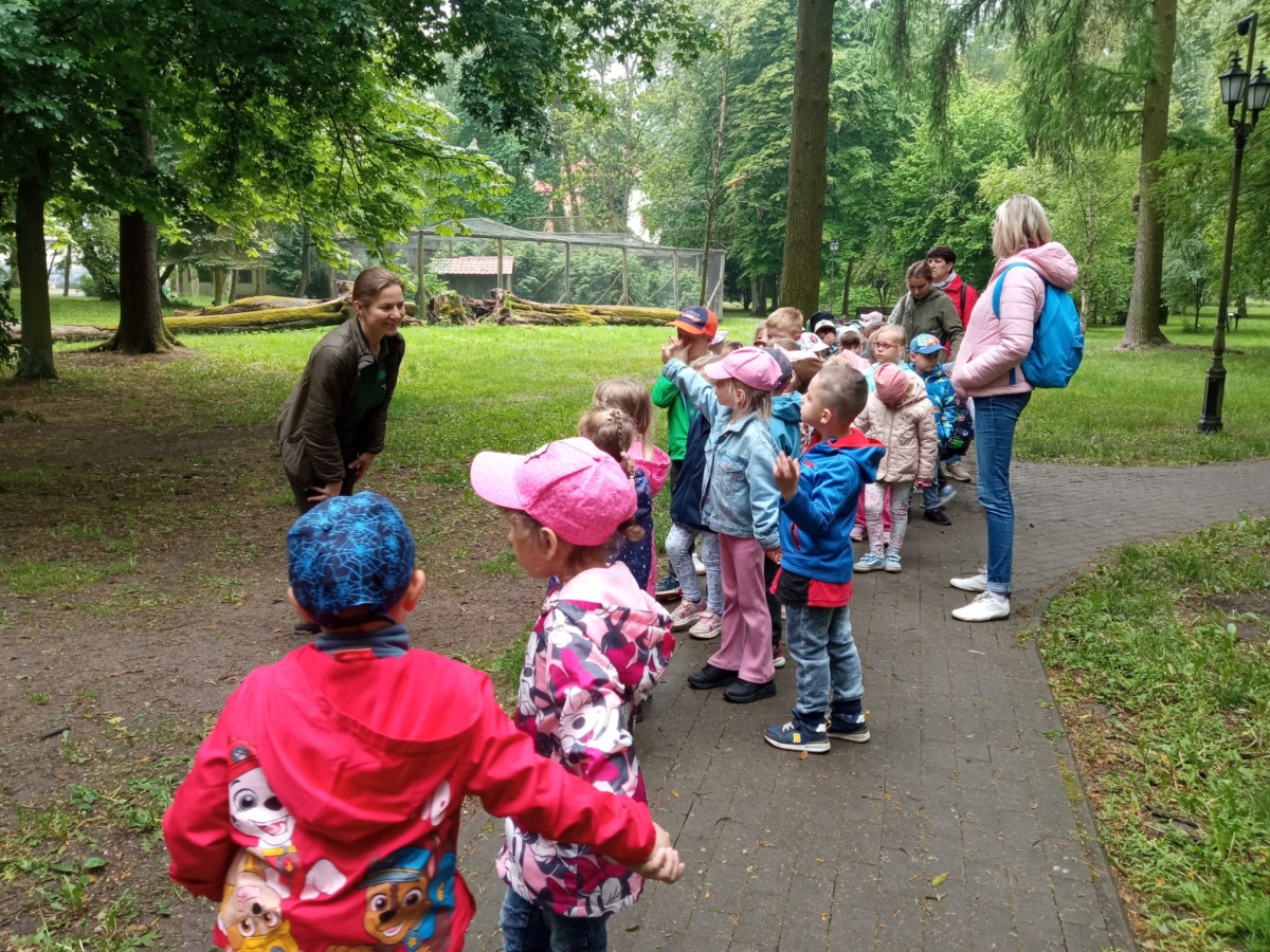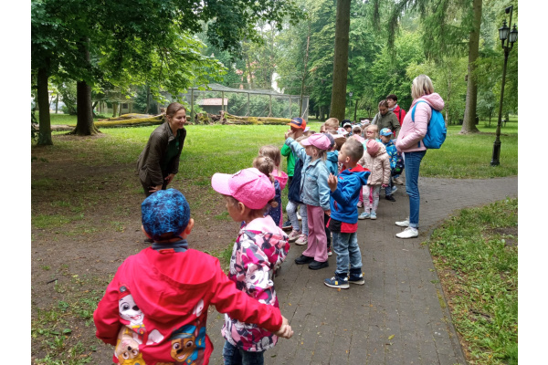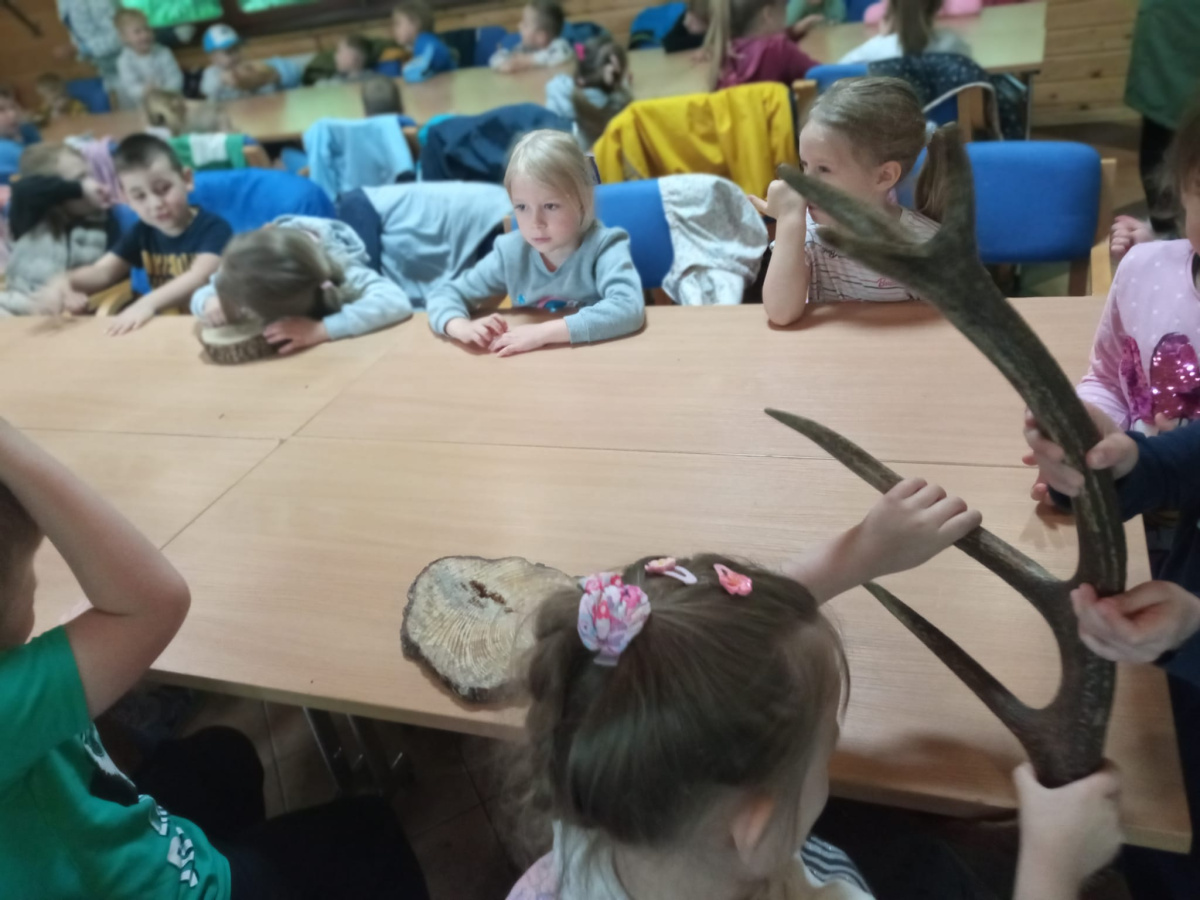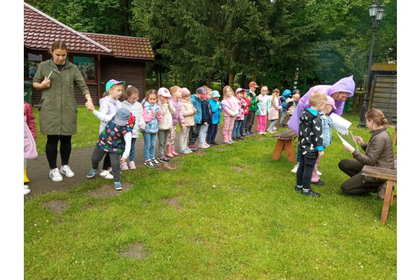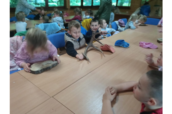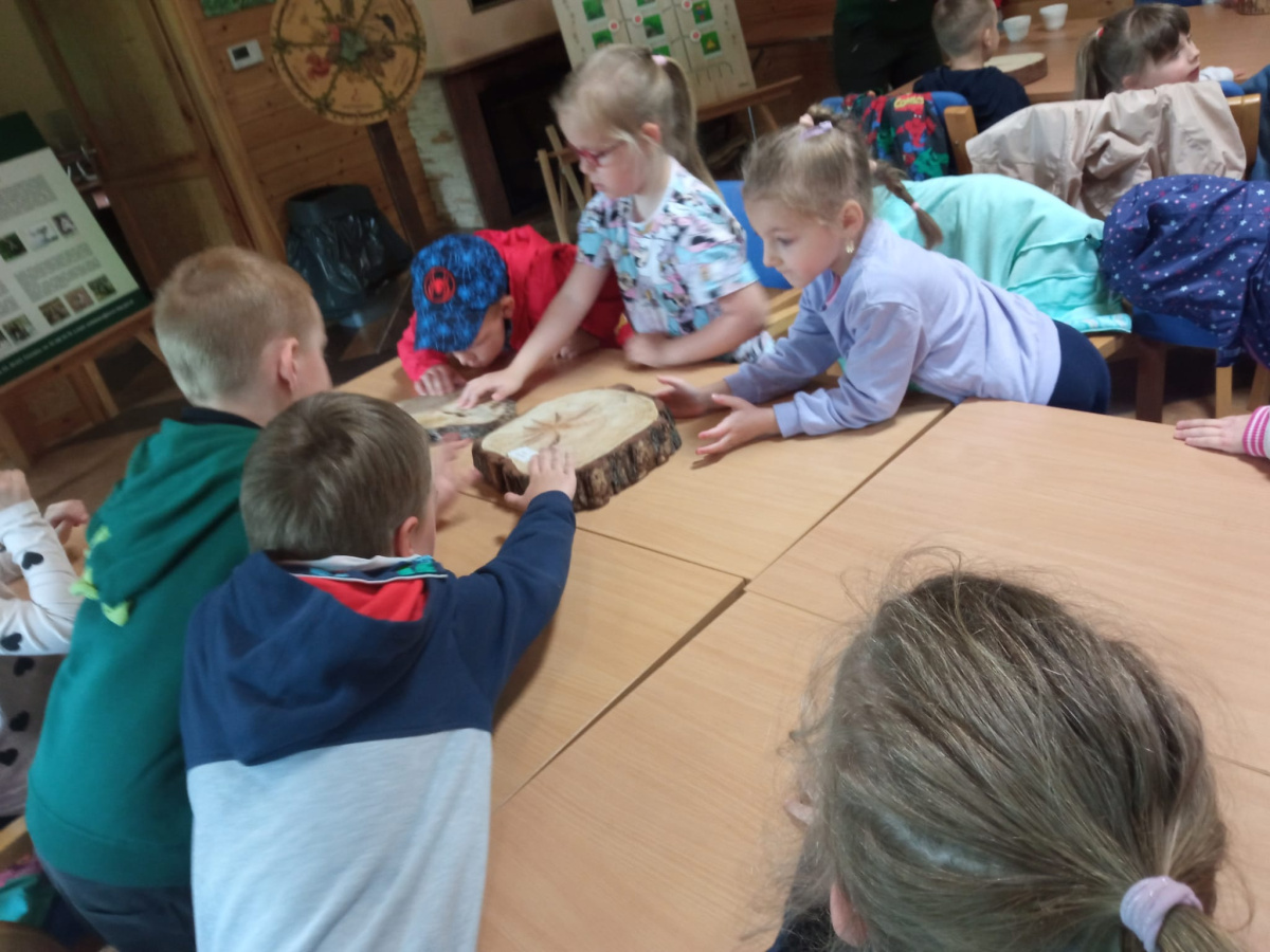 Mimo niesprzyjającej pogody ,dzieci były bardzo podekscytowane. Celem wycieczki było rozbudzenie zainteresowań pięknem i bogactwem środowiska przyrodniczego. Dzieci uczestniczyły w zajęciach edukacyjnych podczas których zdobywały informacje na temat lasu,jego mieszkańców i roślinności. Warsztaty z Panią Leśnik zakończyły się ogniskiem i pieczeniem kiełbasek.