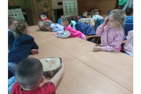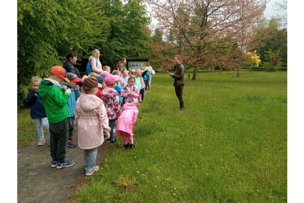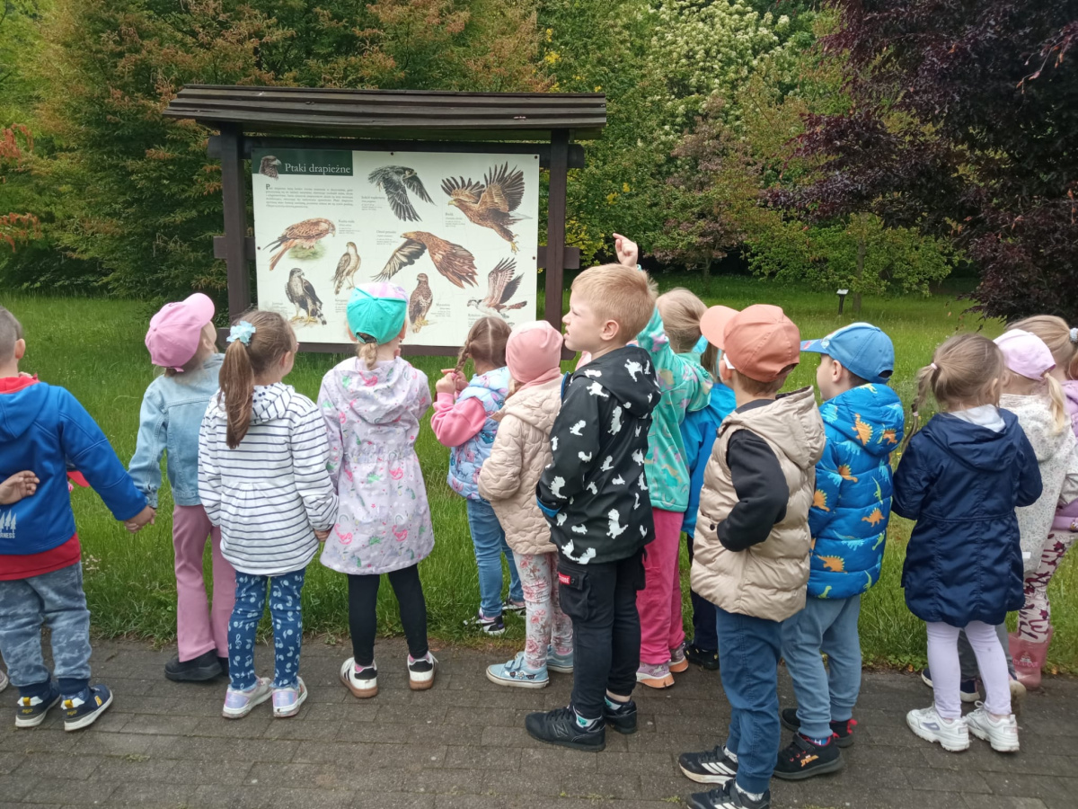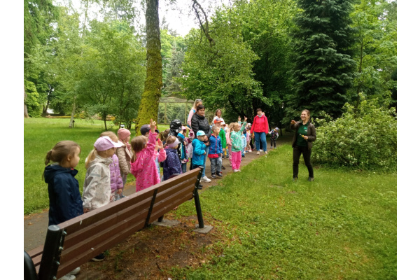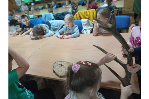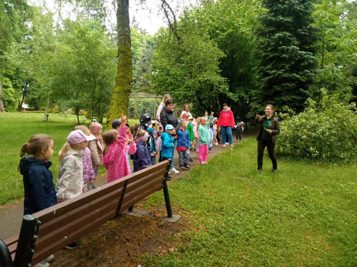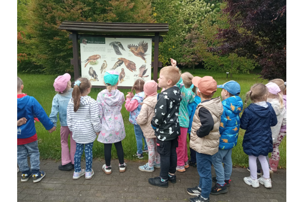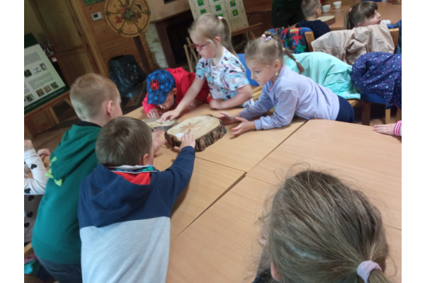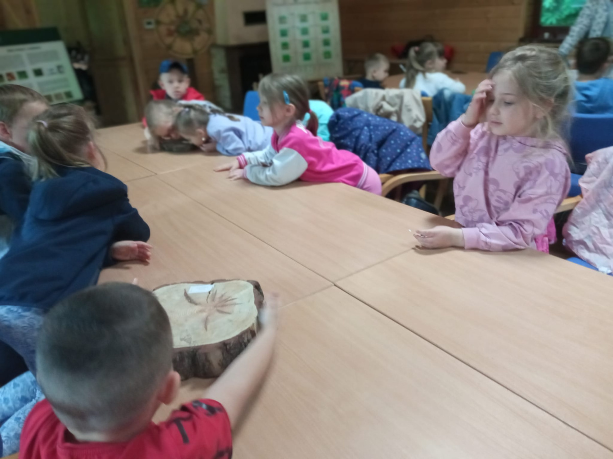 Mimo niesprzyjającej pogody ,dzieci były bardzo podekscytowane. Celem wycieczki było rozbudzenie zainteresowań pięknem i bogactwem środowiska przyrodniczego. Dzieci uczestniczyły w zajęciach edukacyjnych podczas których zdobywały informacje na temat lasu,jego mieszkańców i roślinności. Warsztaty z Panią Leśnik zakończyły się ogniskiem i pieczeniem kiełbasek.