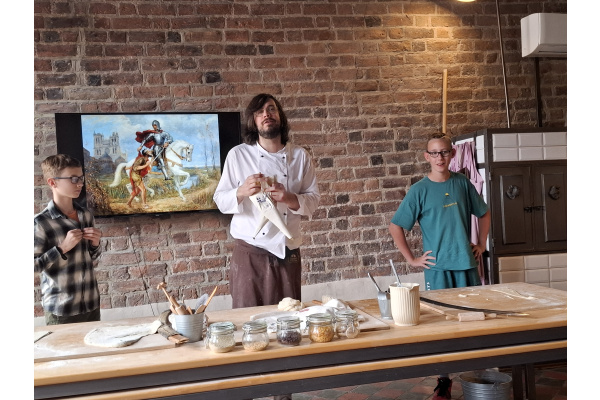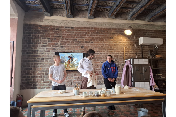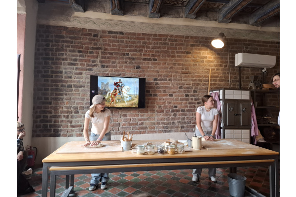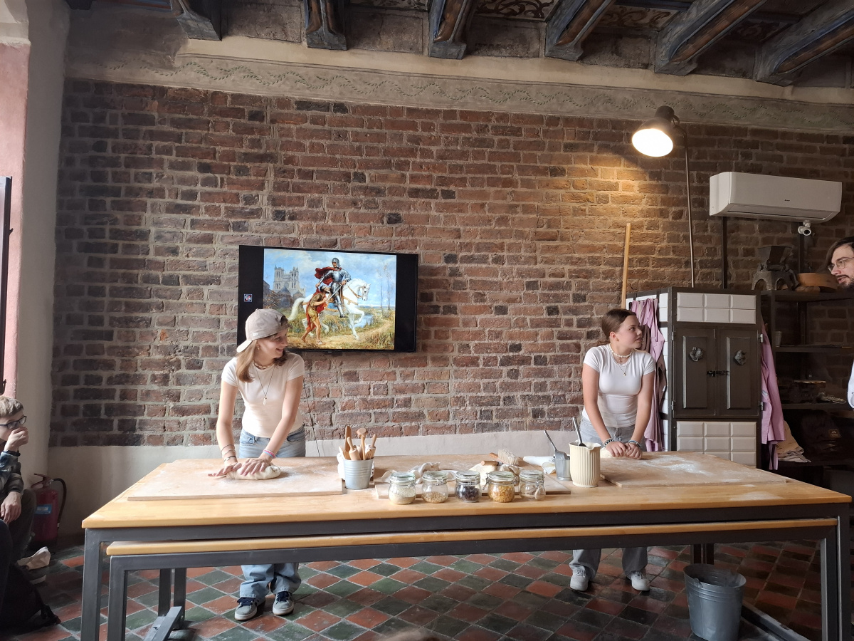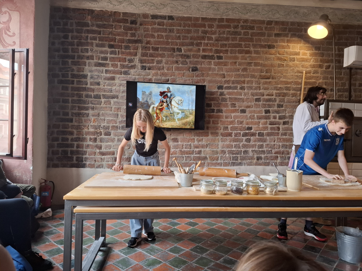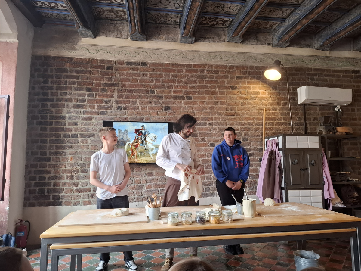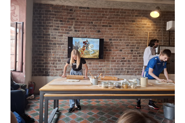 Kolejny przystanek to Rogalowe Muzeum Poznania .Poznaliśmy tajniki największego skarbu kulinarnego Poznania – rogala świętomarcińskiego. Wysłuchaliśmy historii rogali świętomarcińskich: skąd pochodzi kształt rogala świętomarcińskiego, jakie są tajniki jego szlachetnej receptury. Muzeum mieści się w zabytkowej kamienicy na Starym Rynku, dokładnie naprzeciwko Ratusza (wejście od ul. Klasztornej). Wnętrze kamienicy kryje oryginalny renesansowo-gotycki sufit sprzed pięciuset lat. Z okien Muzeum doskonale widać koziołki, co jest dodatkową atrakcją seansu przedpołudniowego, w którym uczestniczyliśmy.