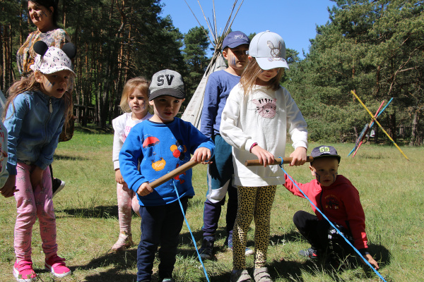 Dzieci wyjechały na wycieczkę przedszkolną do Wioski Indiańskiej było wiele atrkacji oraz uśmiechy z twarzy dzieci nie schodziły.