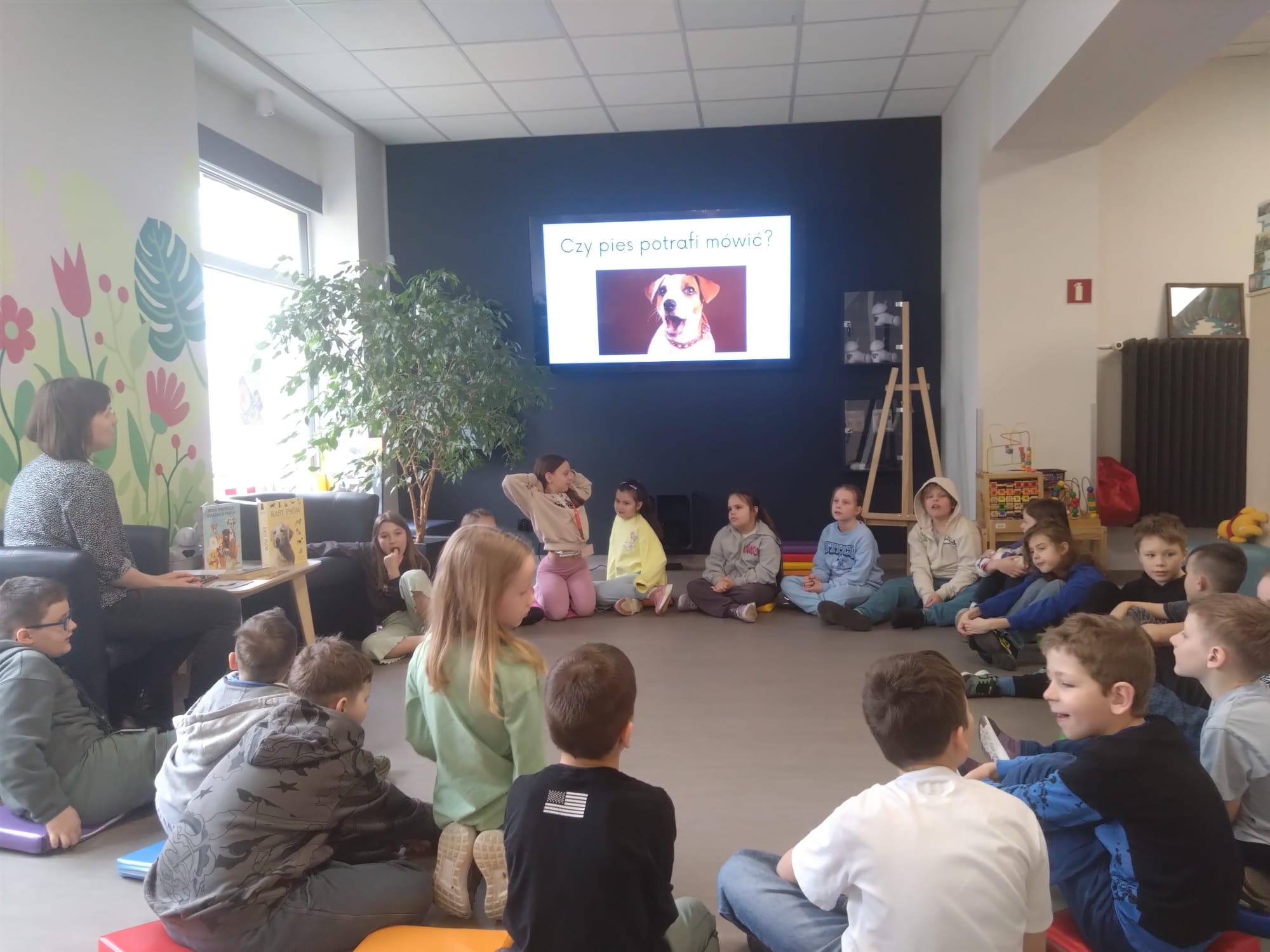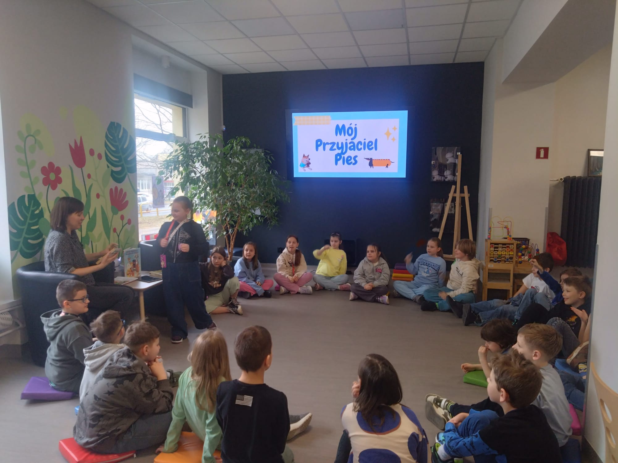 W poniedziałek, 23 marca, uczniowie klasy 2a wybrali się do Biblioteki Miejskiej przy ulicy Kaczyńskiego, aby wziąć udział w wyjątkowej lekcji bibliotecznej pod hasłem „Mój przyjaciel pies”. Spotkanie okazało się pełne wiedzy, zabawy i twórczej współpracy, a przede wszystkim – rozwijało w dzieciach empatię oraz odpowiedzialność wobec zwierząt.