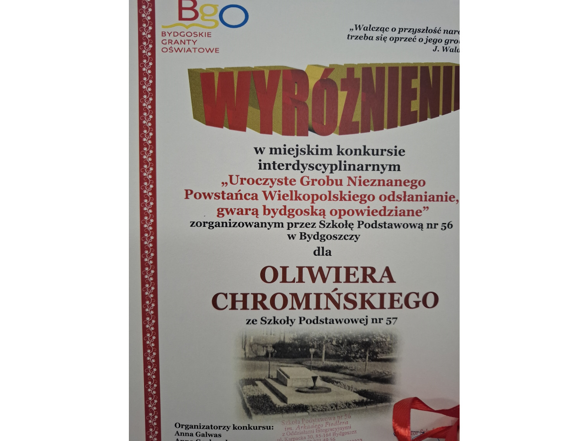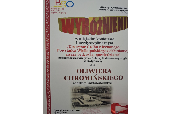 WYRÓŻNIENIE - Oliwier Chromiński kl.7a