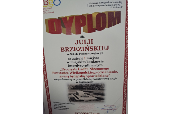 Wyniki Miejskiego Konkursu Historycznego „Uroczyste Grobu Nieznanego Powstańca Wielkopolskiego odsłanianie, gwarą bydgoską opowiedziane”