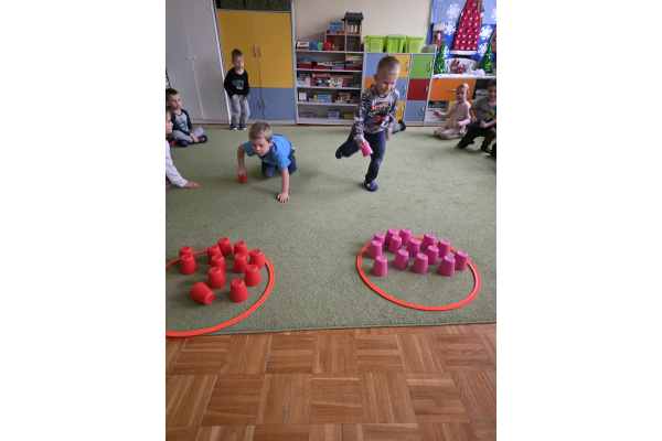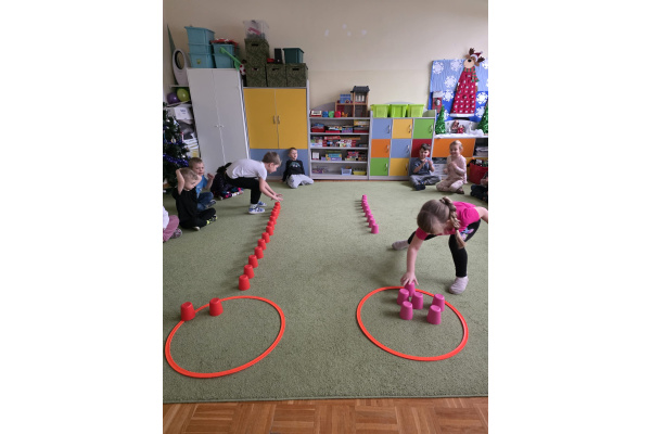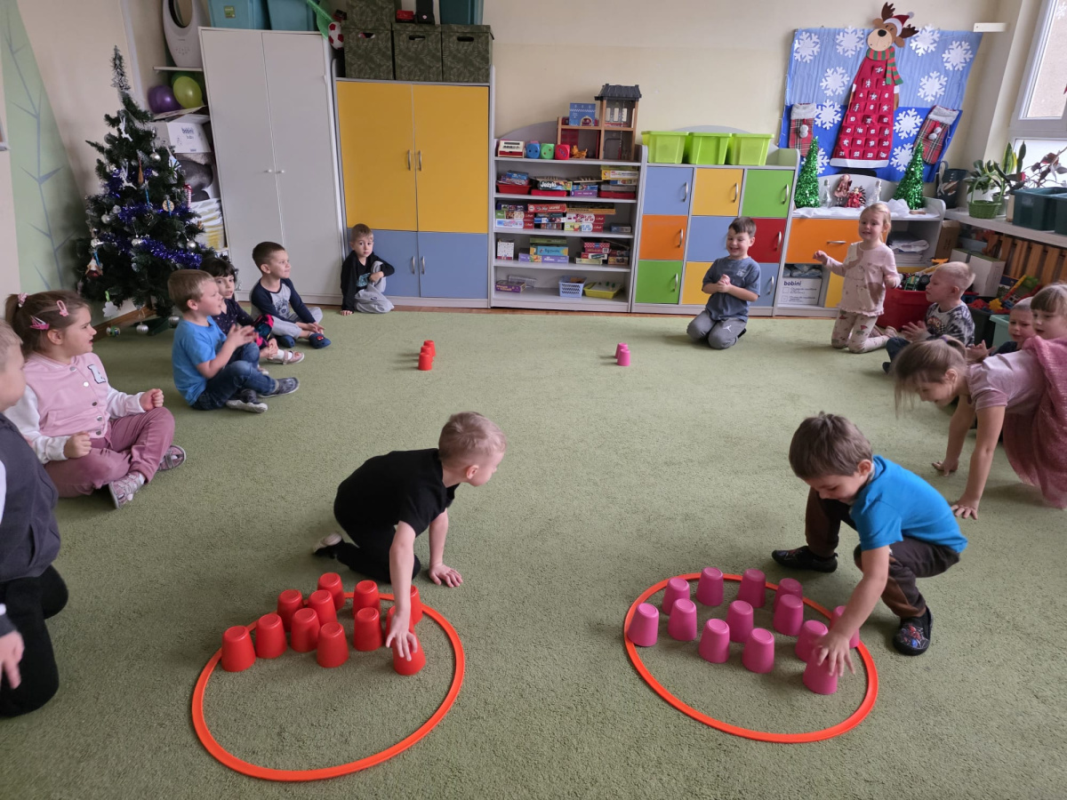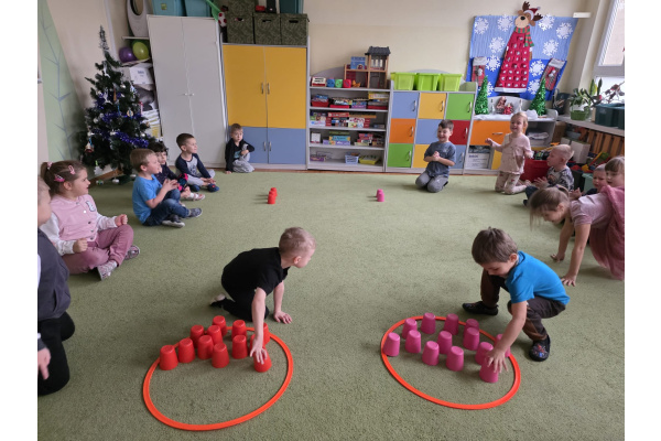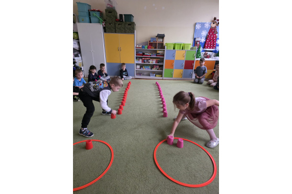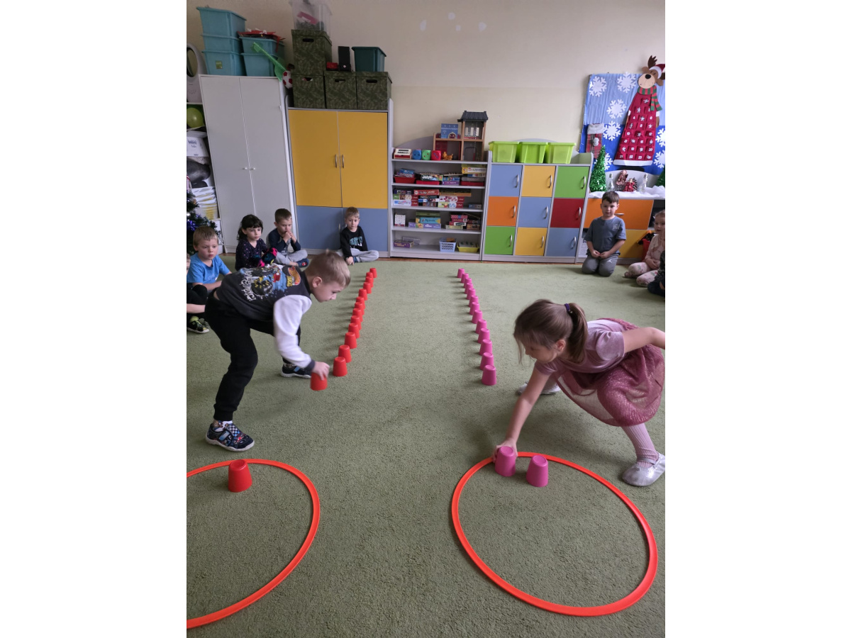 Sówki uwielbiają zajęcia ruchowe, tym bardziej jak do zajęć można wpleść element rywalizacji. Zajęcia w sali okazały się świetnym sposobem na wykorzystanie nadmiaru energii.