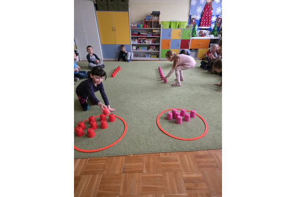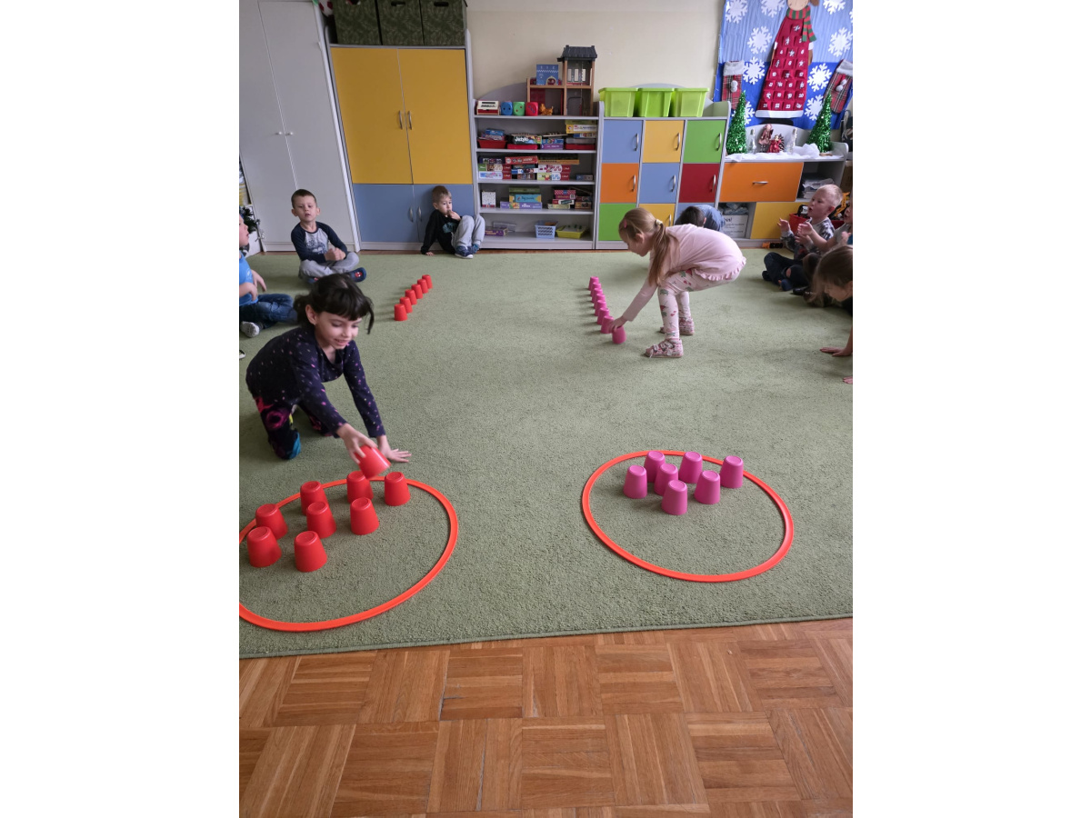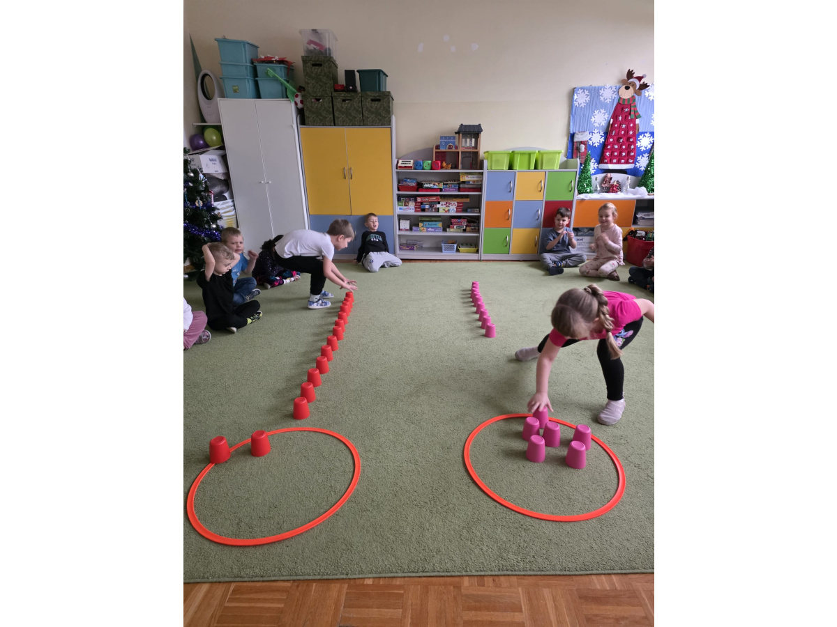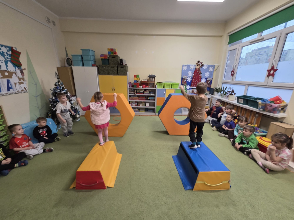 Sówki uwielbiają zajęcia ruchowe, tym bardziej jak do zajęć można wpleść element rywalizacji. Zajęcia w sali okazały się świetnym sposobem na wykorzystanie nadmiaru energii.