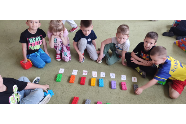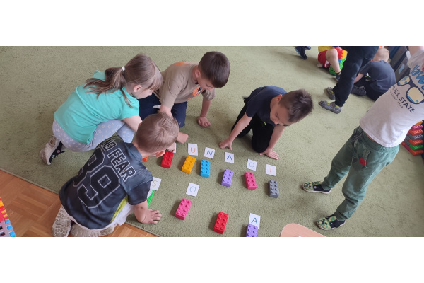 Kolorowe kropki po macie wędrowały, Posłuchaj uważnie i zaznacz, jak się przemieszczały.