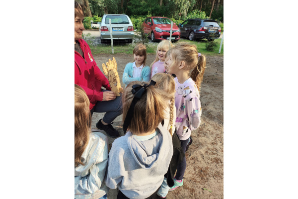 Dzieci zaprezentowały krótki program artystyczny, a następnie z rąk Pani Dyrektor odebrały pamiątkowe dyplomy oraz prezenty a wszystko to w plenerze, w naturalnych okolicznościach pięknej nadwiślańskiej przyrody. Po części oficjalnej dzieci z radością przystąpiły do zabawy korzystając z atrakcji jakie zostały dla nich przygotowane.
